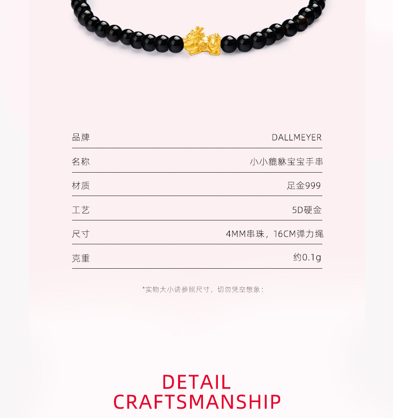 Dallmeyer Pixiu Baby Bracelet Pure Gold 999 Gold Bracelet for Wealth 5D Hard Gold Women's Couple Gift