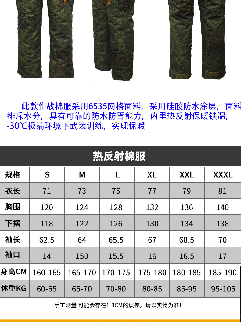 Winter Russian Cold-Proof Clothing Russian Military Vkbo Green Man Lv8 Camouflage Cotton Suit Thermal Reflective Military Winter Coat Military Uniform