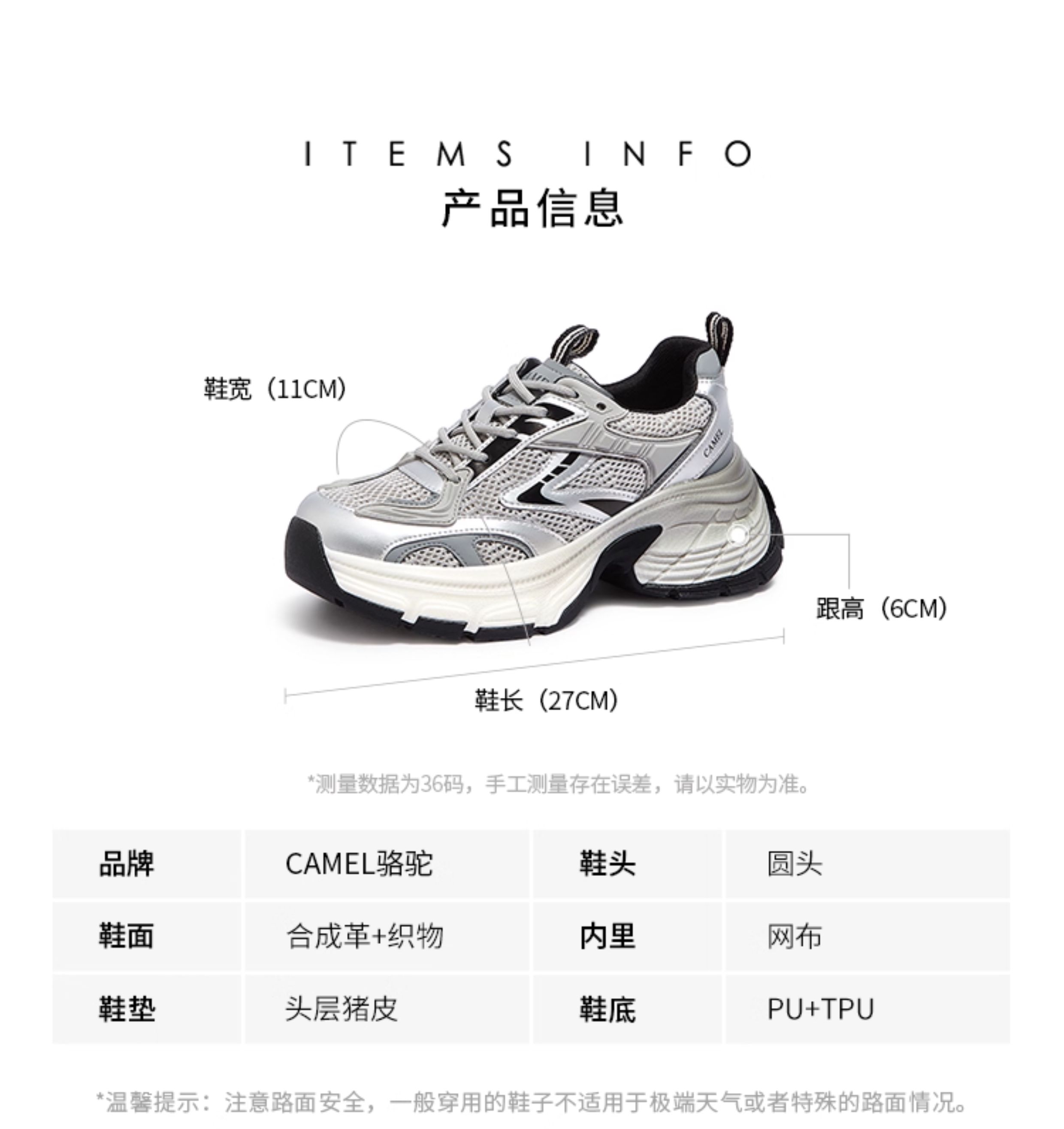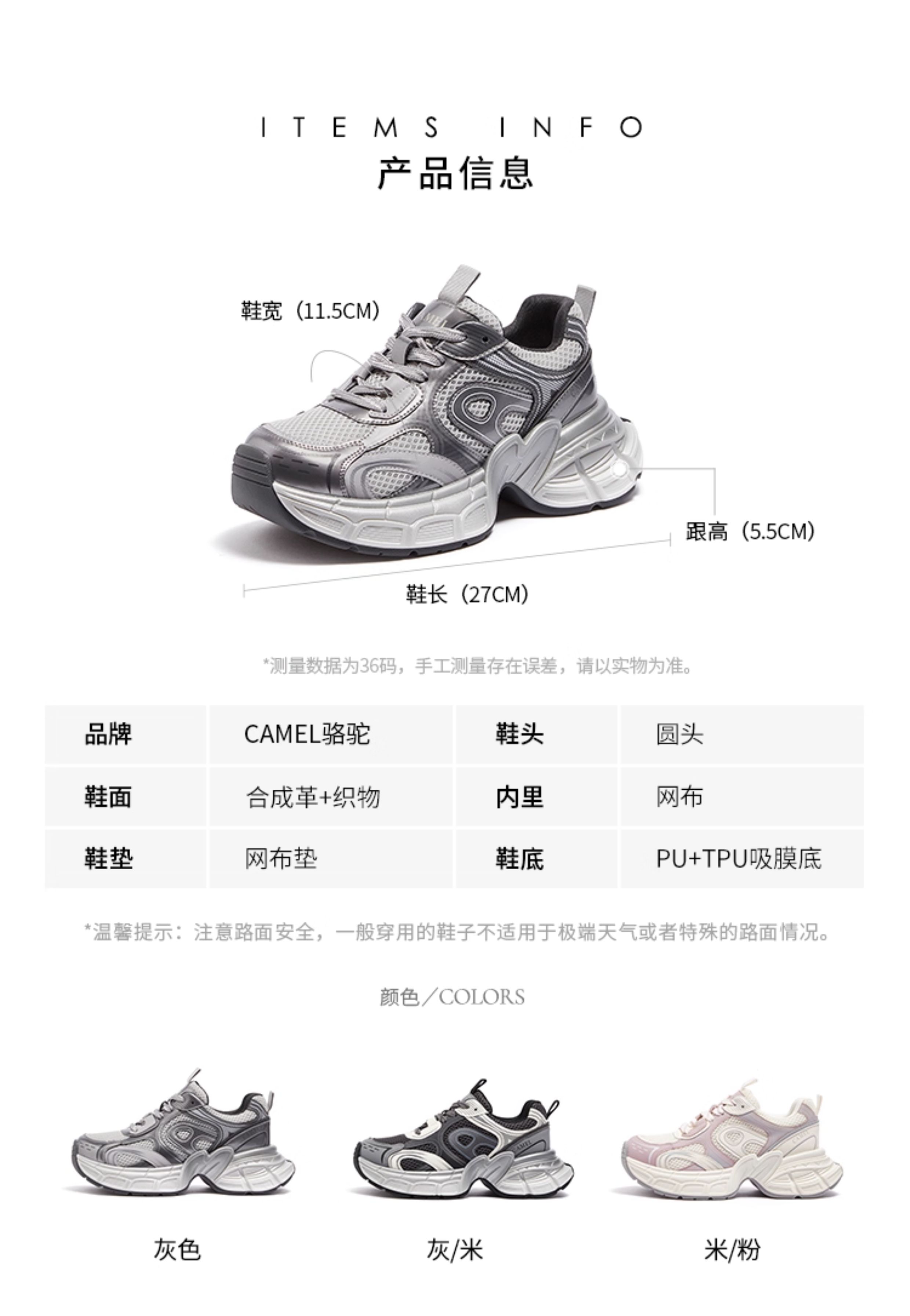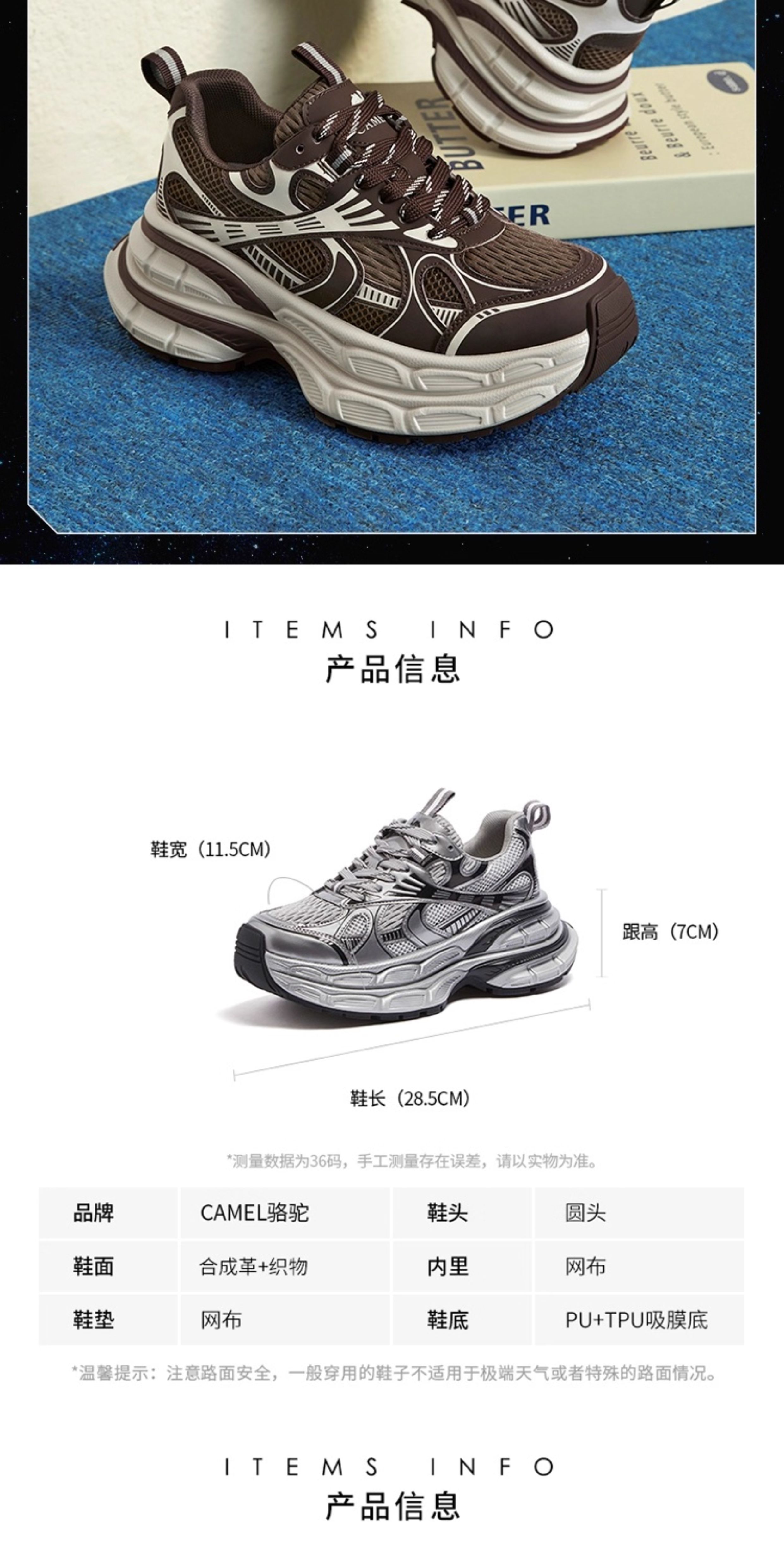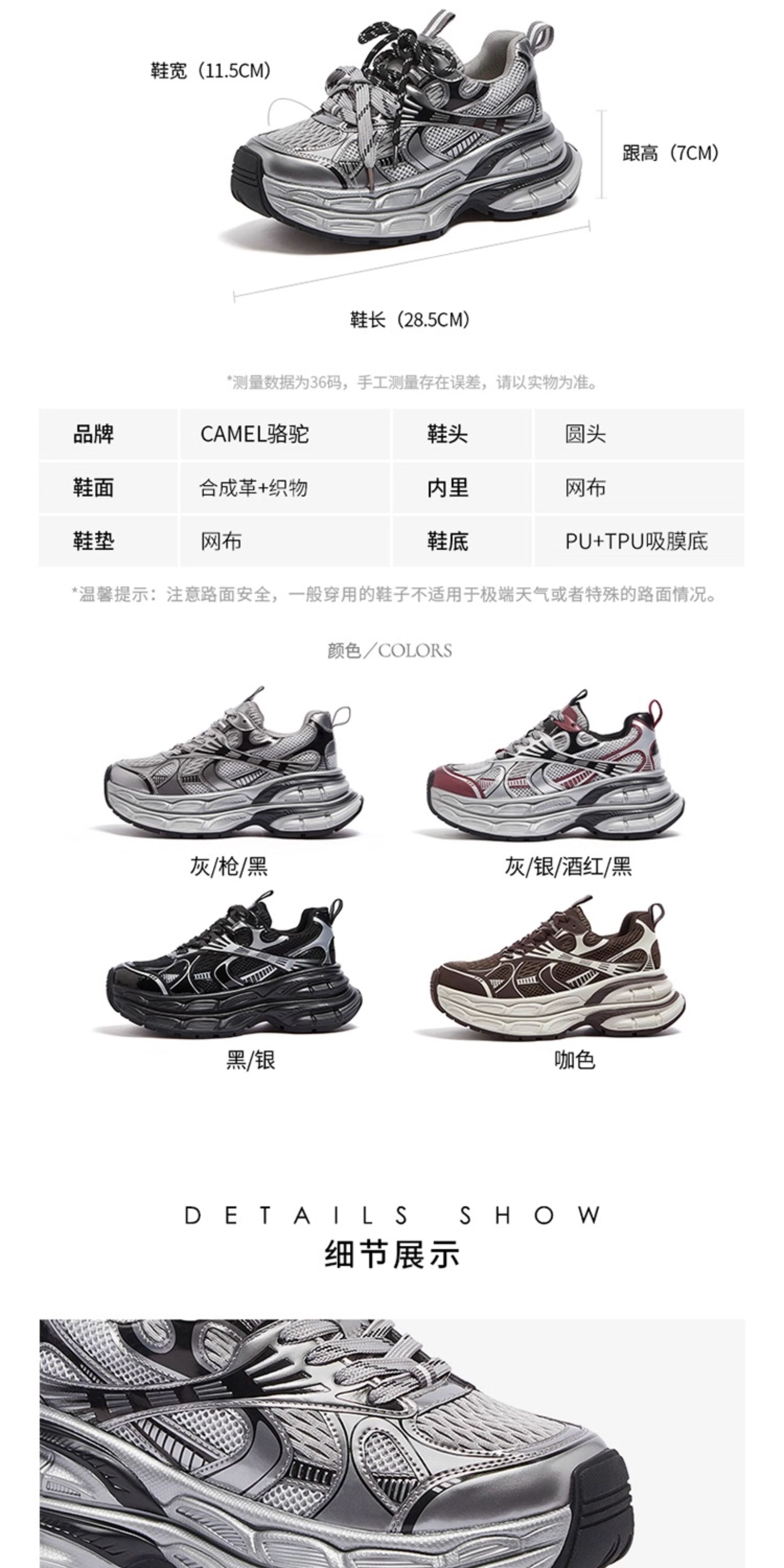 Camel Silver Moon Dad Shoes Outdoor Casual Shoes 2025 Autumn/Winter New Women's Shoes Thick Sole Height Increasing Non-Slip Wear-Resistant Shoes