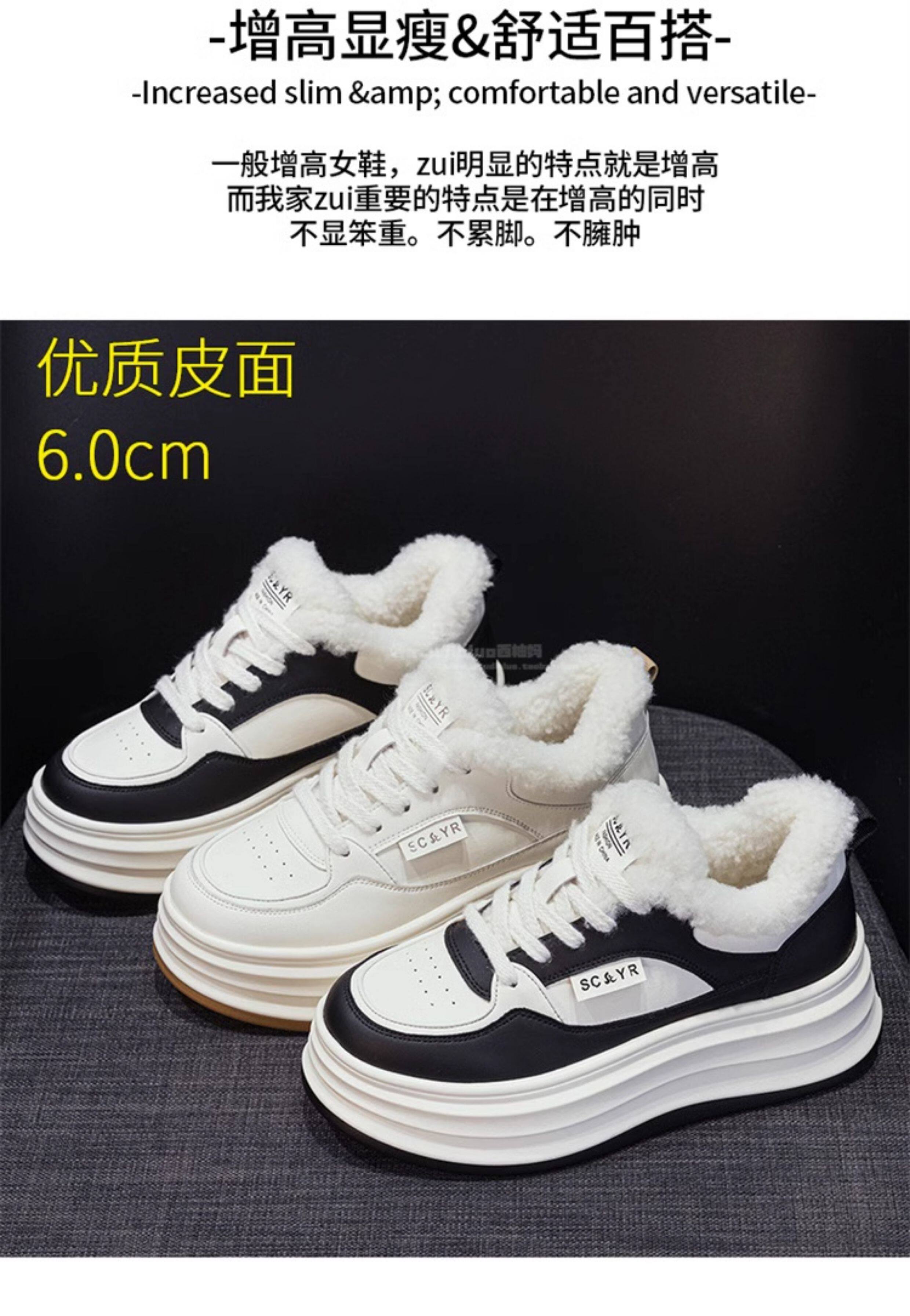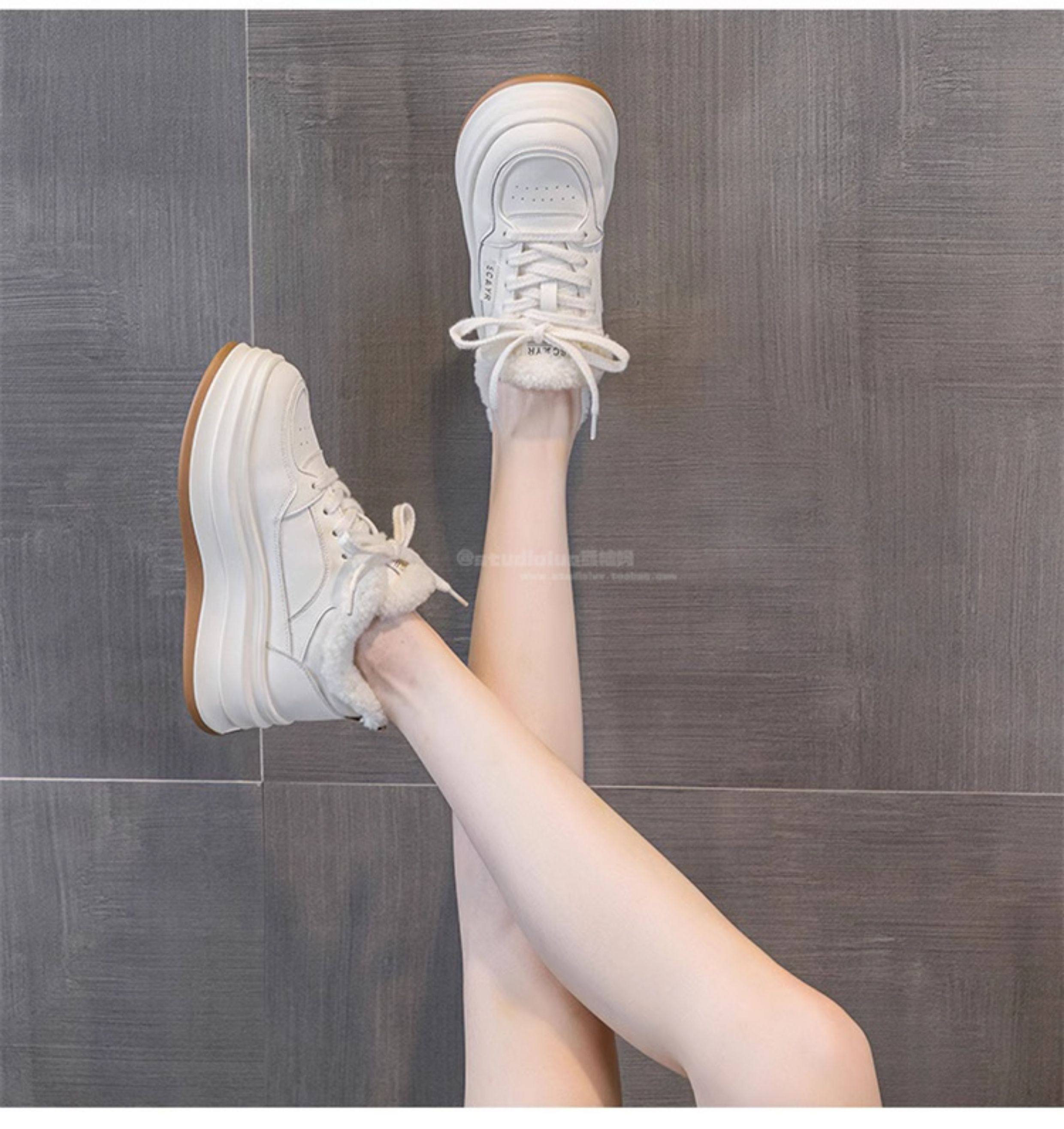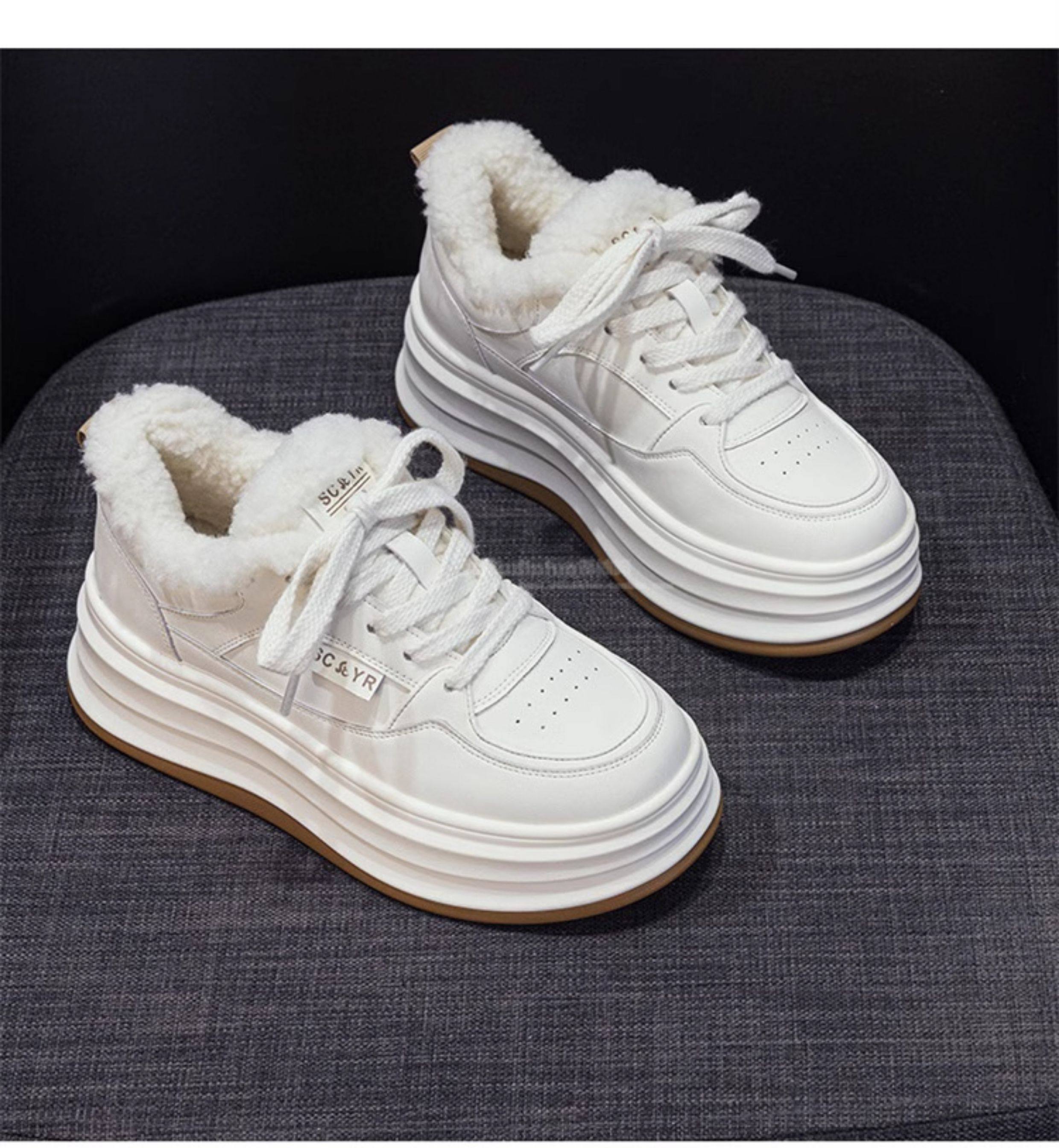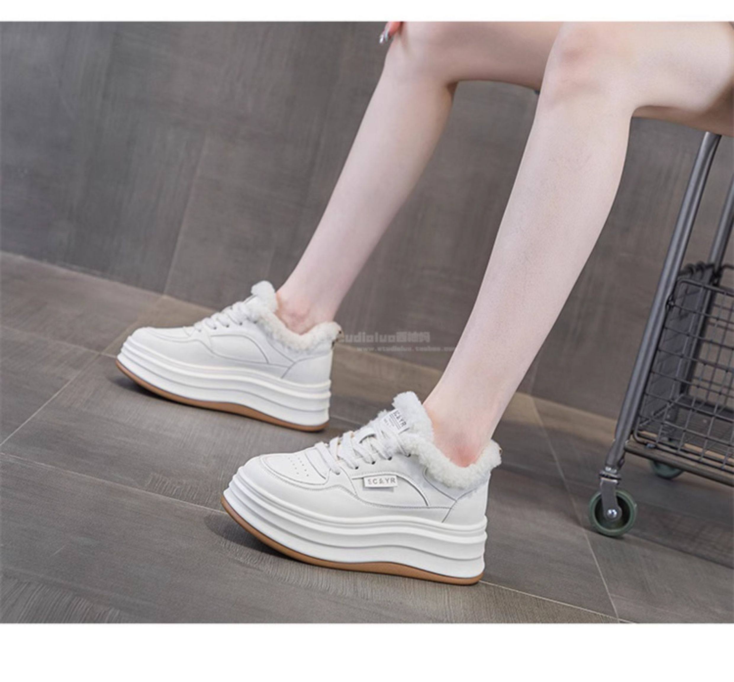 Hong Kong Fleece-Lined White Sneakers for Women 2025 Spring and Autumn New Cotton Shoes Thick-Soled Versatile Casual Shoes Sports Sneakers