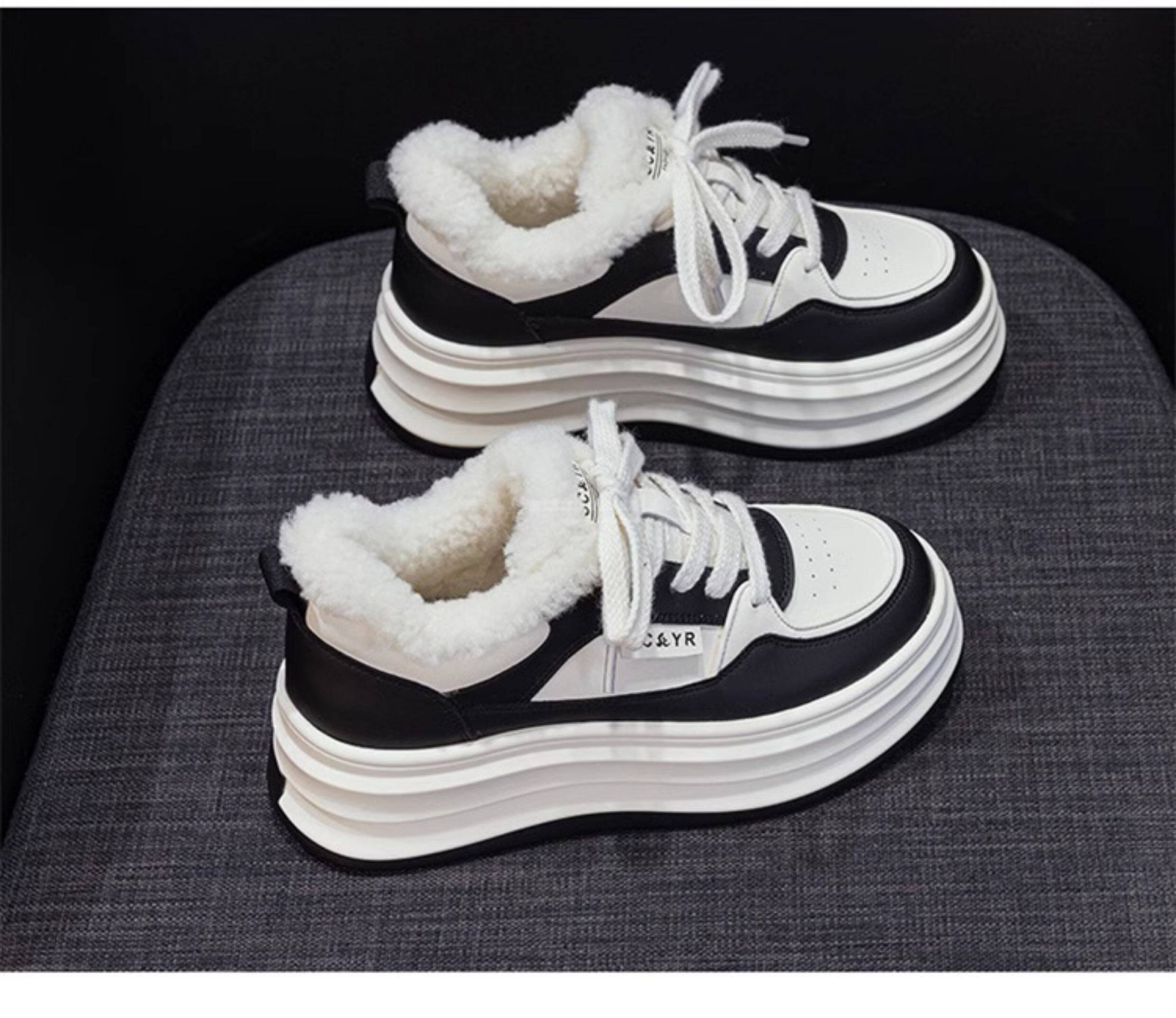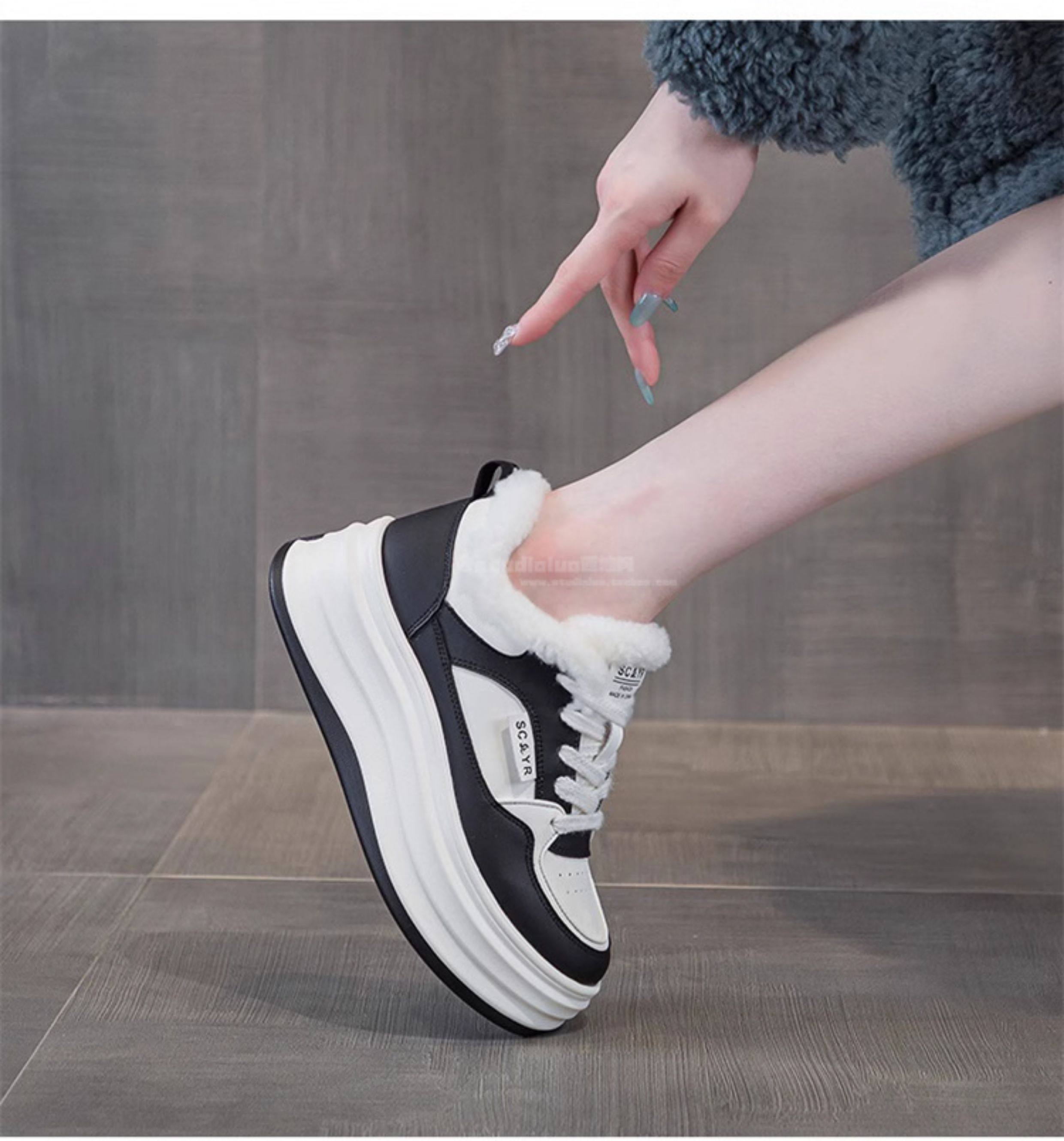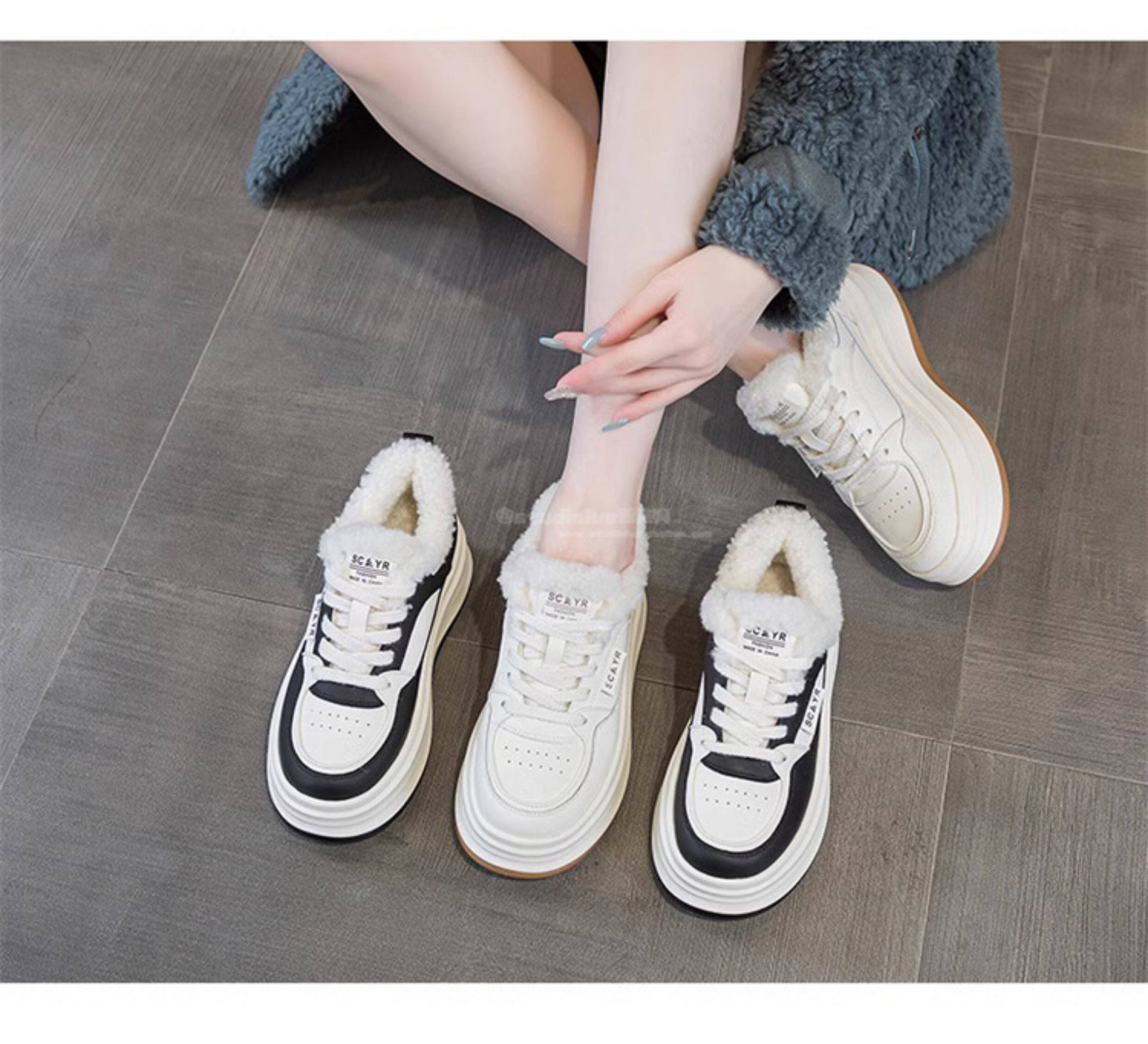 Hong Kong Fleece-Lined White Sneakers for Women 2025 Spring and Autumn New Cotton Shoes Thick-Soled Versatile Casual Shoes Sports Sneakers