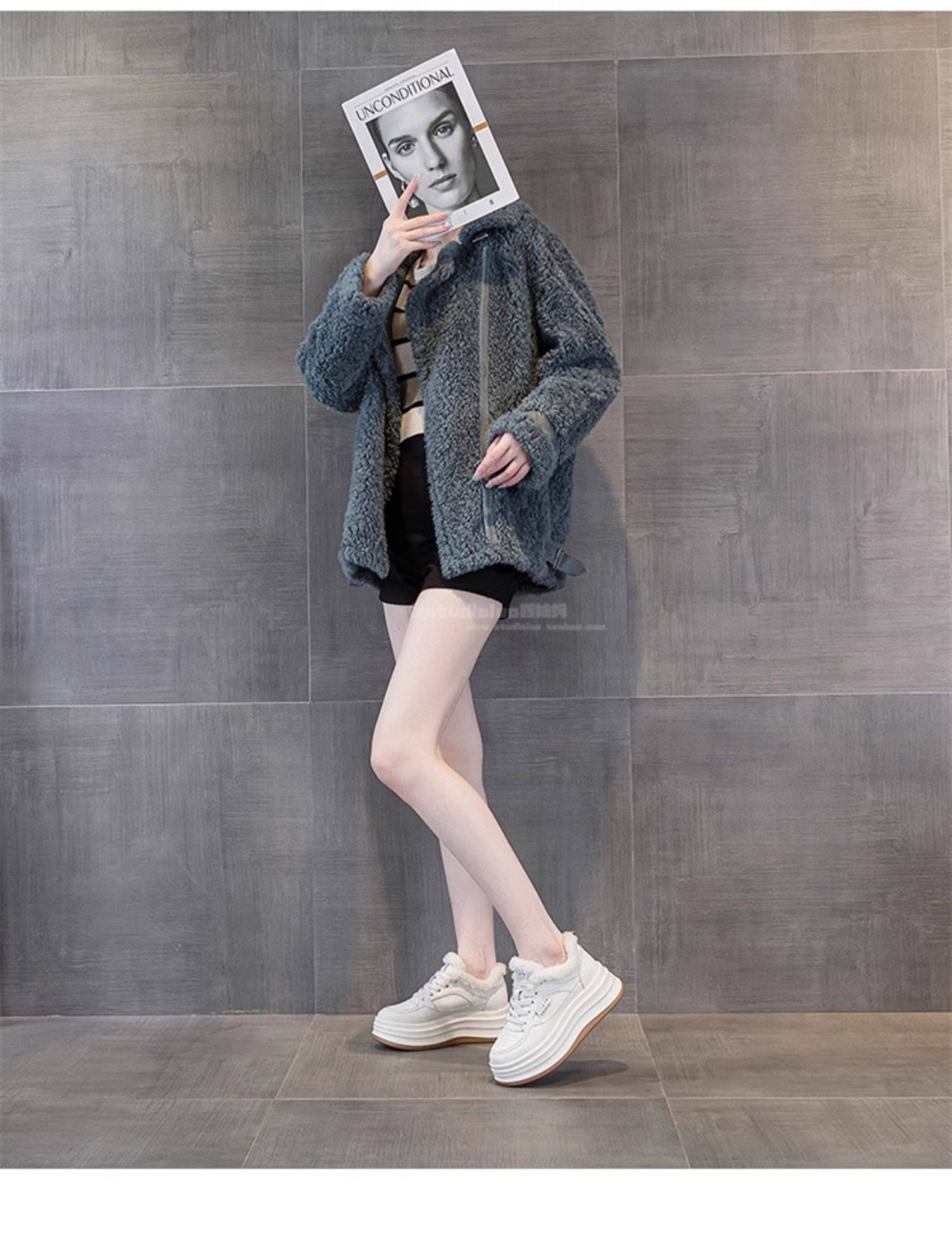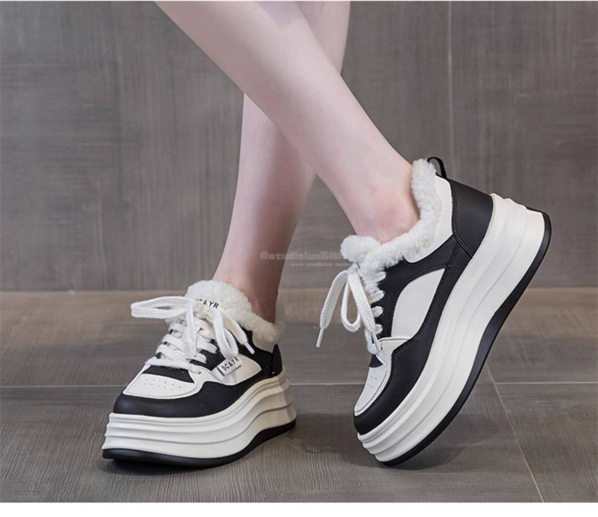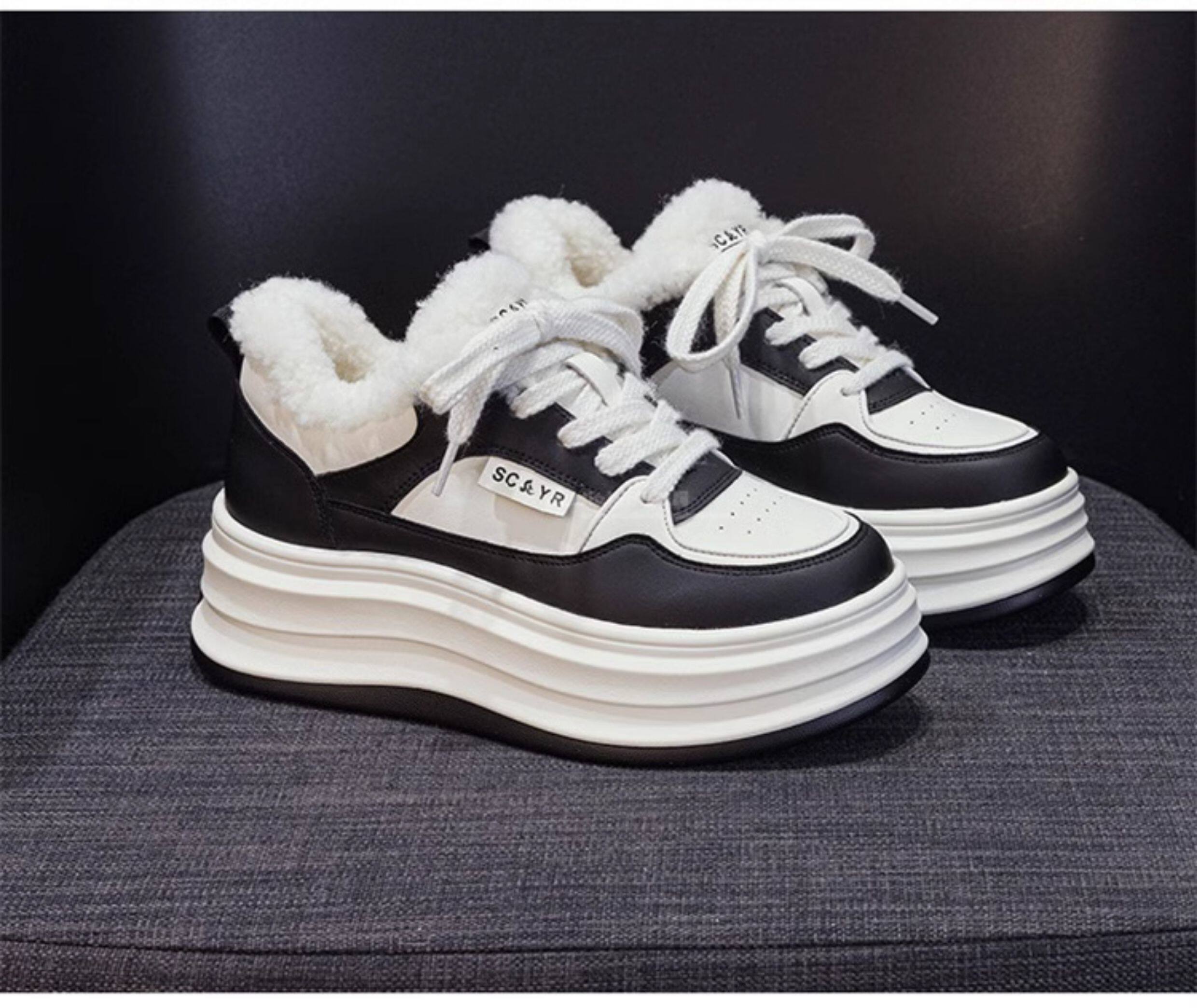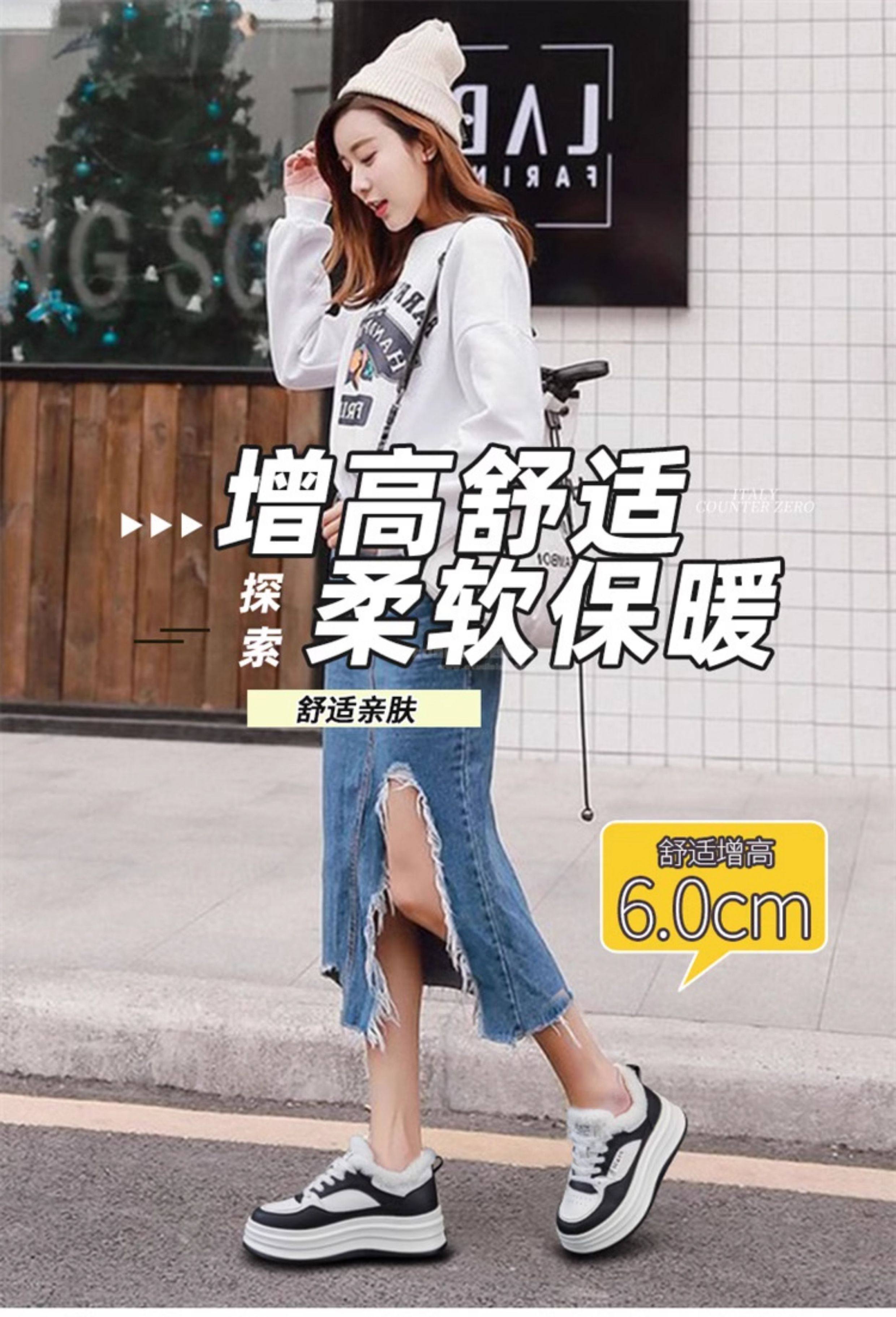 Hong Kong Fleece-Lined White Sneakers for Women 2025 Spring and Autumn New Cotton Shoes Thick-Soled Versatile Casual Shoes Sports Sneakers