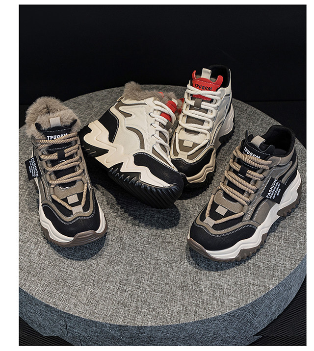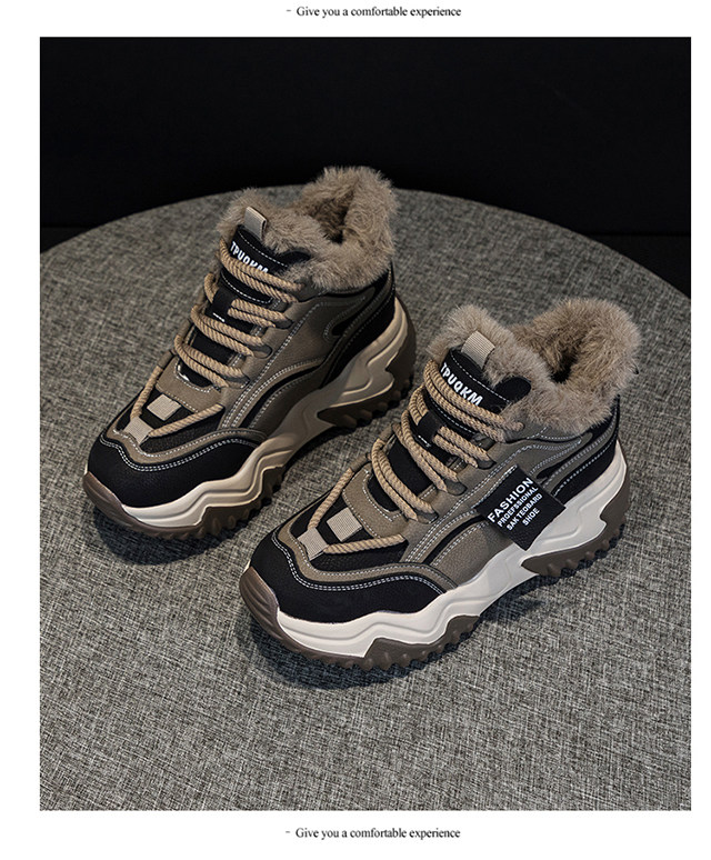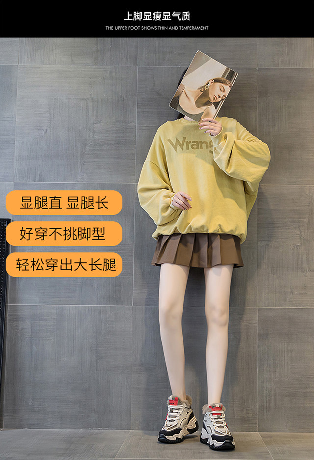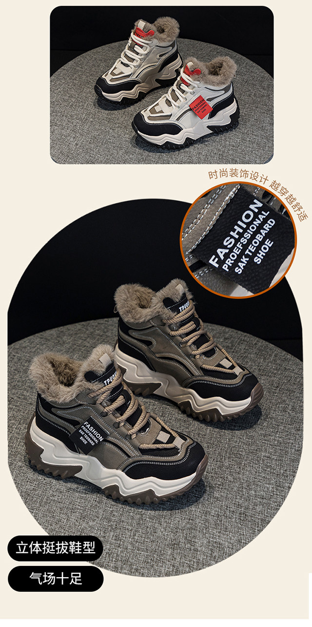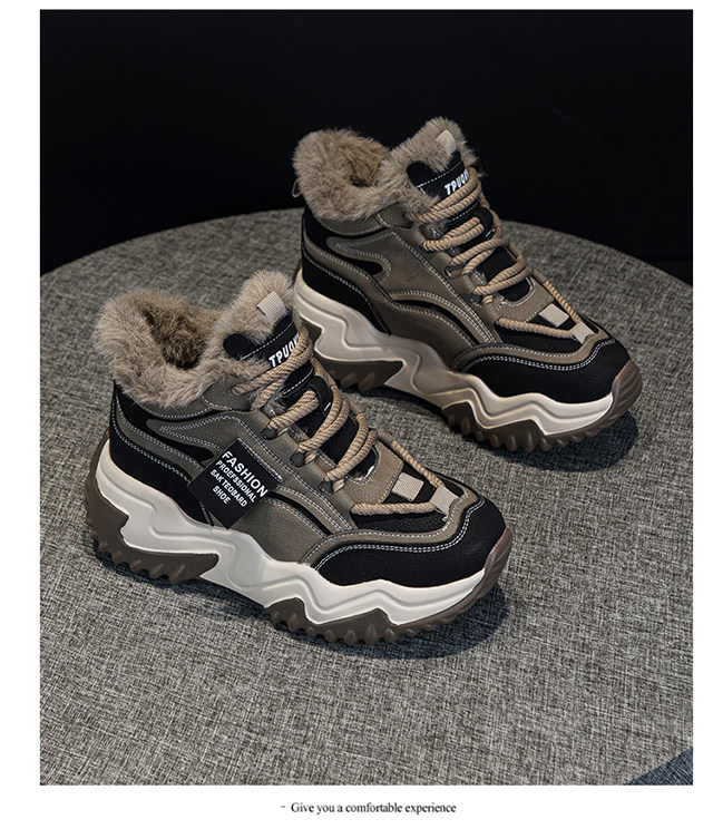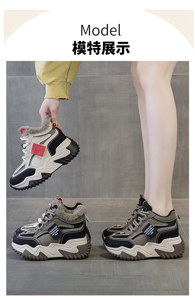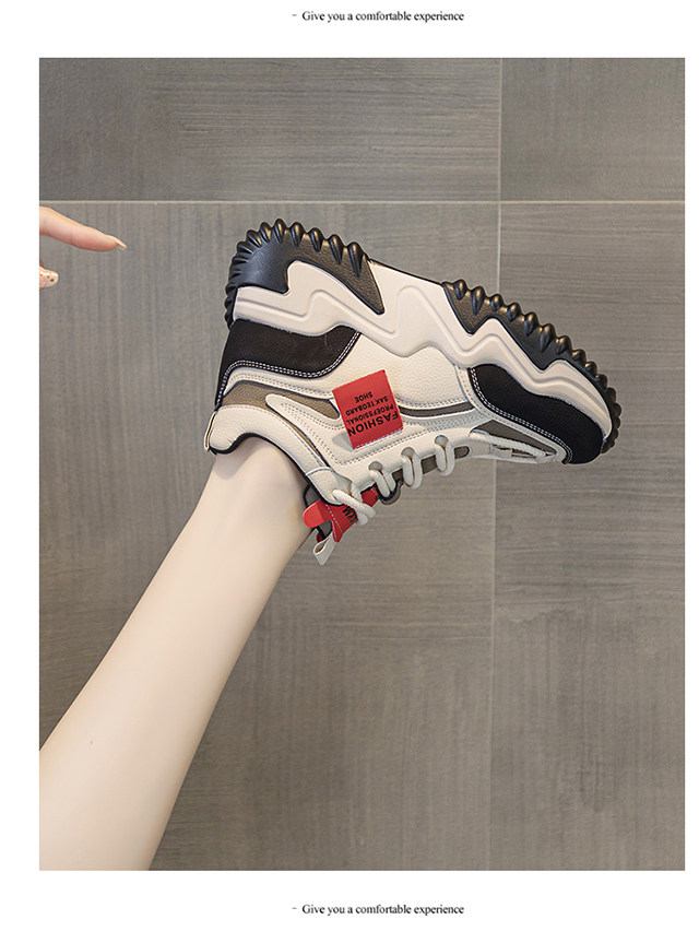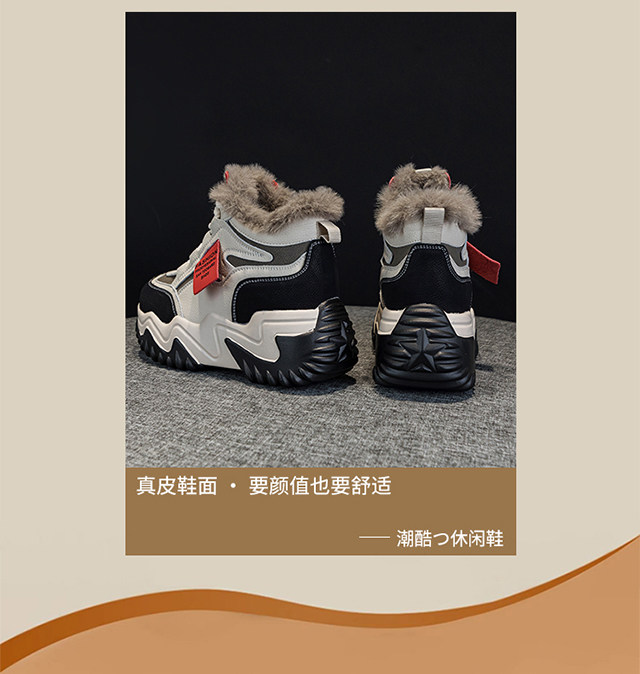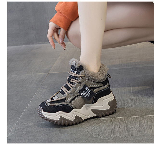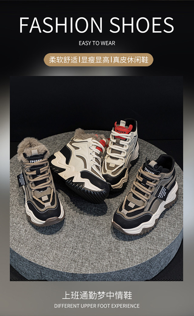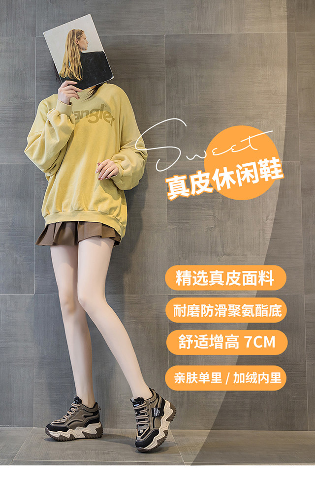 Genuine Leather Thick-Soled Height-Increasing Women's Shoes 2025 Autumn and Winter New Style for Petite Women, Casual High-Top Women's Shoes with Inner Height Increase and Fleece Lining