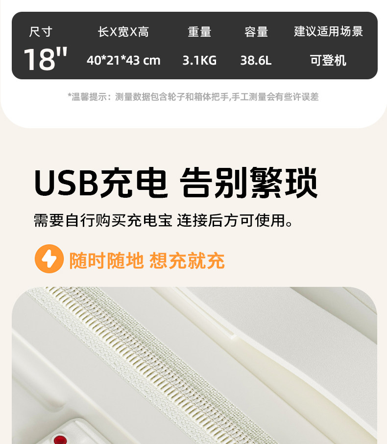 18inch Small Carry-On Luggage That Can Be Brought on Board Without Checked Baggage for Short-Distance Travel and Business Trips, Can Be Used on Airplanes 20inch Trolley Suitcase