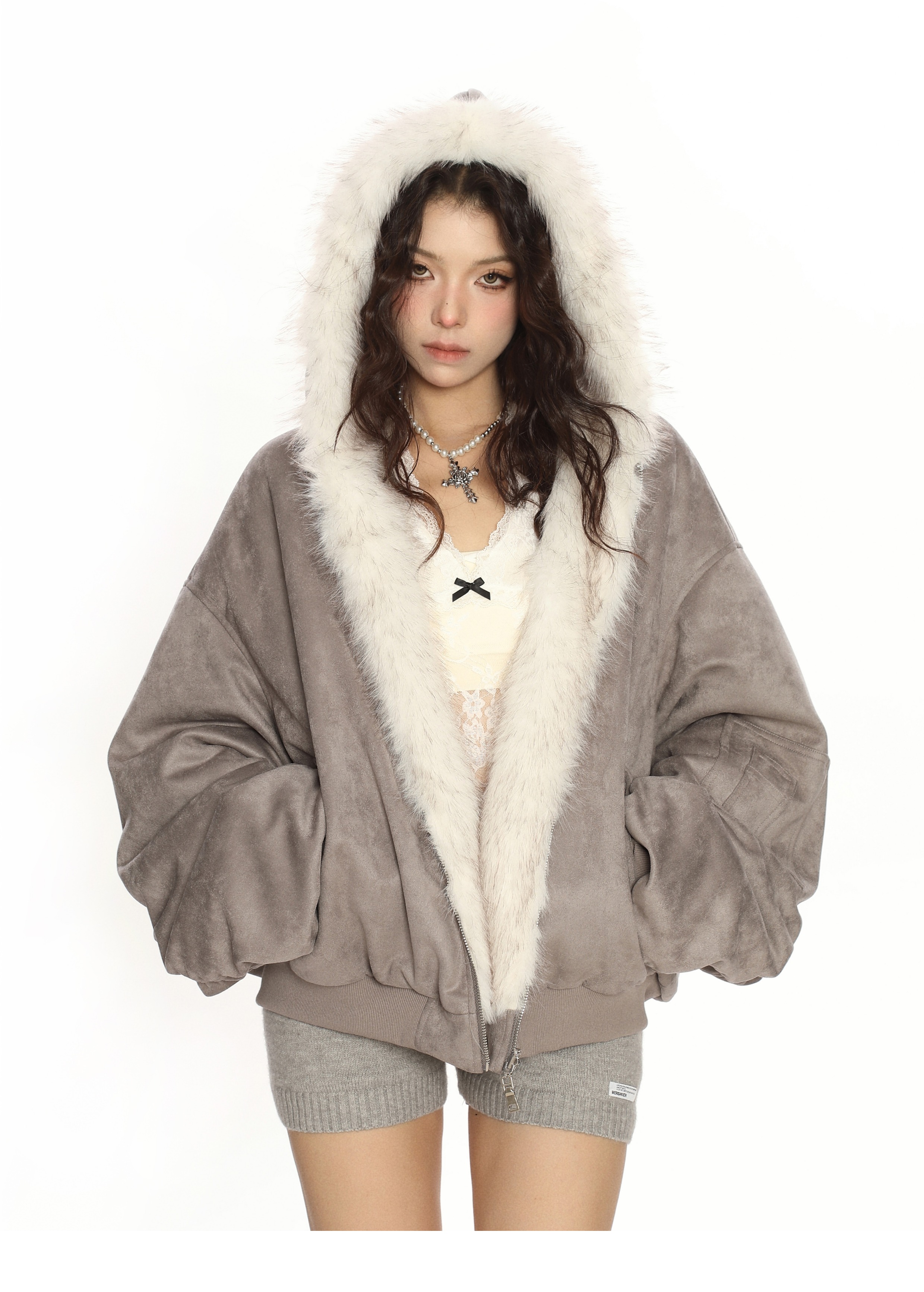 Biggold Suede Reversible Eco-Friendly Fur Cotton Jacket for Women Winter Thickened Warm Flight Jacket Trendy