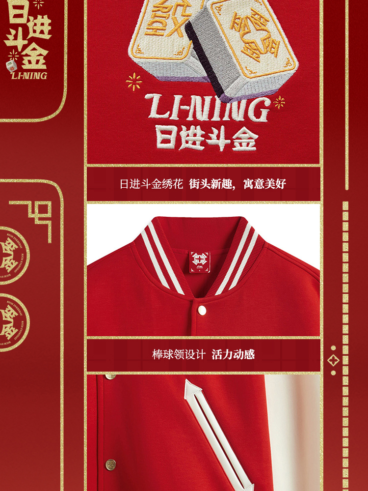 Xiao Zhan's Same Style Li-Ning Money-Making Jacket | Unisex 2025 New Red Loose Thin Fleece Printed Cardigan