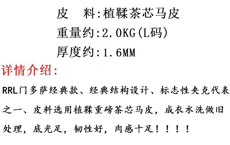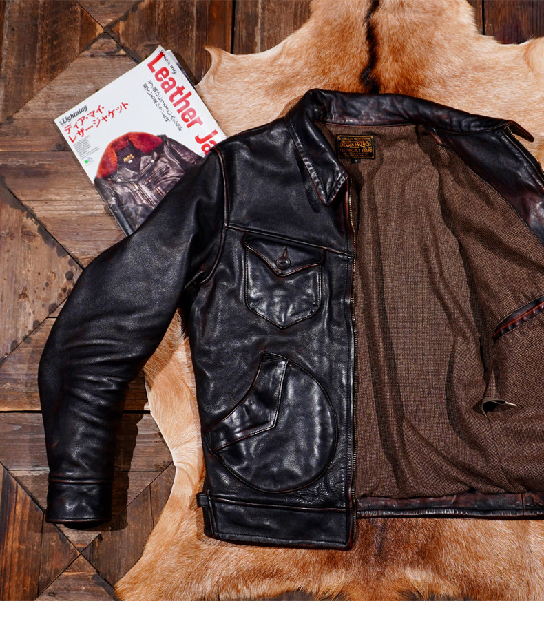 1.6mm A-Grade Leather! Graduated Version Vegetable-Tanned Horsehide Mendoza Leather Jacket, Slim Fit Men's Classic Rl
