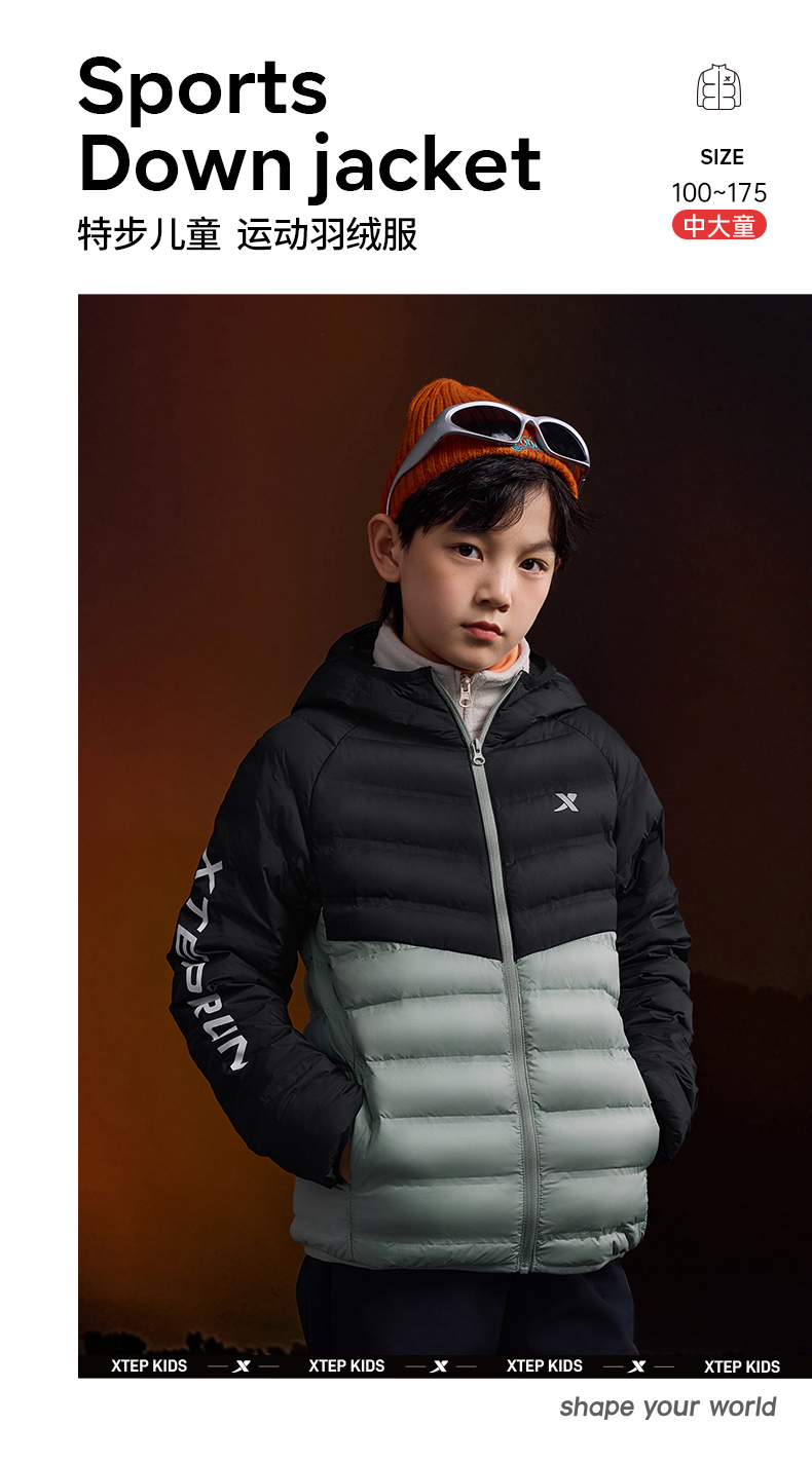 Xtep Children's Clothing Boys' down Jackets Autumn and Winter Children's Jackets Medium and Large Children's Casual All-Match down Jackets Girls' Warm Clothes