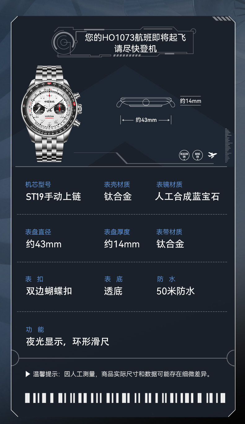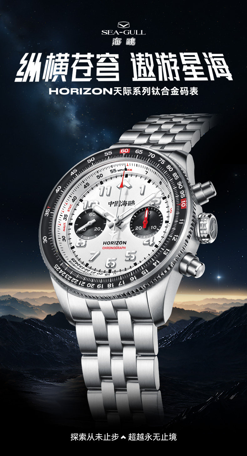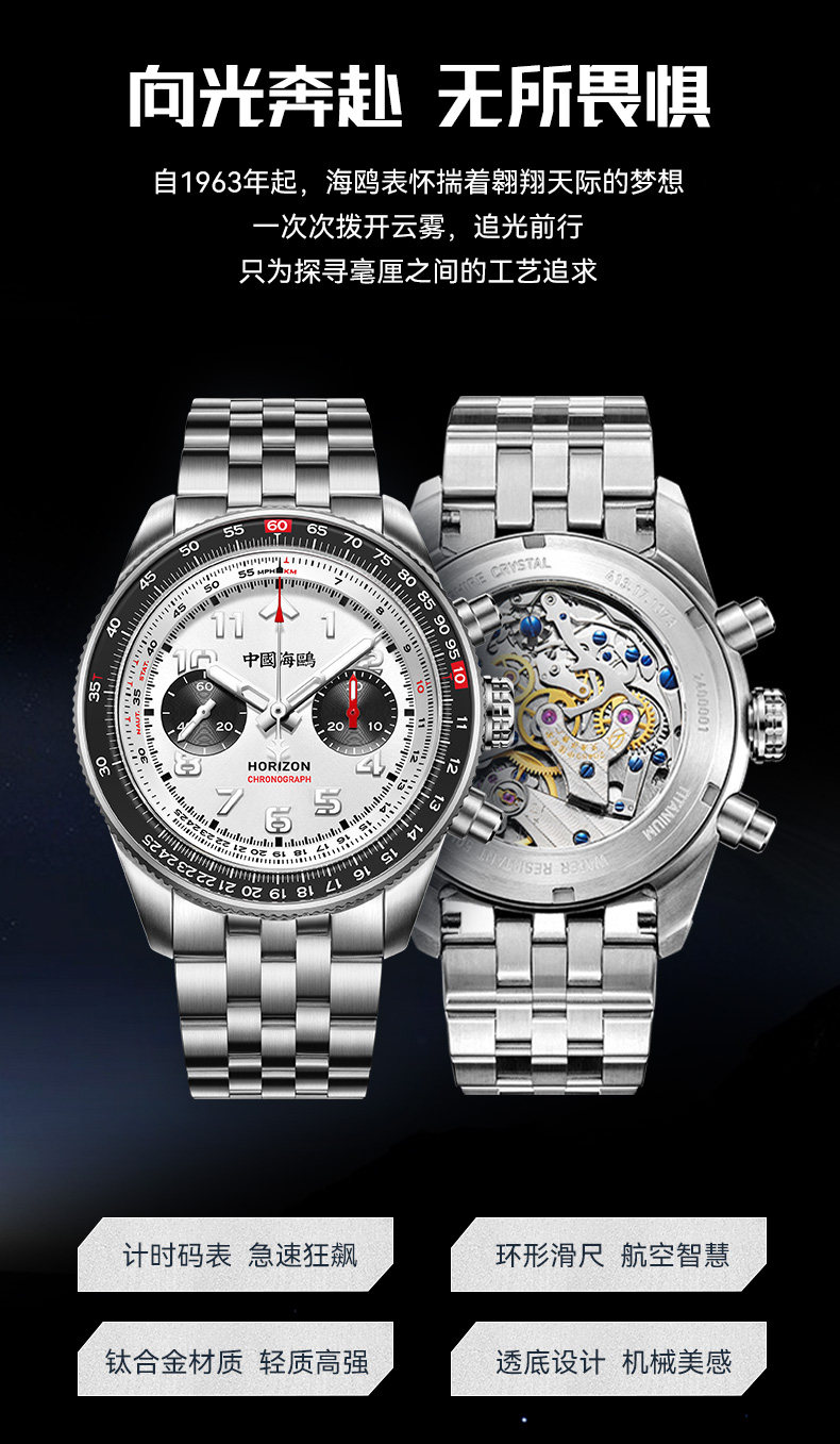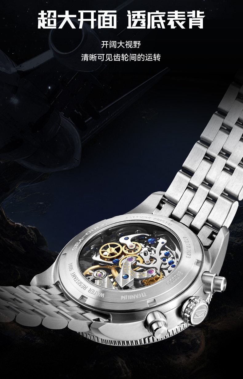 Seagull Watch Men's Titanium Alloy Watch Luminous Sky Scale Pilot Manual Mechanical Watch Chronograph 1073