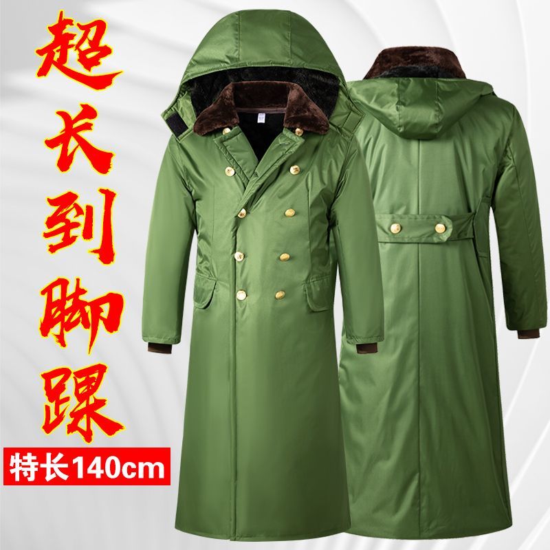 Waterproof Wash-free Military Cotton Coat Long Over-the-knee Winter Cold Storage Cotton-padded Clothes Live Face Removable Extras Thick Arctic Fleece