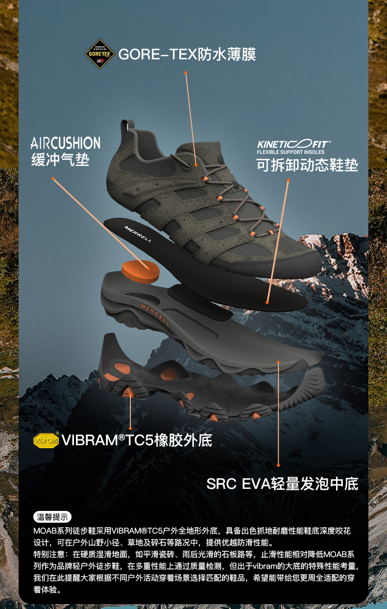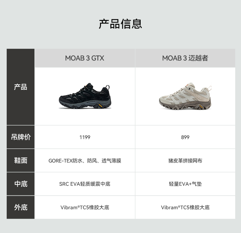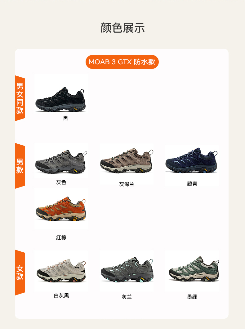 Merrell Moab3 Gtx Hiking Shoes Men's Hiking Shoes Women's Waterproof Shoes Wear-Resistant Breathable Outdoor Sports Shoes