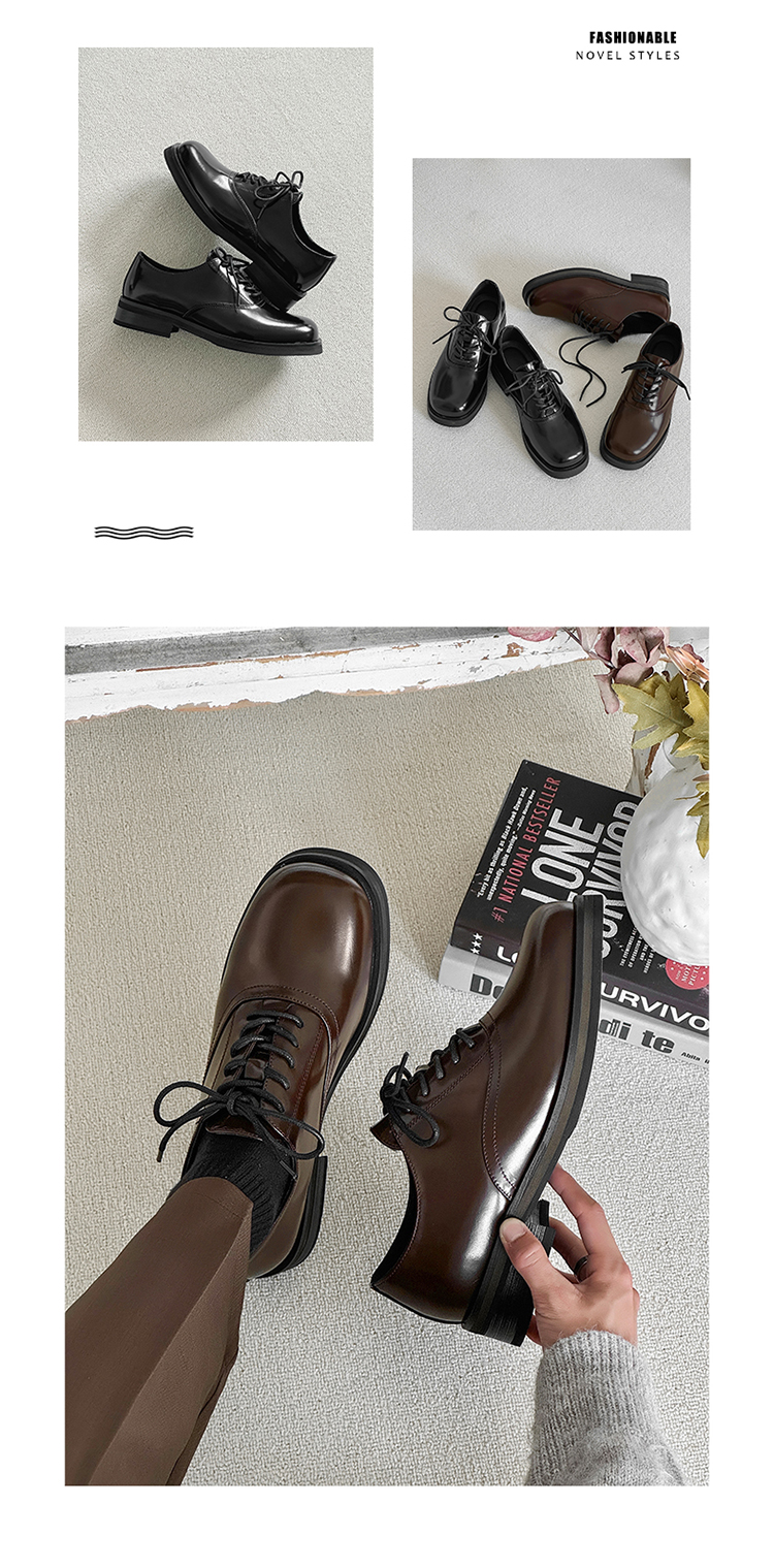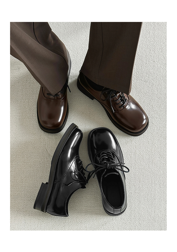 Casual Square-Toe Derby Shoes, Trendy Couple's Thick-Soled British Commuter Shoes, Cleanfit Business Formal Leather Shoes for Men and Women