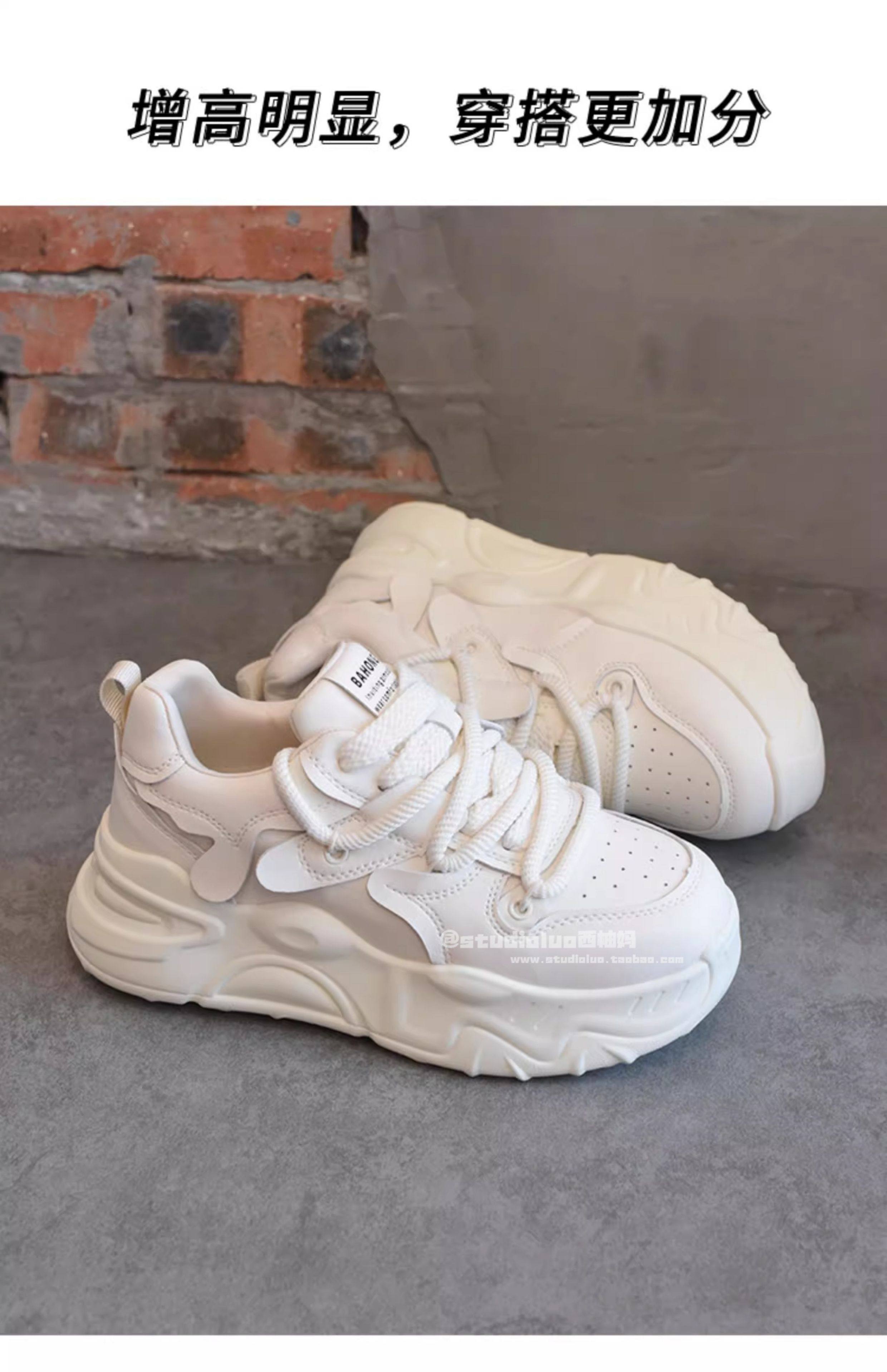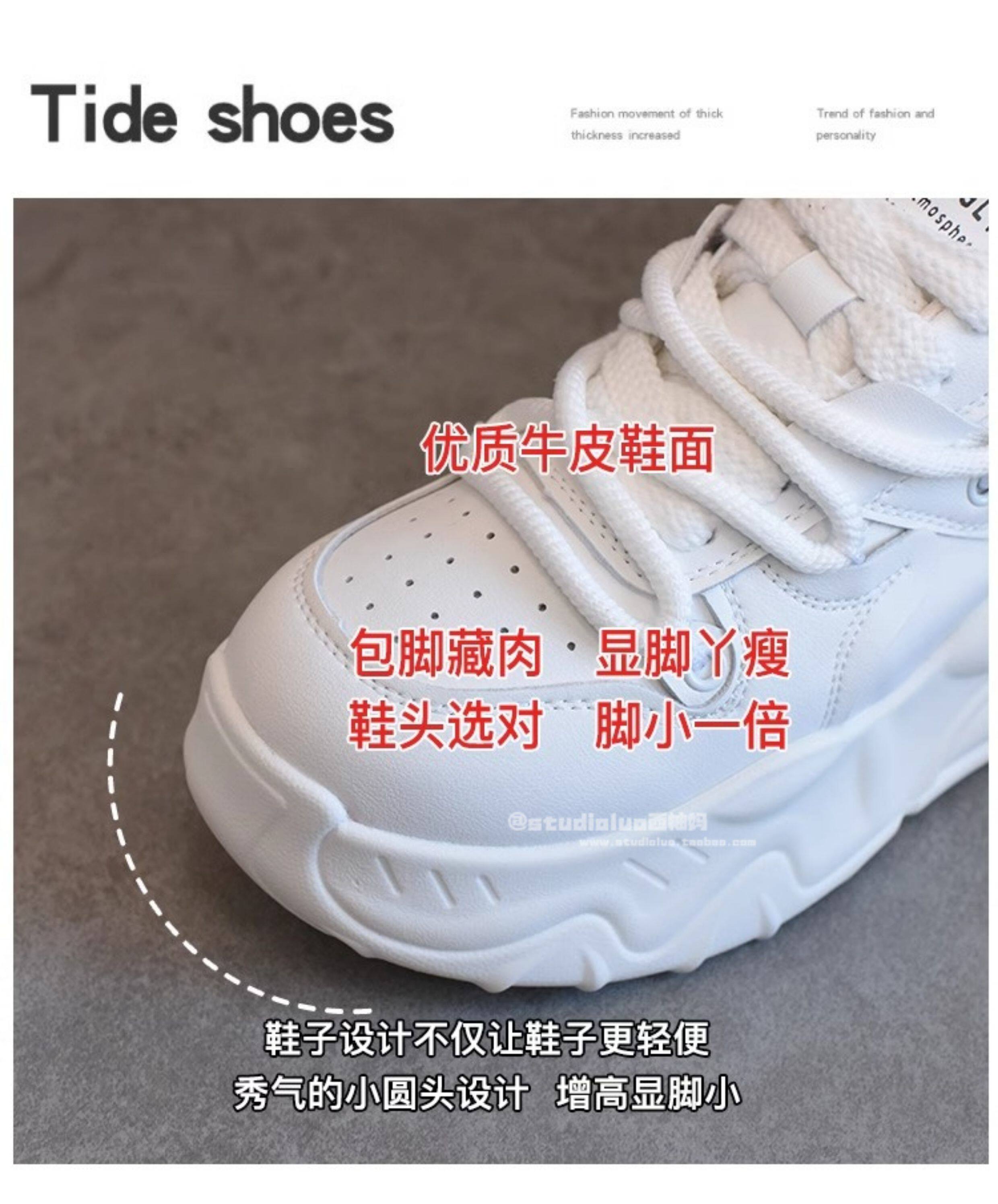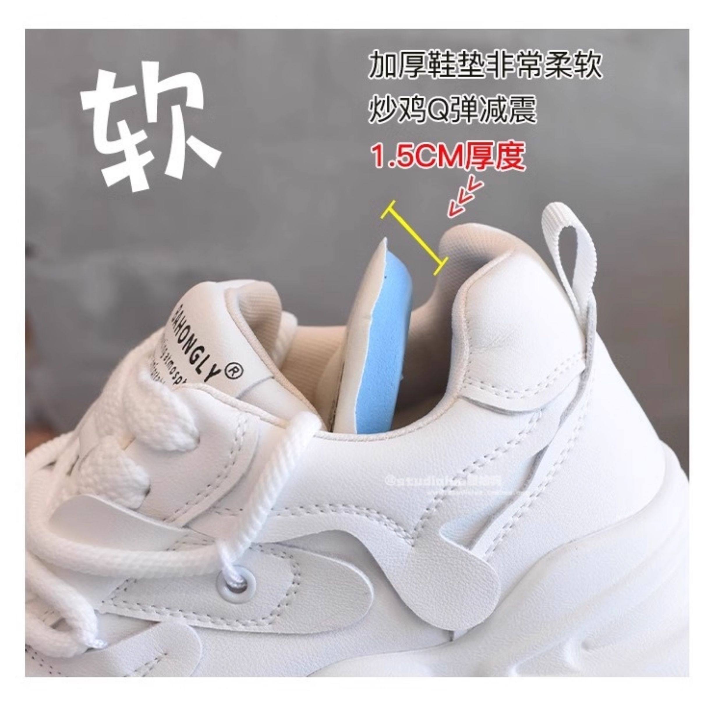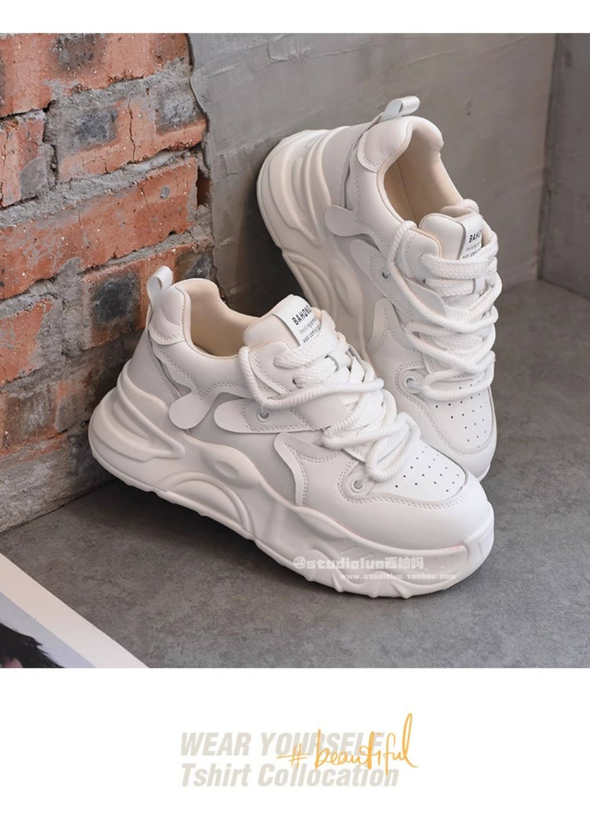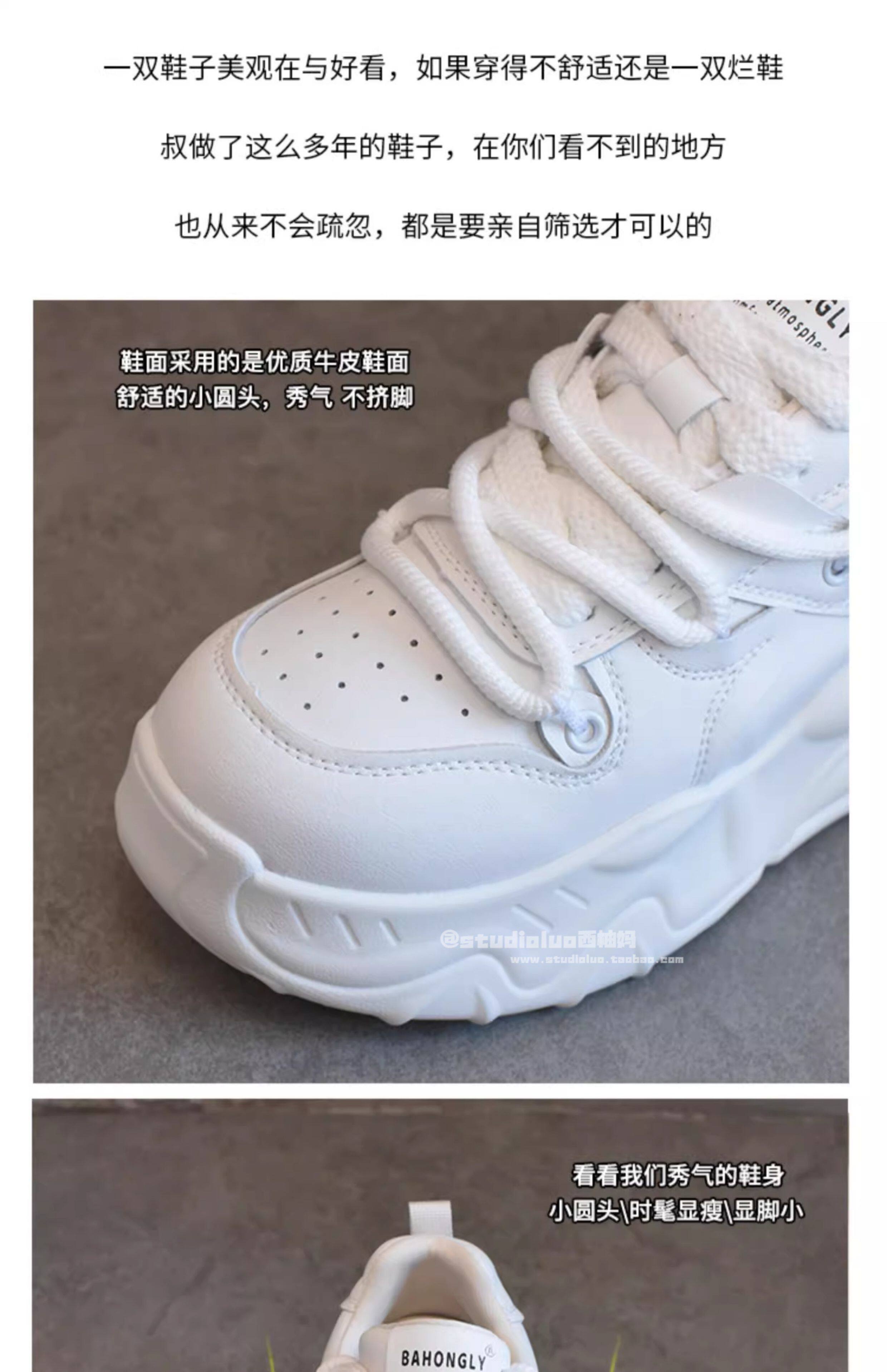 Hong Kong Genuine Leather Casual Versatile White Sneakers for Women 2025 Spring New Lace-Up Fleece-Lined Fashionable Height-Increasing Thick-Soled Dad Shoes