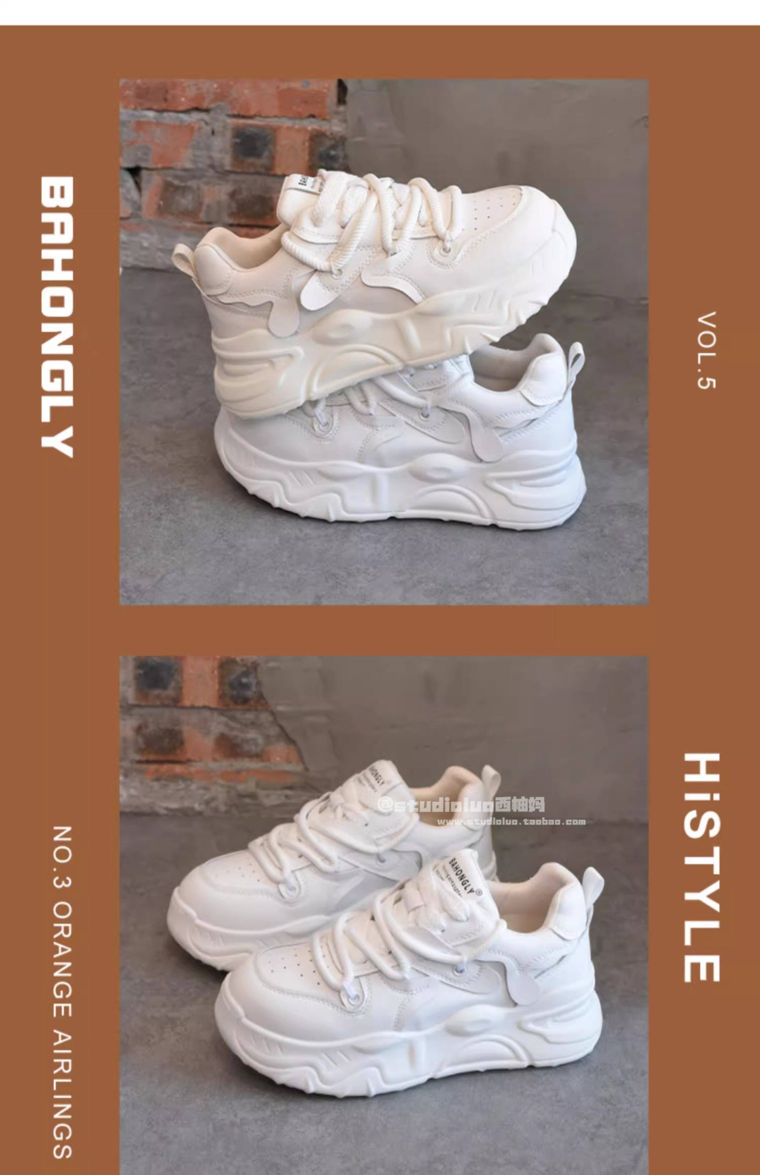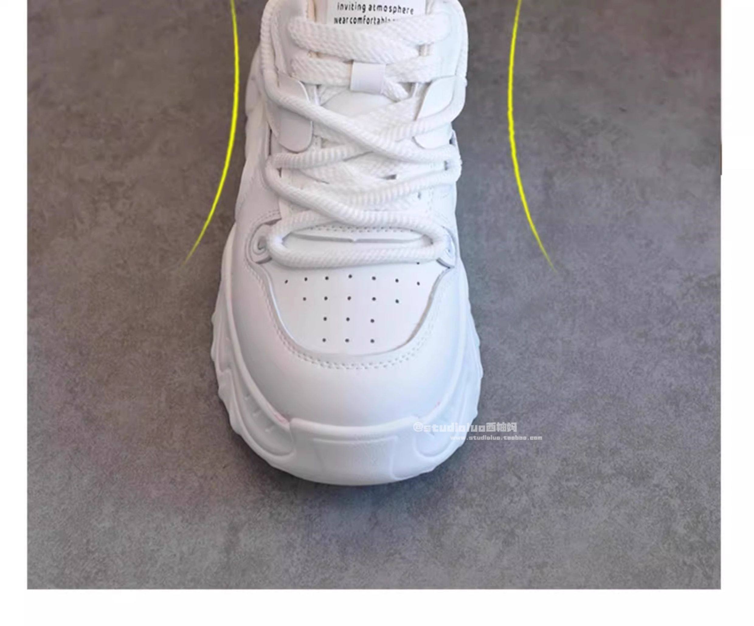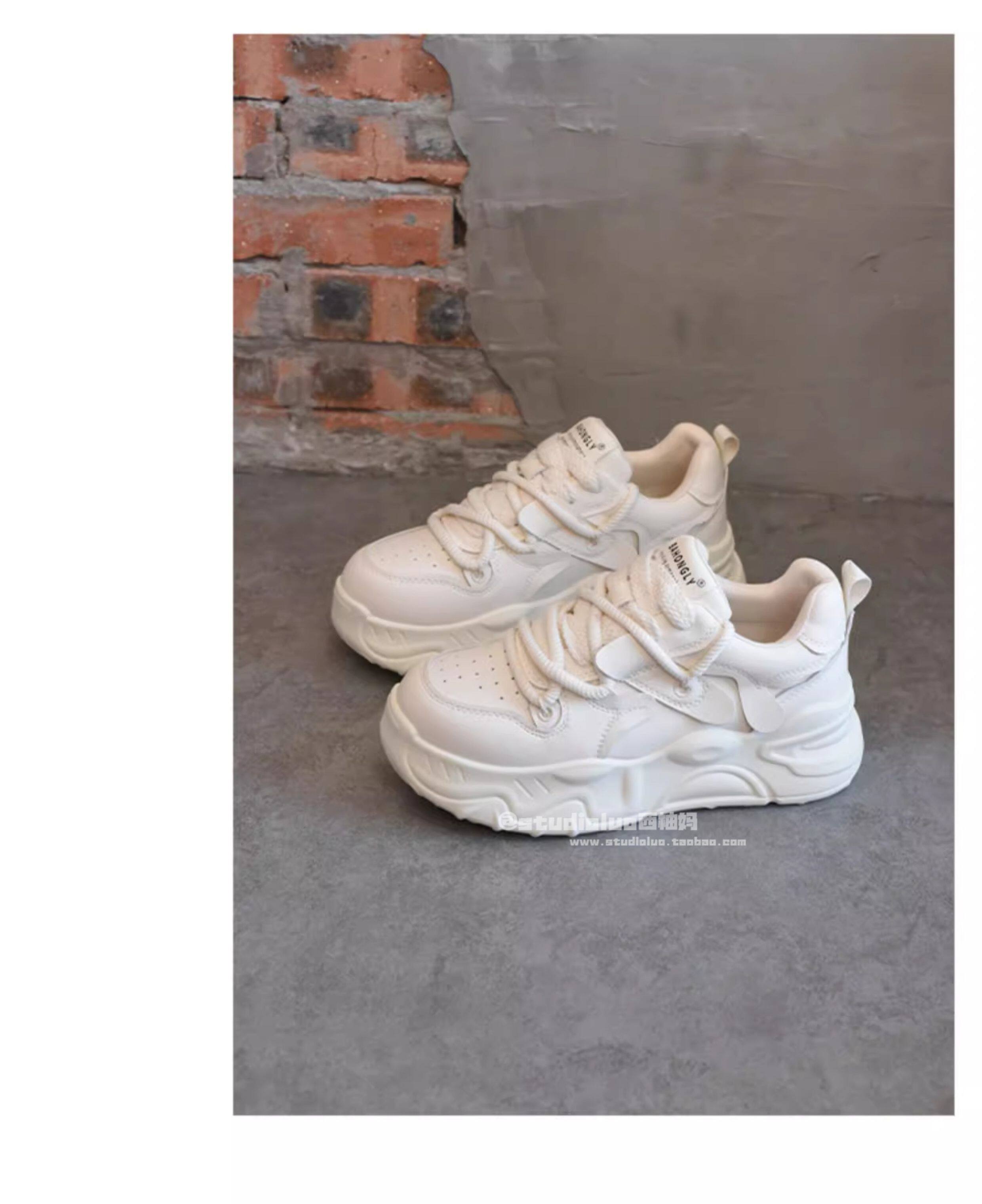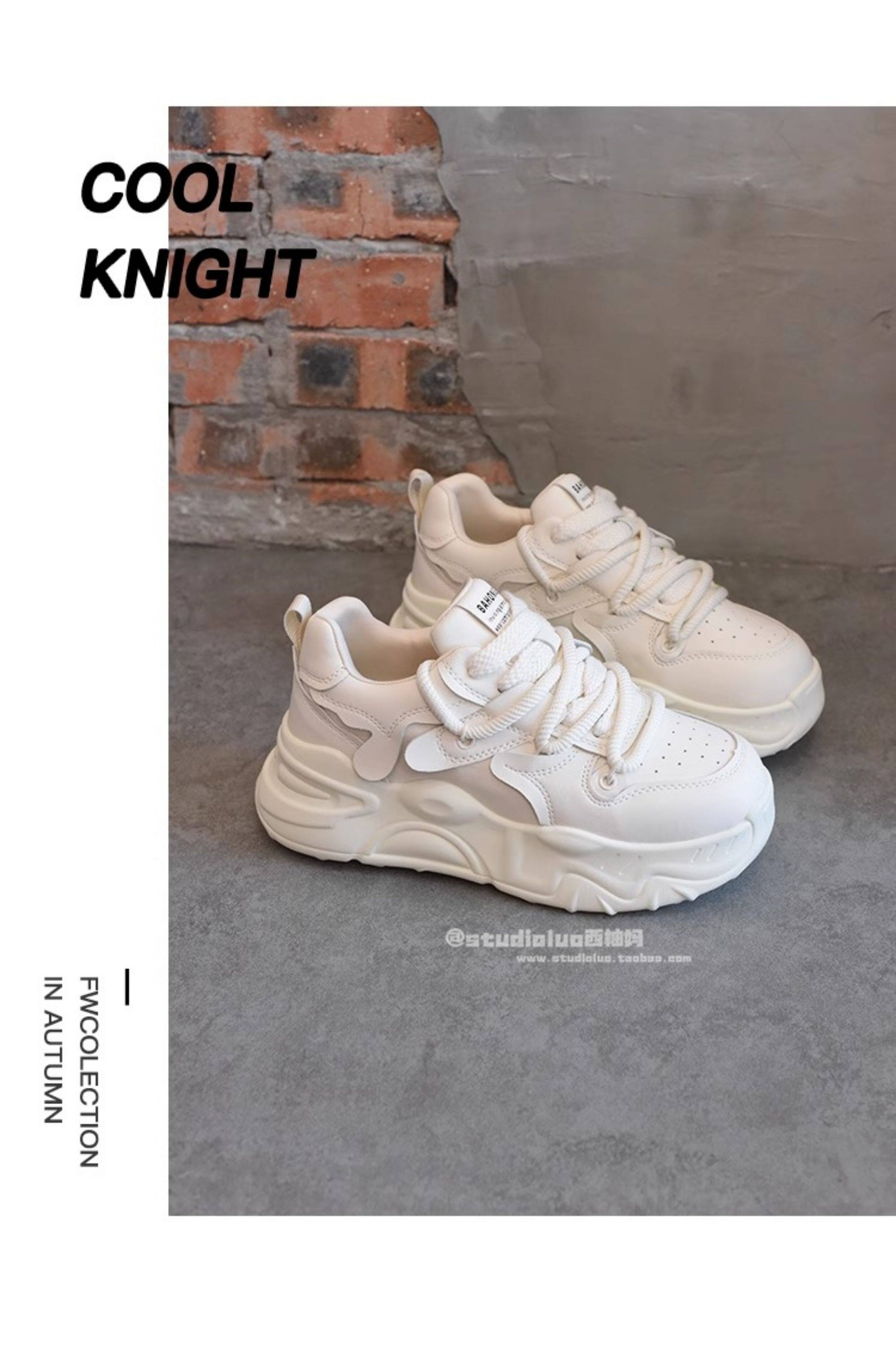 Hong Kong Genuine Leather Casual Versatile White Sneakers for Women 2025 Spring New Lace-Up Fleece-Lined Fashionable Height-Increasing Thick-Soled Dad Shoes