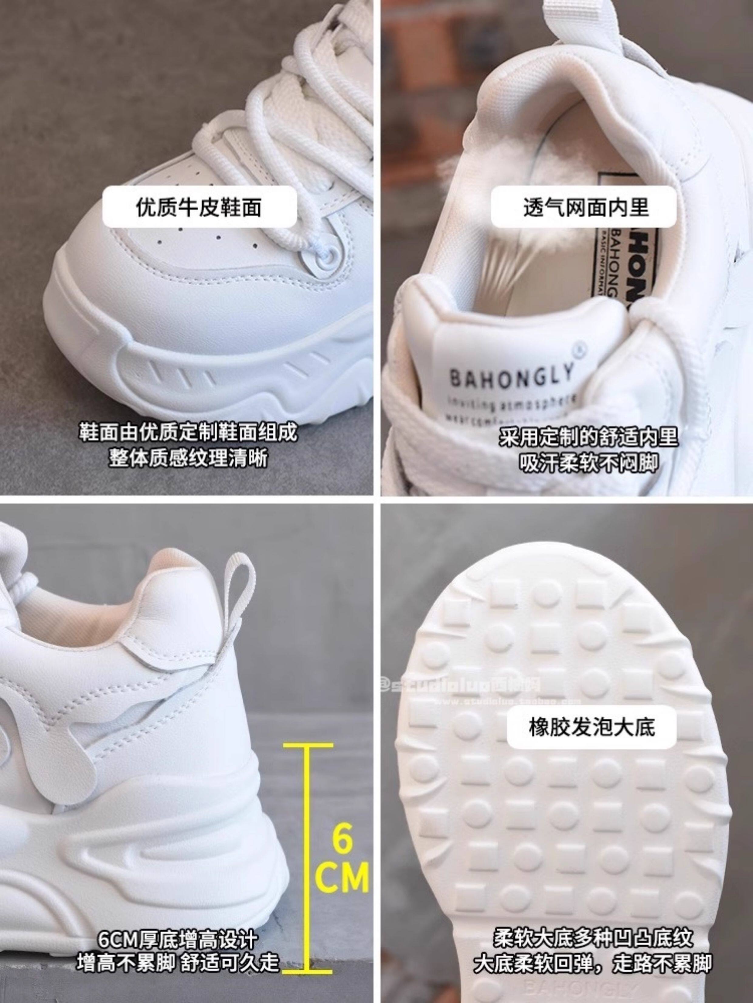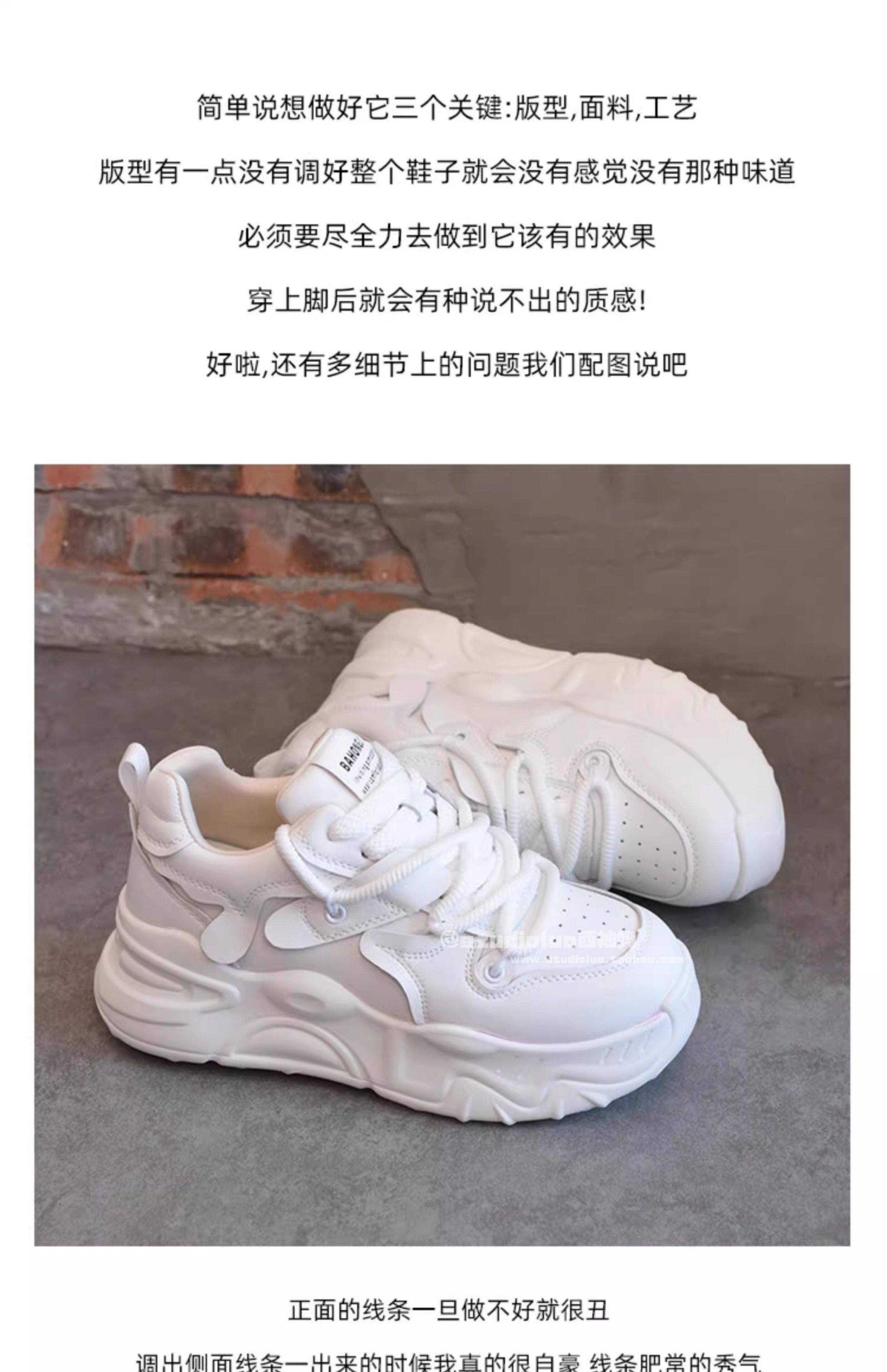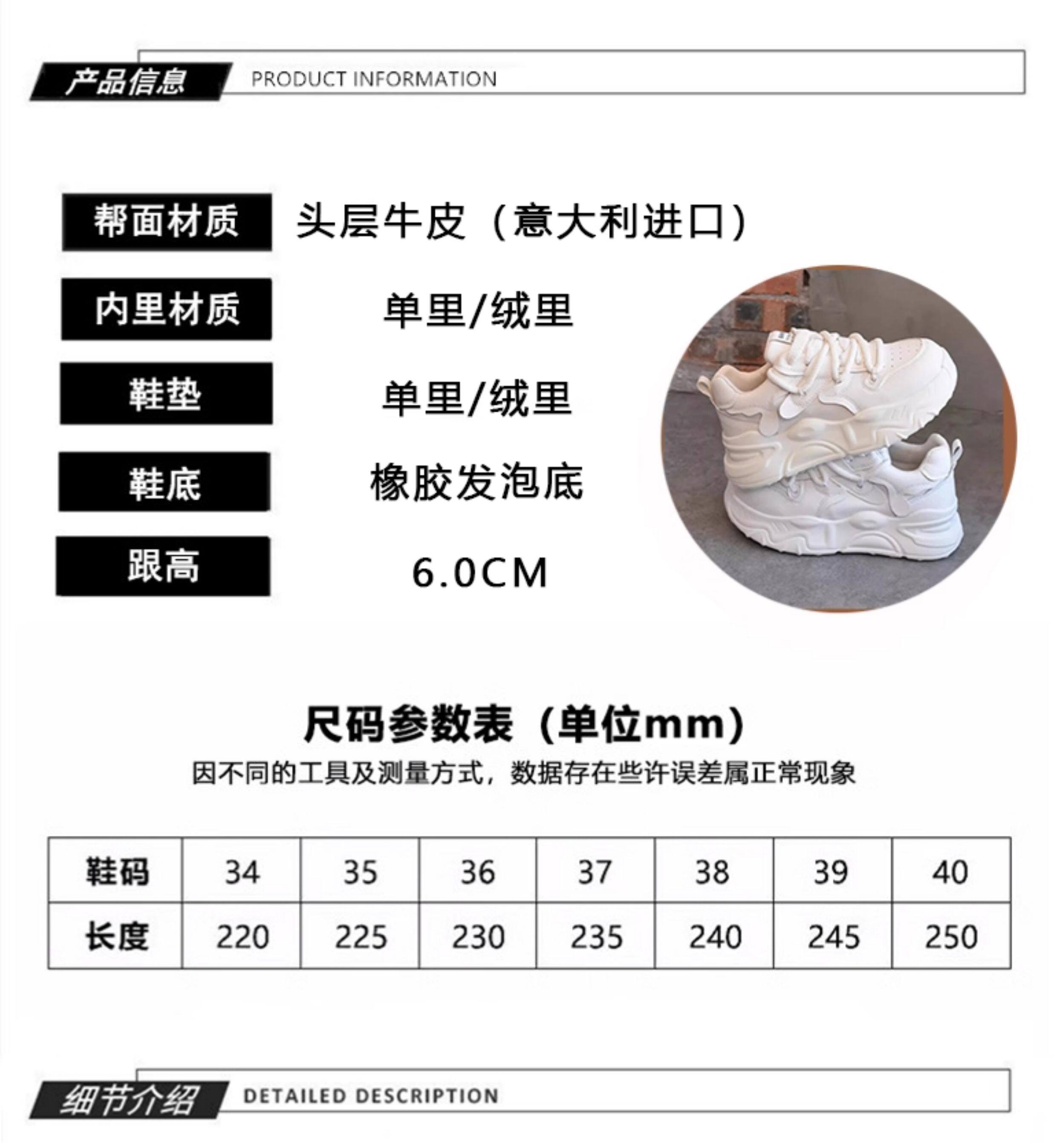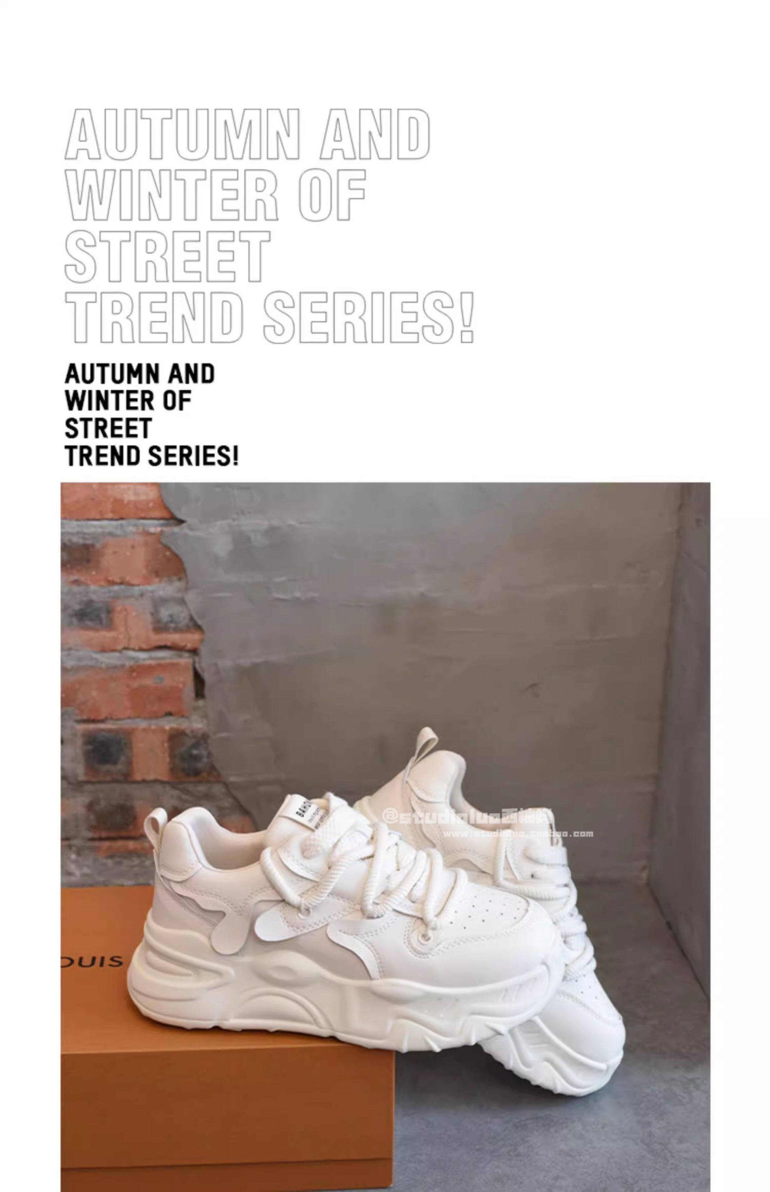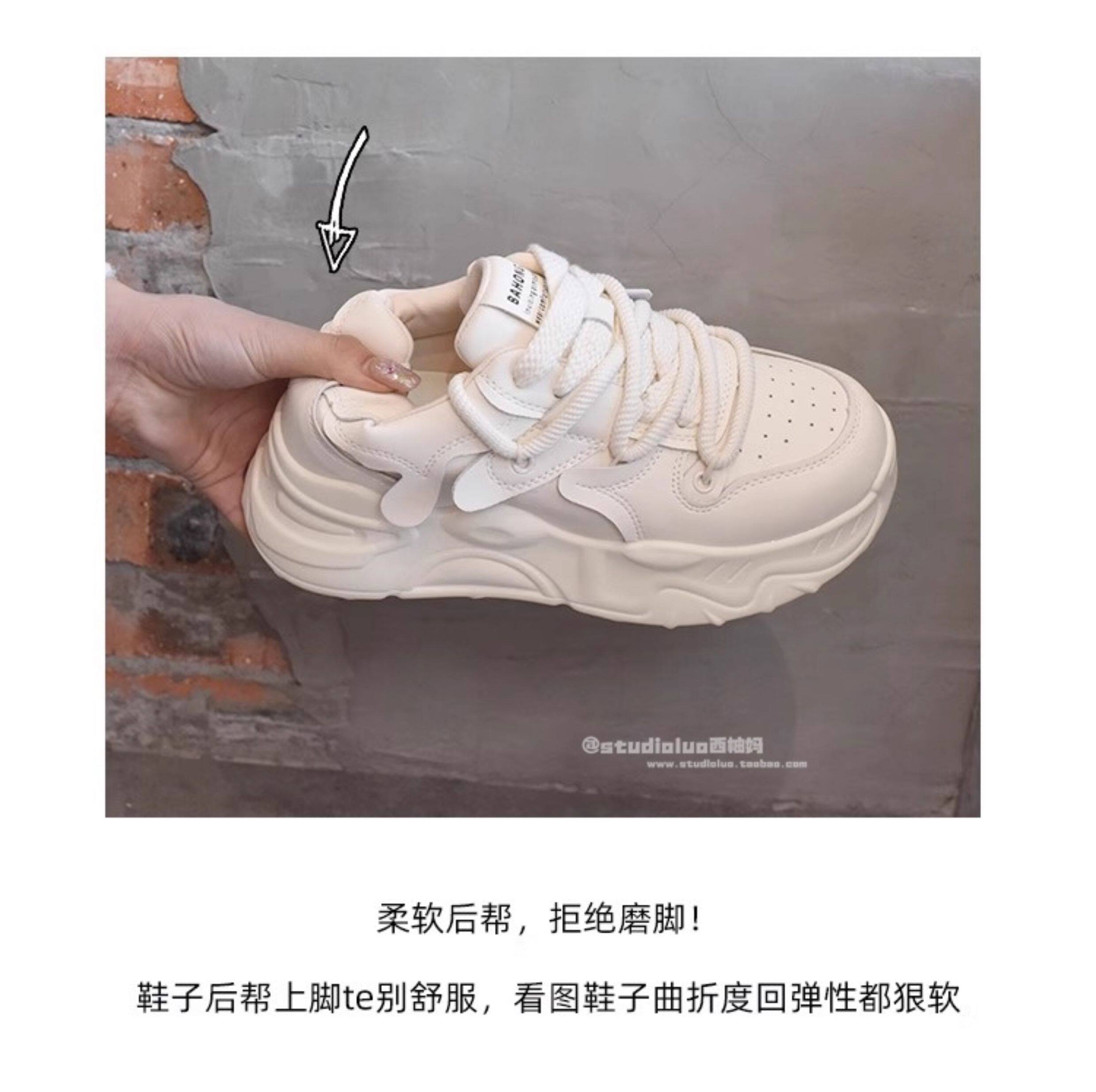 Hong Kong Genuine Leather Casual Versatile White Sneakers for Women 2025 Spring New Lace-Up Fleece-Lined Fashionable Height-Increasing Thick-Soled Dad Shoes