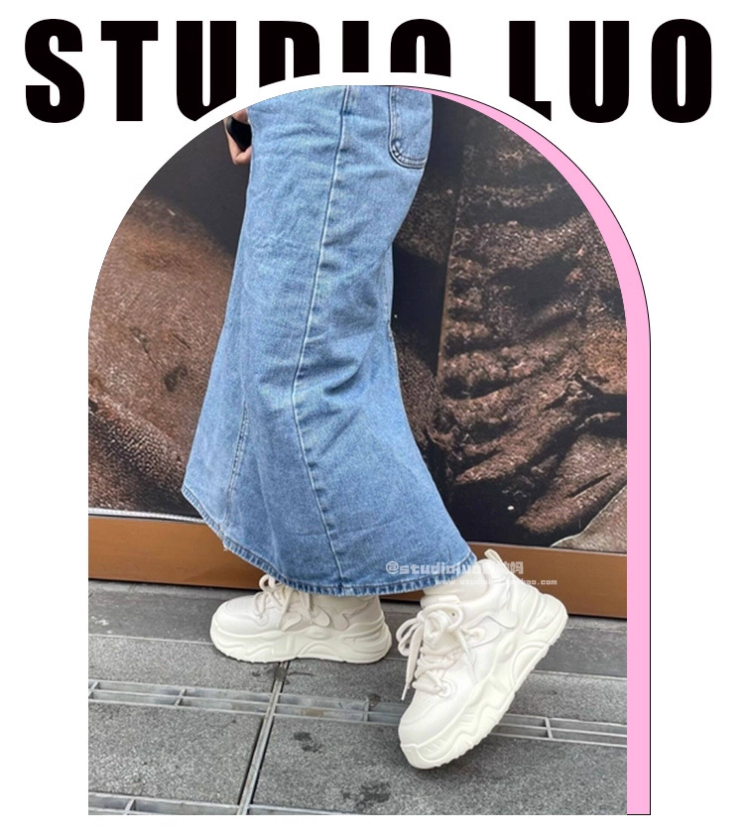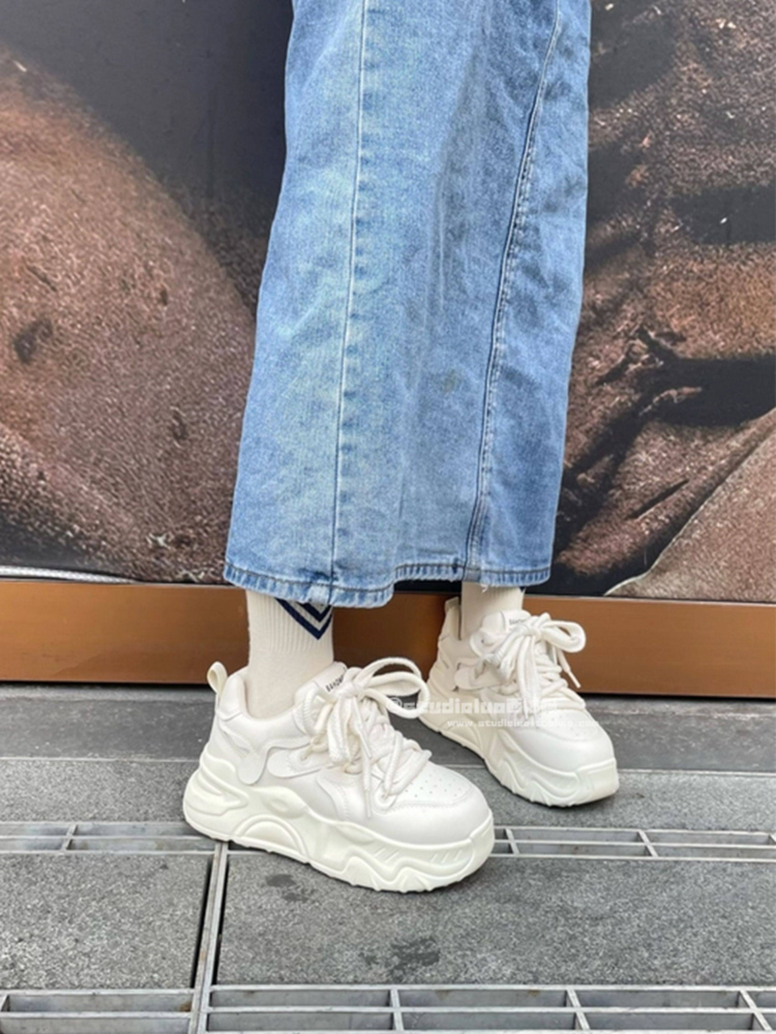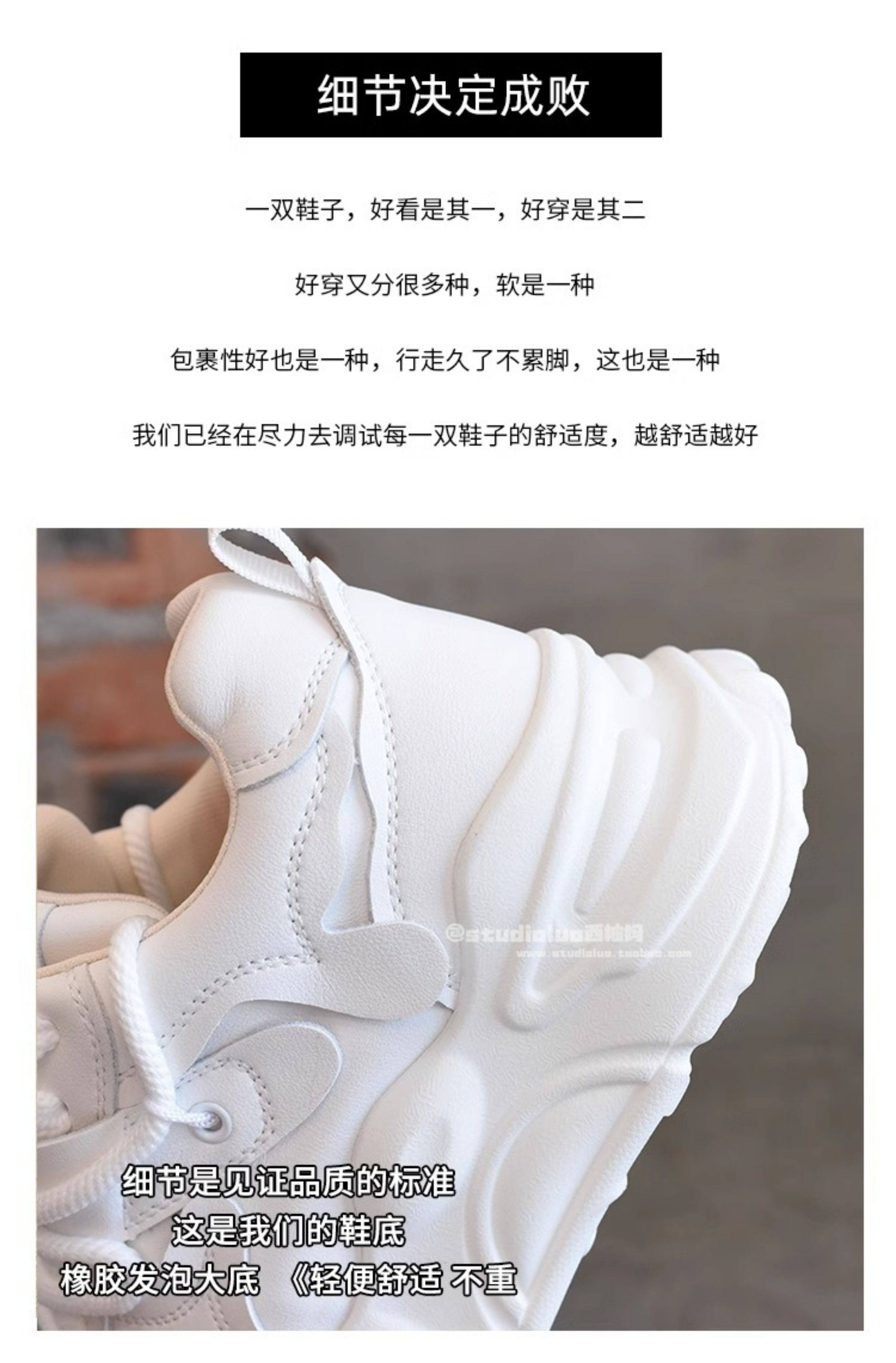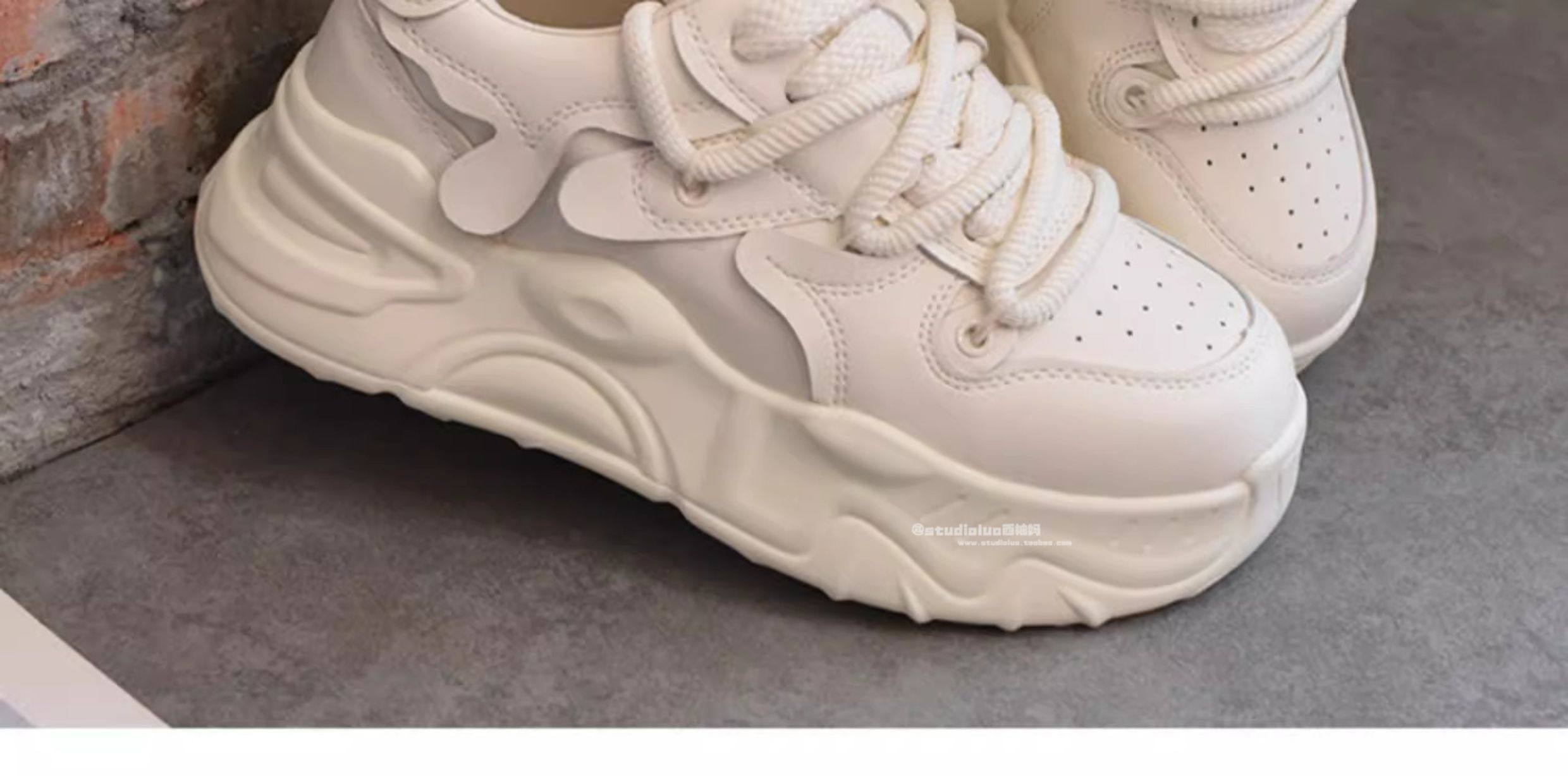 Hong Kong Genuine Leather Casual Versatile White Sneakers for Women 2025 Spring New Lace-Up Fleece-Lined Fashionable Height-Increasing Thick-Soled Dad Shoes