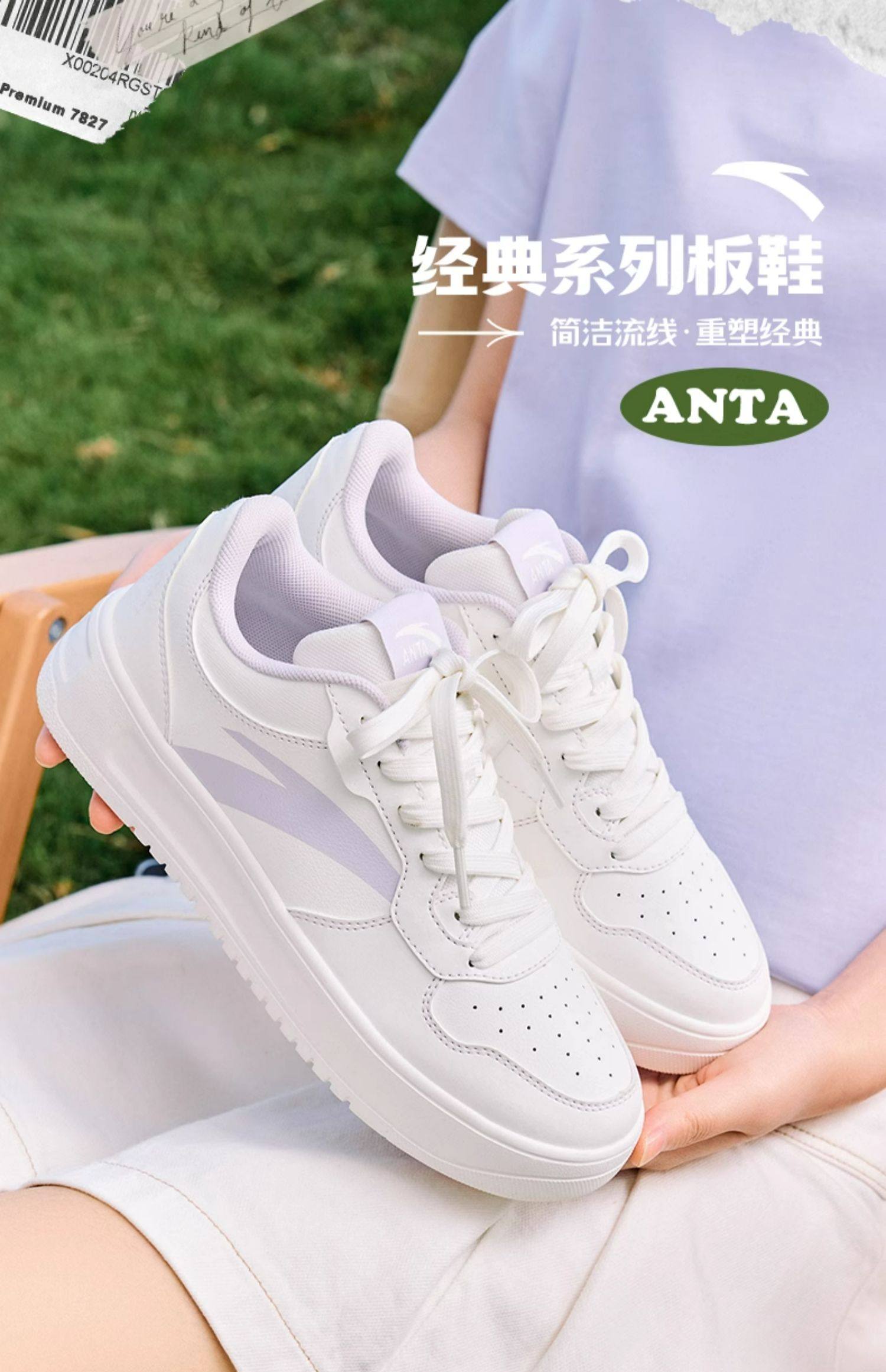 Anta Women's Sneakers 2026 Autumn and Winter New Versatile White Thick-Soled Sports Shoes for Junior High School Students, Women's White Shoes