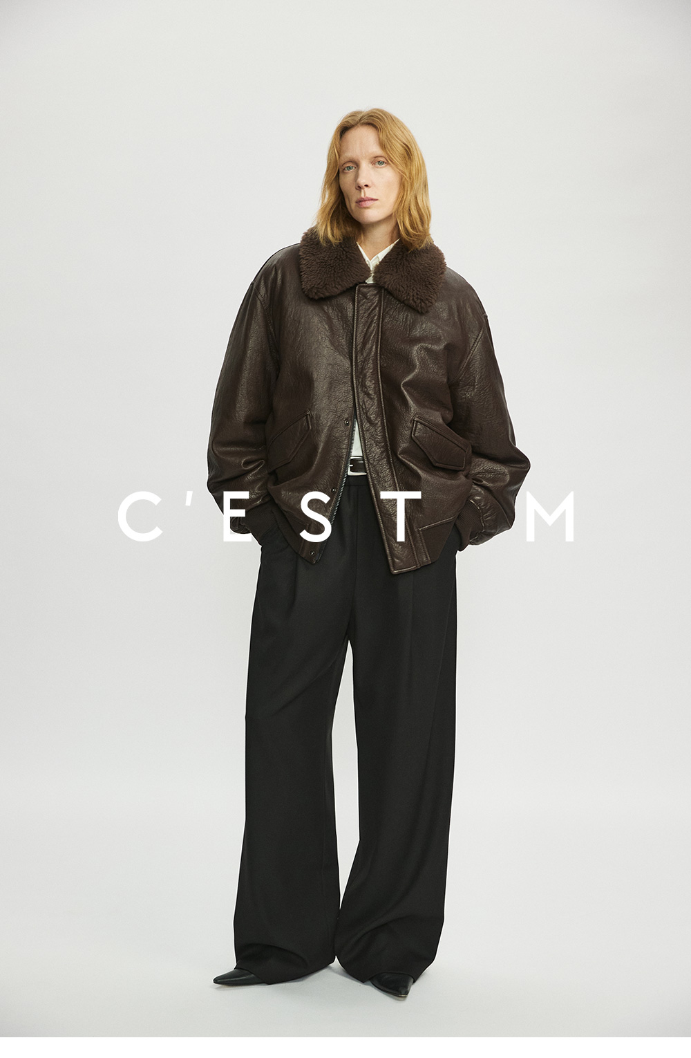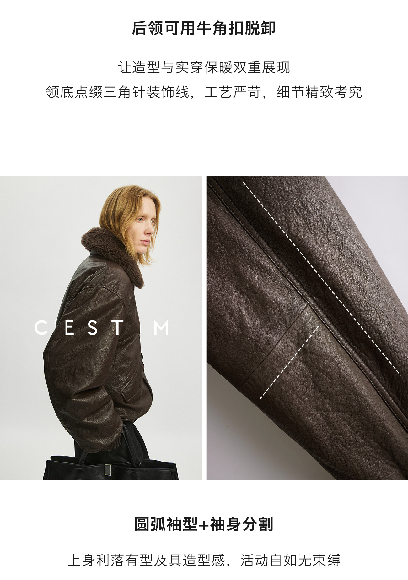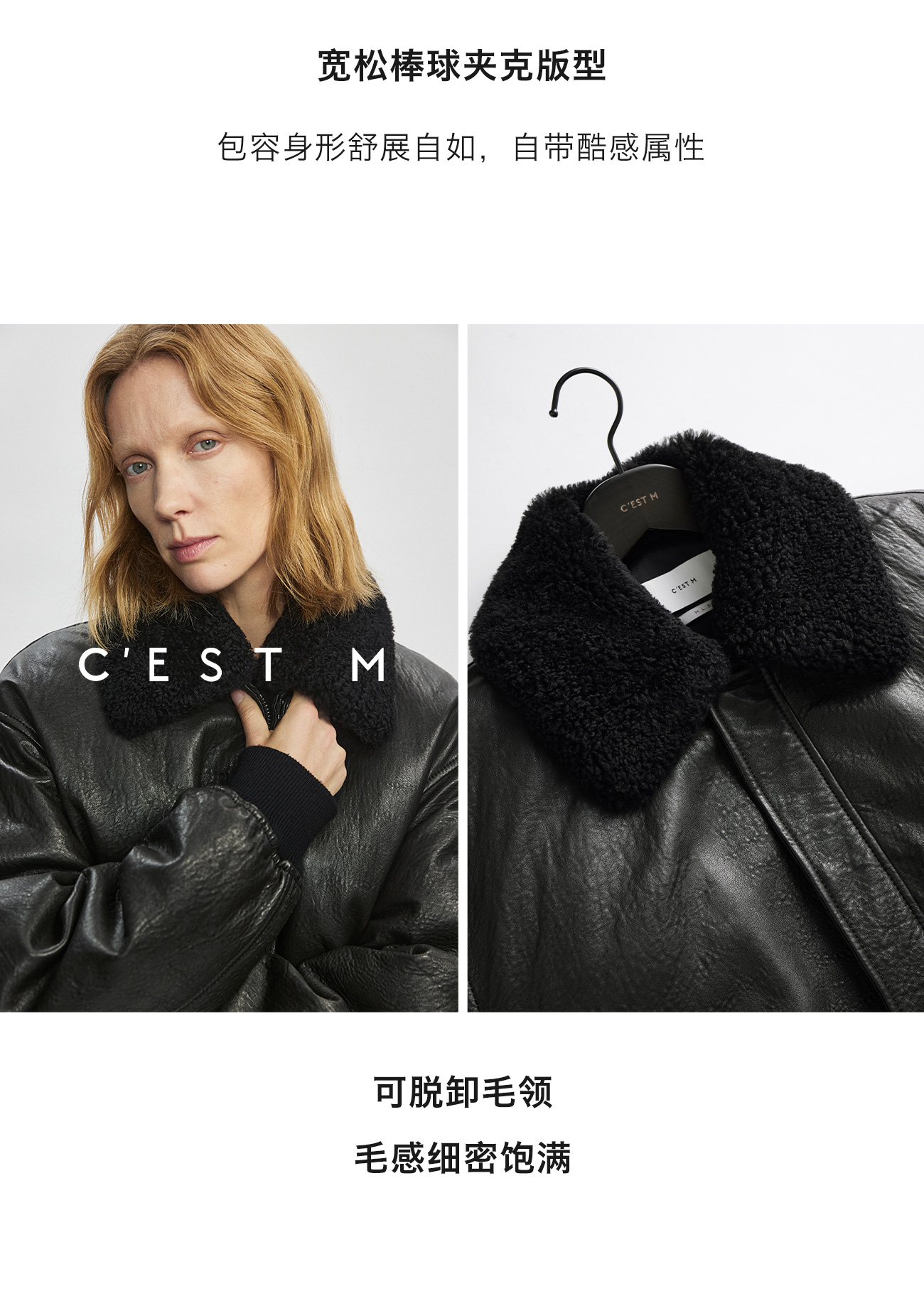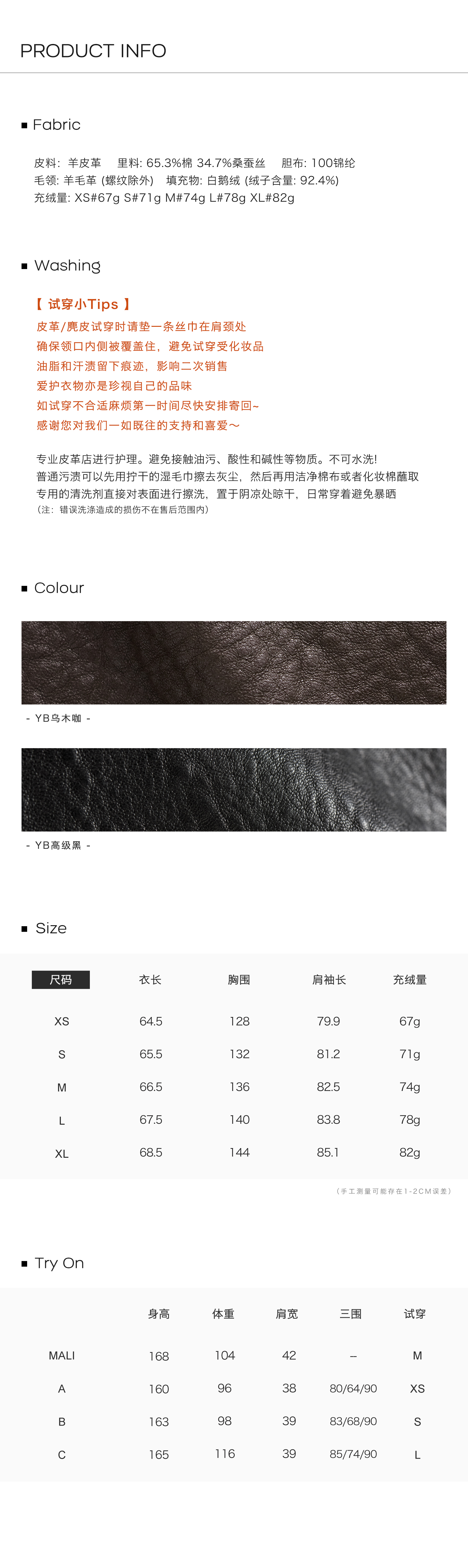 Cest M|Imported Ys*L Yb Sheepskin Detachable Fur Collar Hungarian White Goose down Leather Jacket