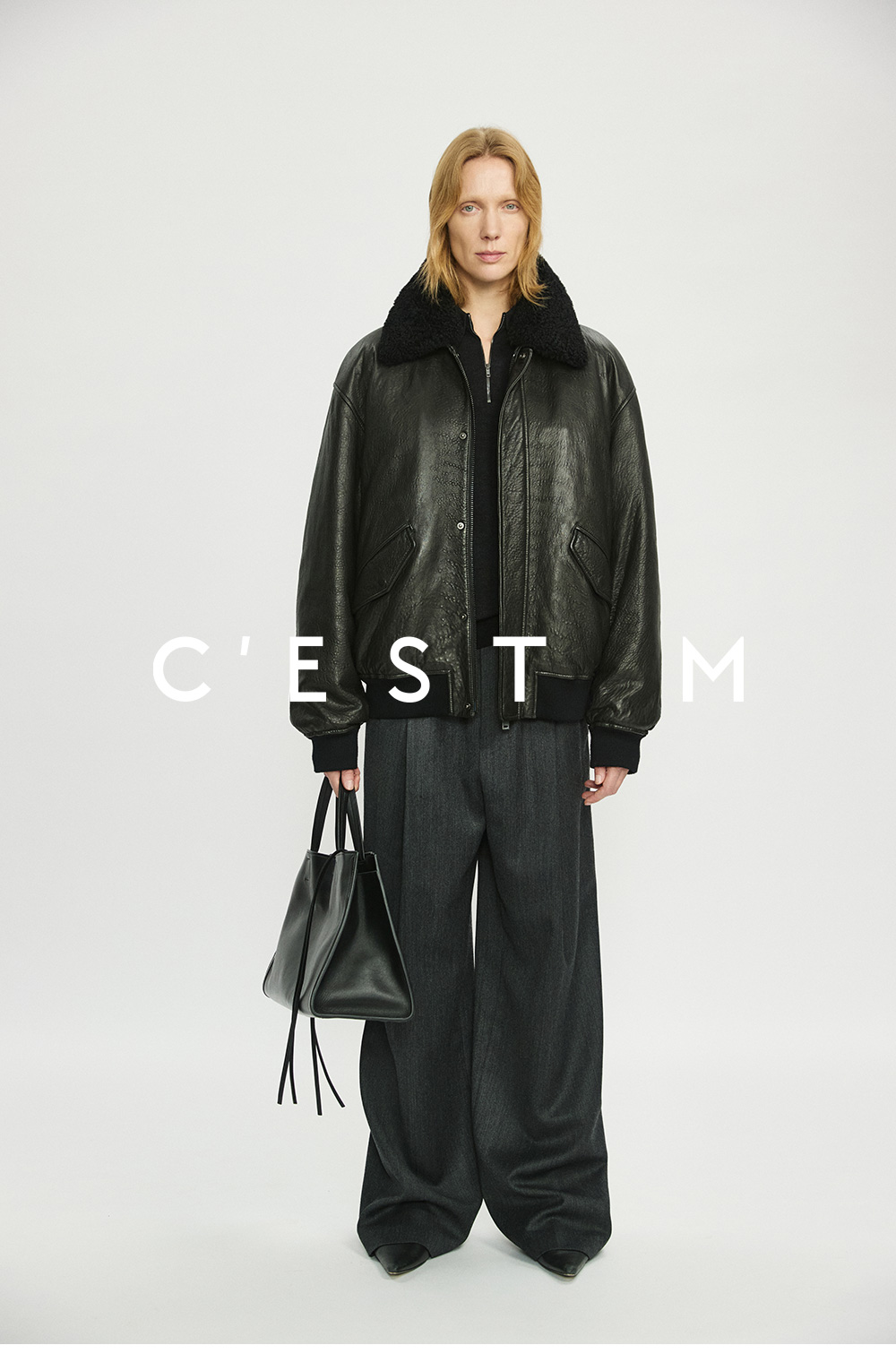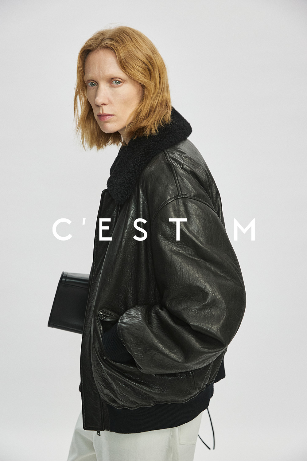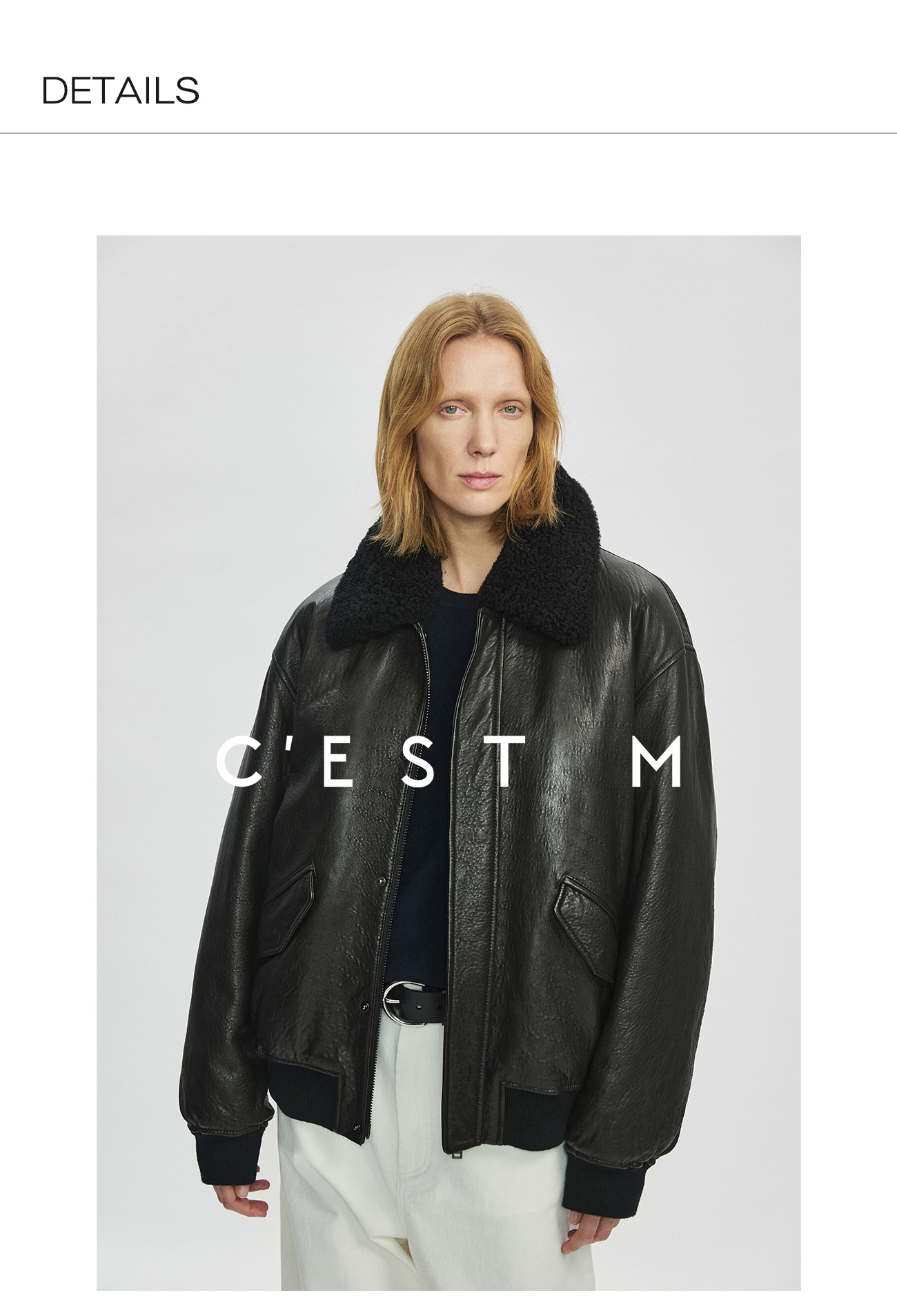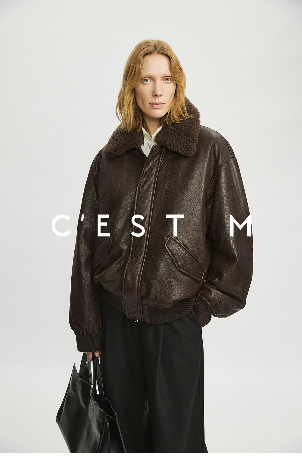 Cest M|Imported Ys*L Yb Sheepskin Detachable Fur Collar Hungarian White Goose down Leather Jacket