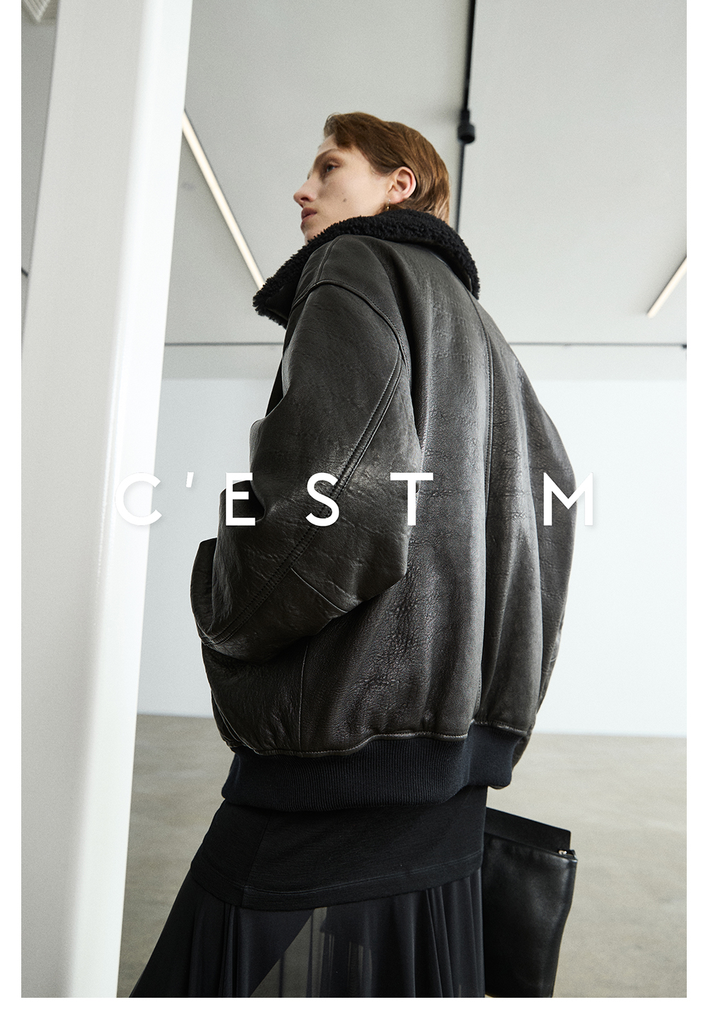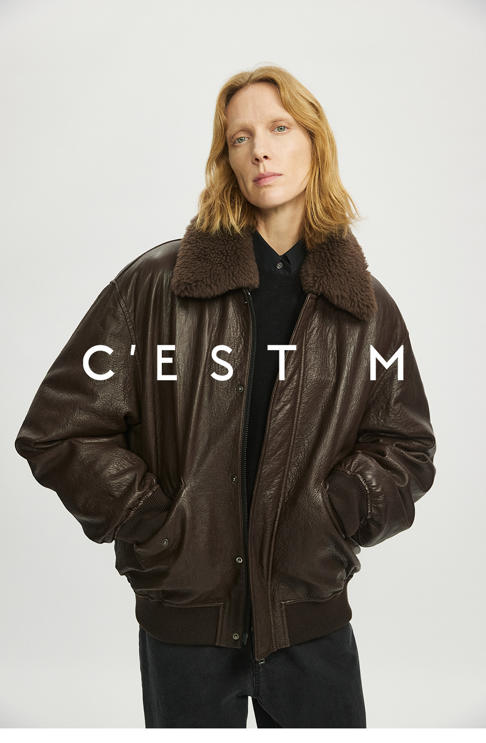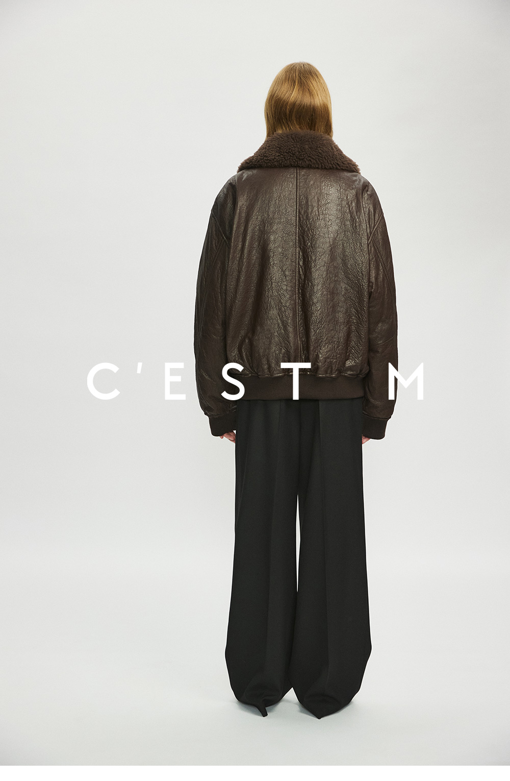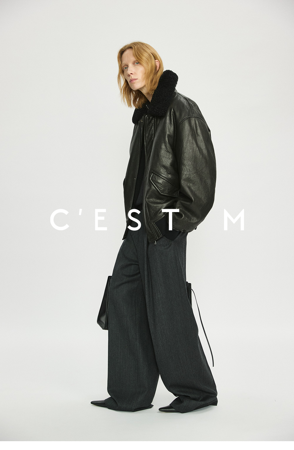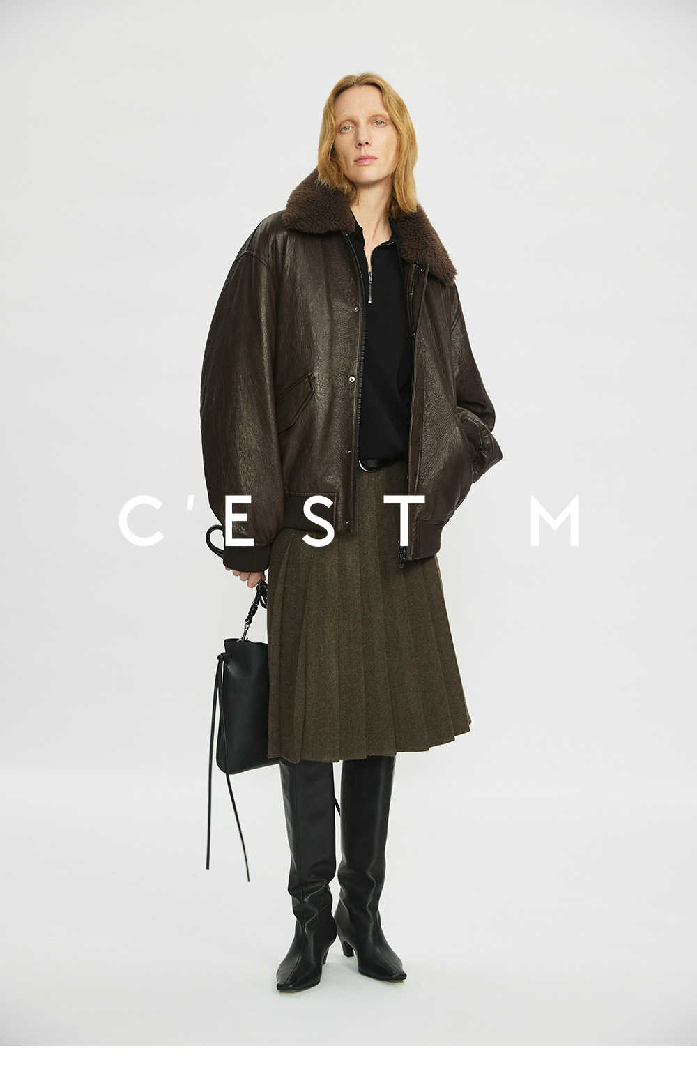 Cest M|Imported Ys*L Yb Sheepskin Detachable Fur Collar Hungarian White Goose down Leather Jacket