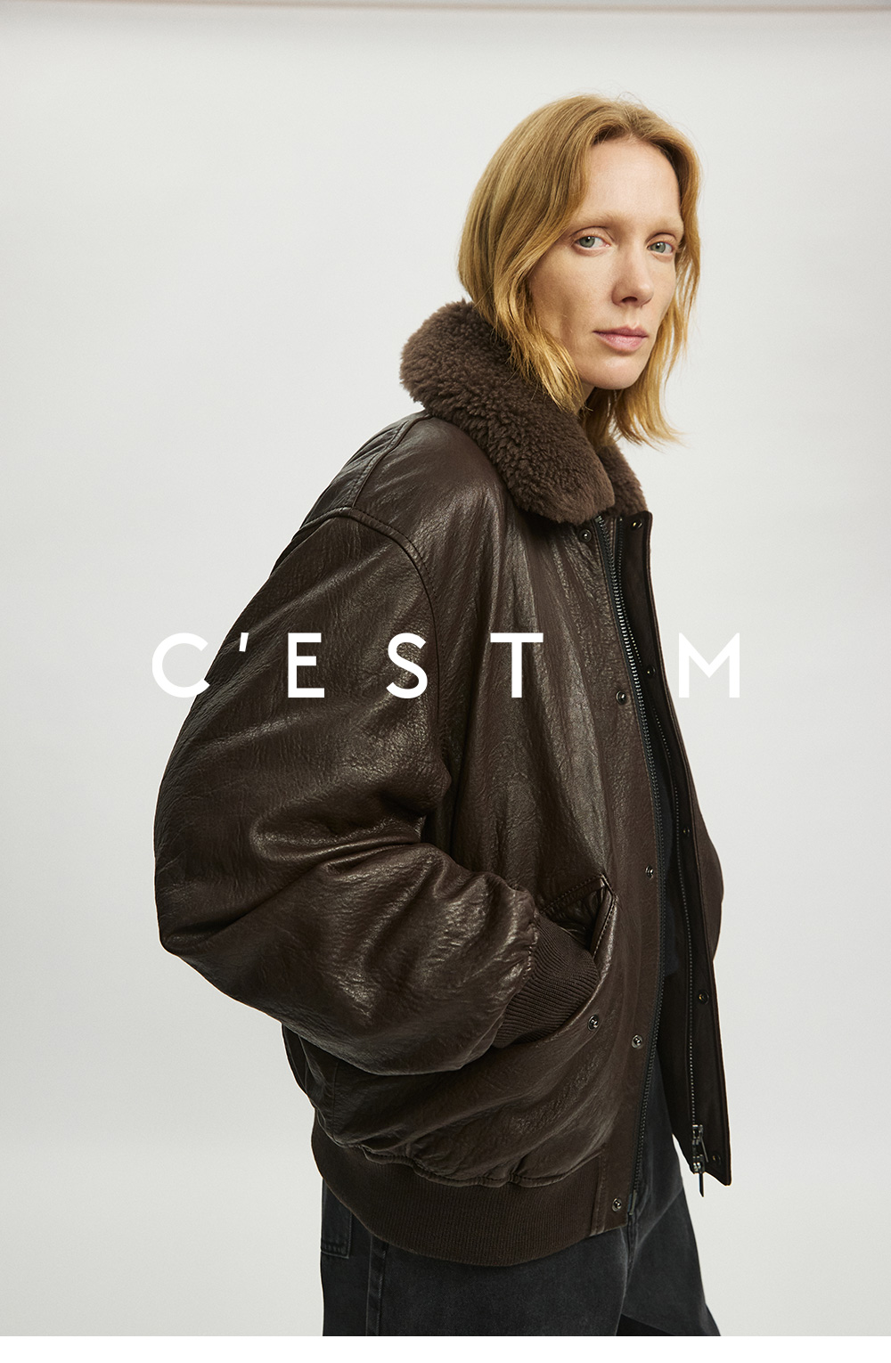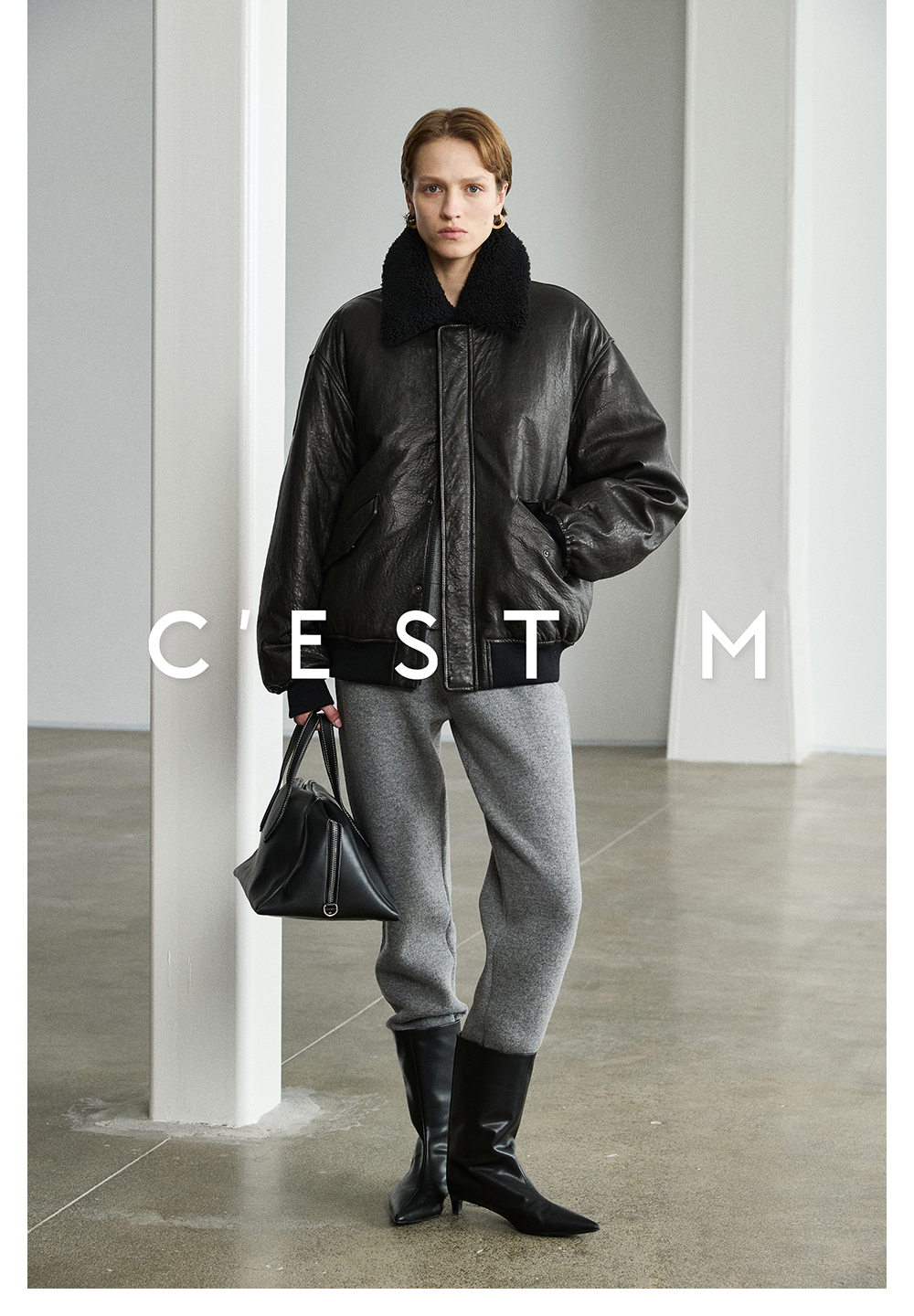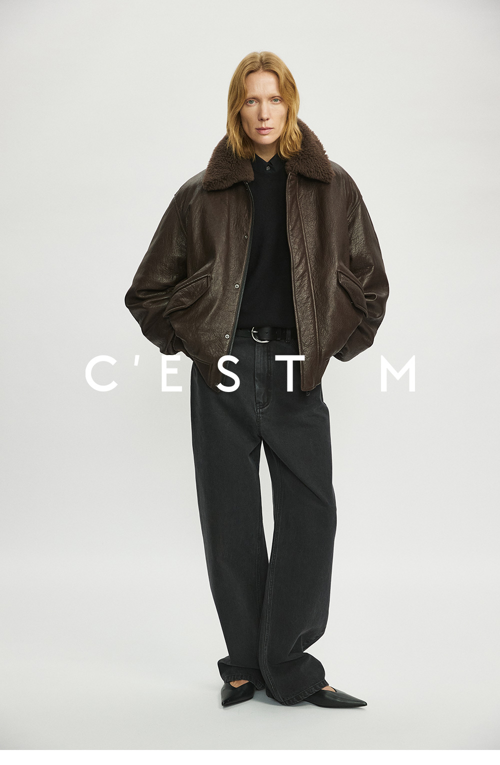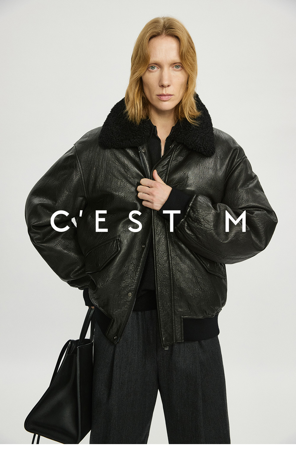 Cest M|Imported Ys*L Yb Sheepskin Detachable Fur Collar Hungarian White Goose down Leather Jacket