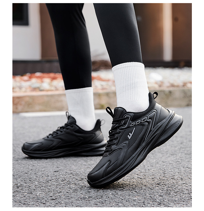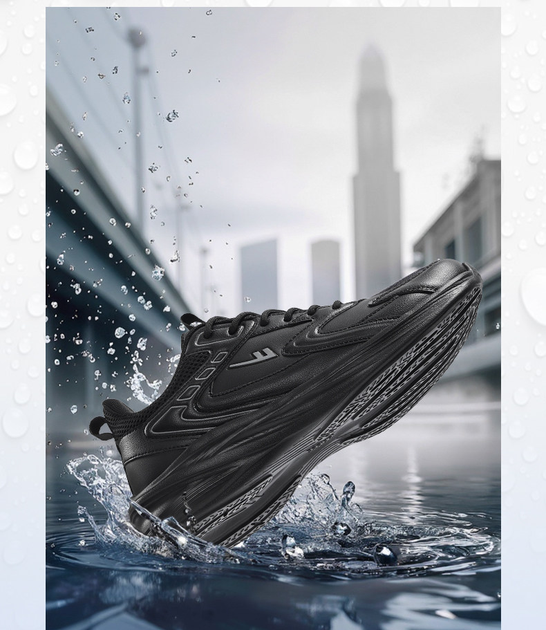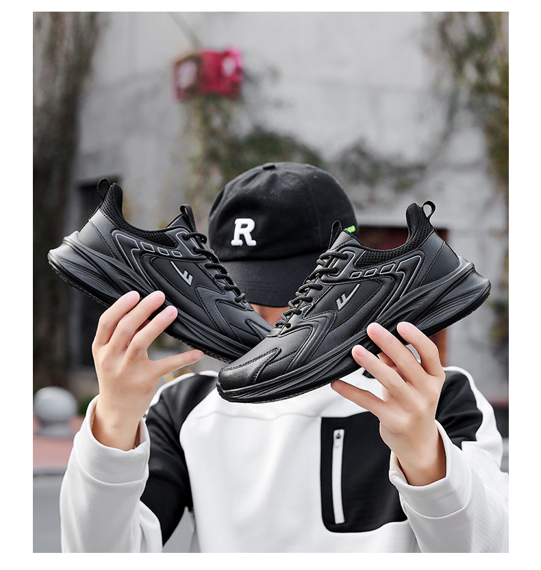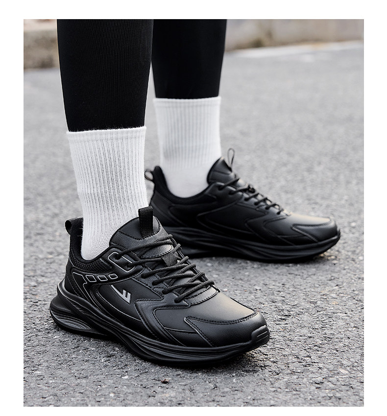 Pull-Back Sneakers Men's Shoes New Spring Waterproof Splash-Proof Black Shoes Men's Casual Soft-Soled Shock-Absorbing Leather Running Shoes