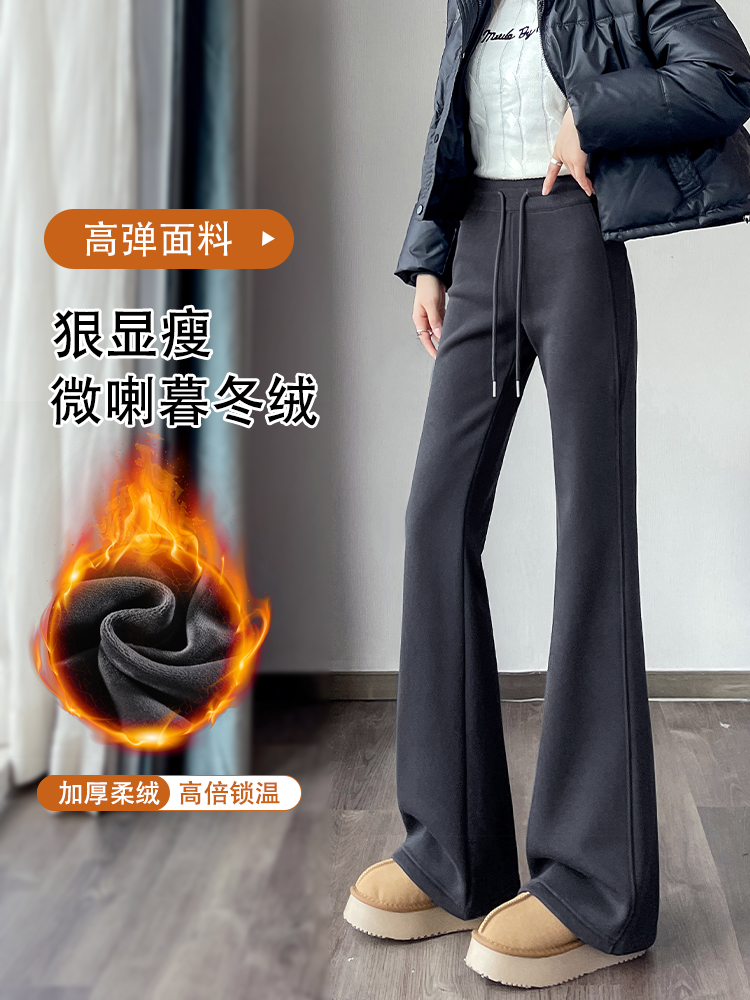 Black Flared Pants for Women, Autumn and Winter, Fleece-Lined, High-Waisted, Slimming, Tall, Flared Bootcut Pants, Casual Sports Sweatpants