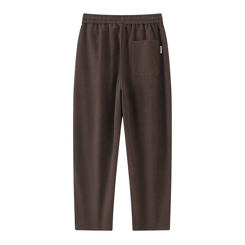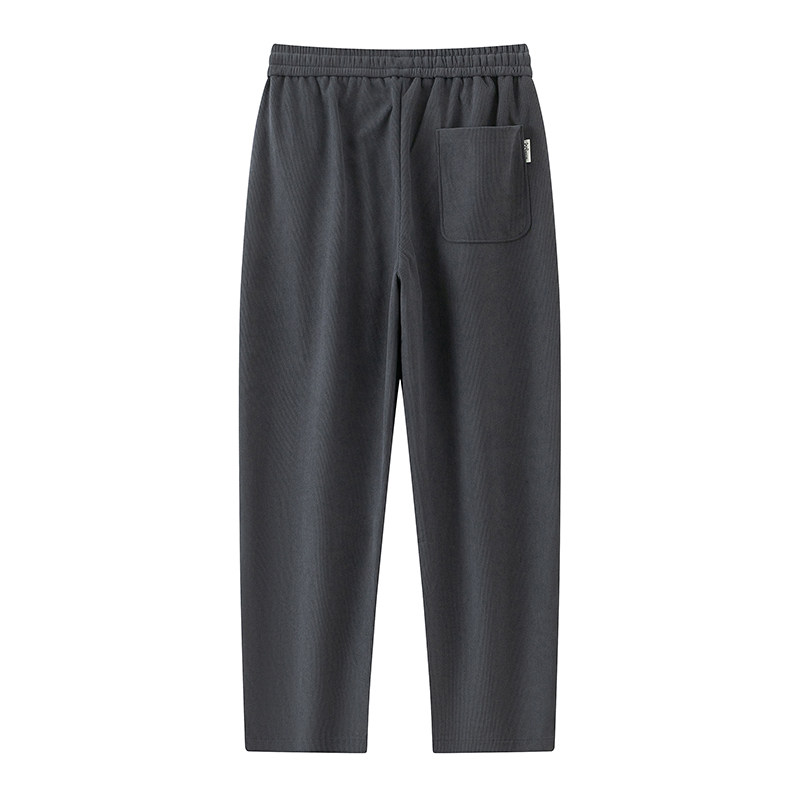 Men's Wheat Ear Pattern Pants for Autumn and Winter, Fleece-Lined, Thickened, Loose Straight-Leg Wide-Leg Sports Casual Sweatpants, Corduroy Long Pants