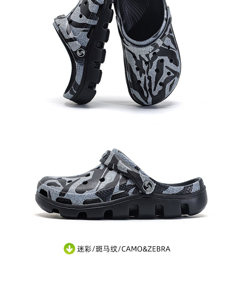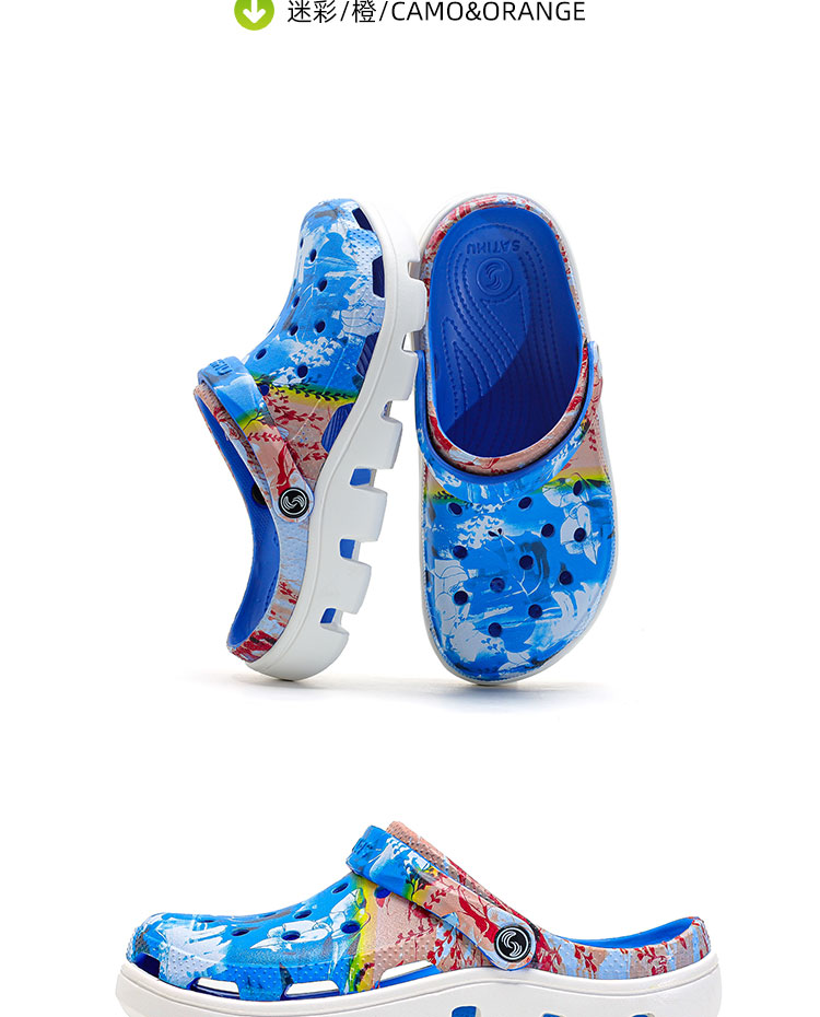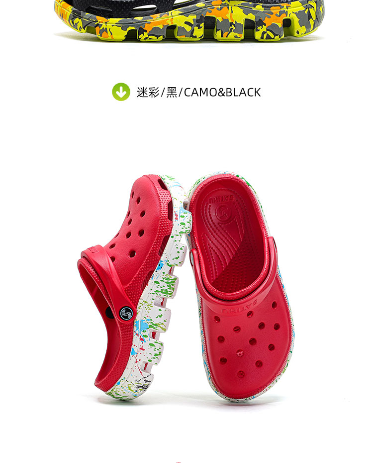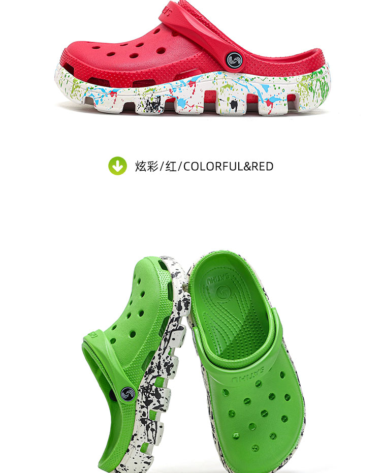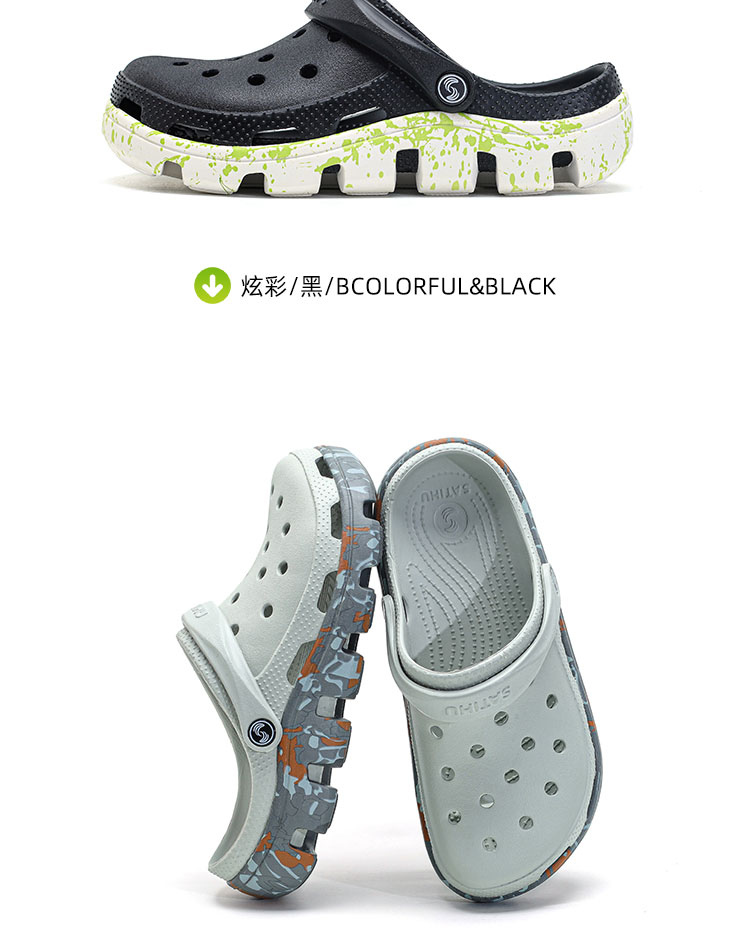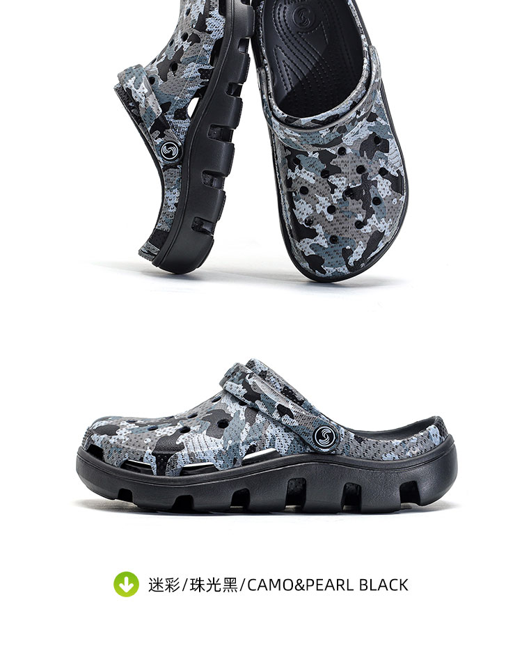 Outdoor Clogs with 3cm Thick Soles for Men and Women, Couple's Closed-Toe Sandals, Large Size, Breathable, Non-Slip Beach Shoes Cross