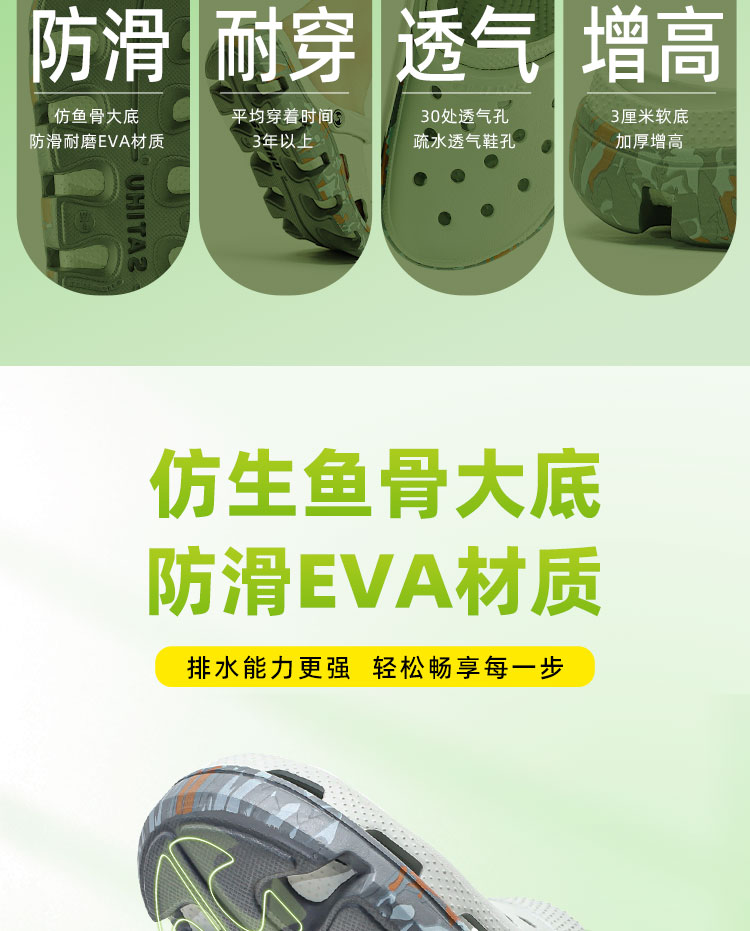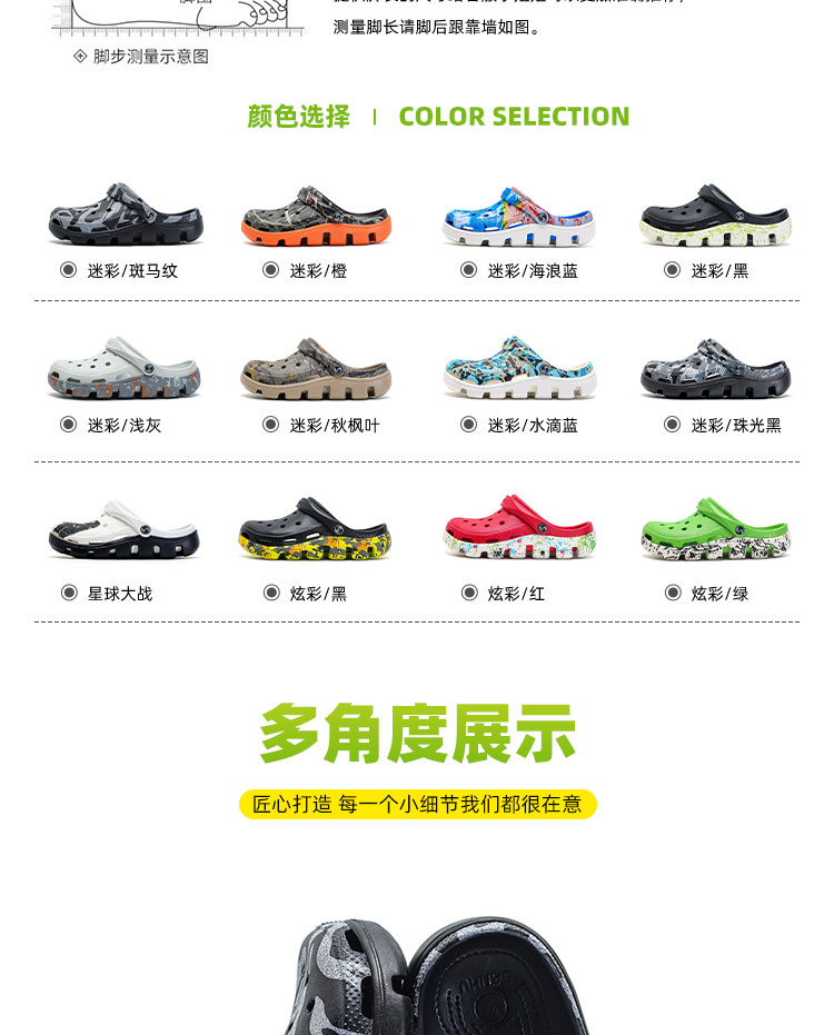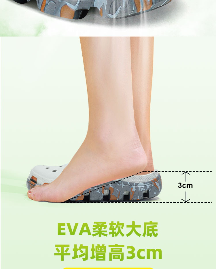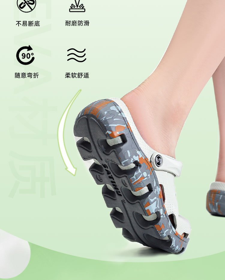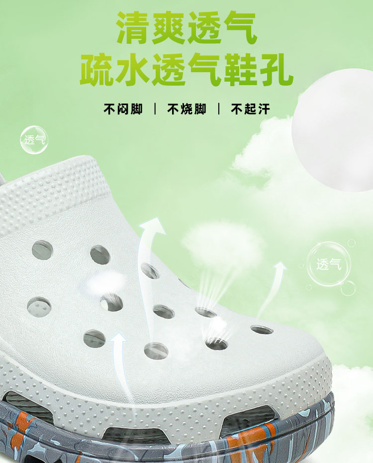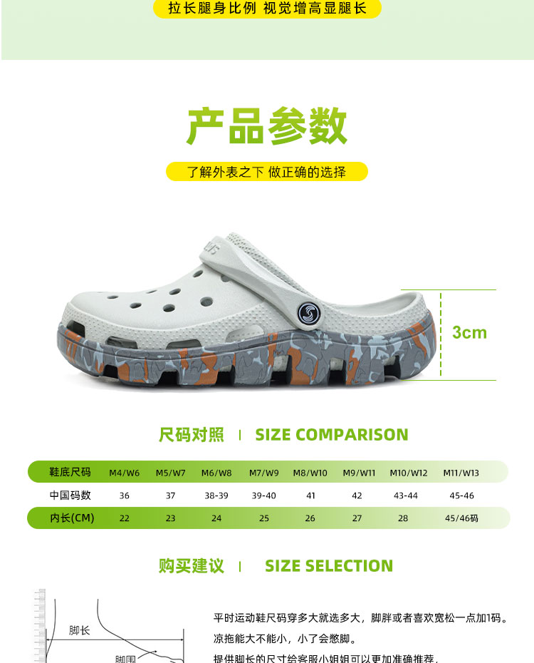 Outdoor Clogs with 3cm Thick Soles for Men and Women, Couple's Closed-Toe Sandals, Large Size, Breathable, Non-Slip Beach Shoes Cross