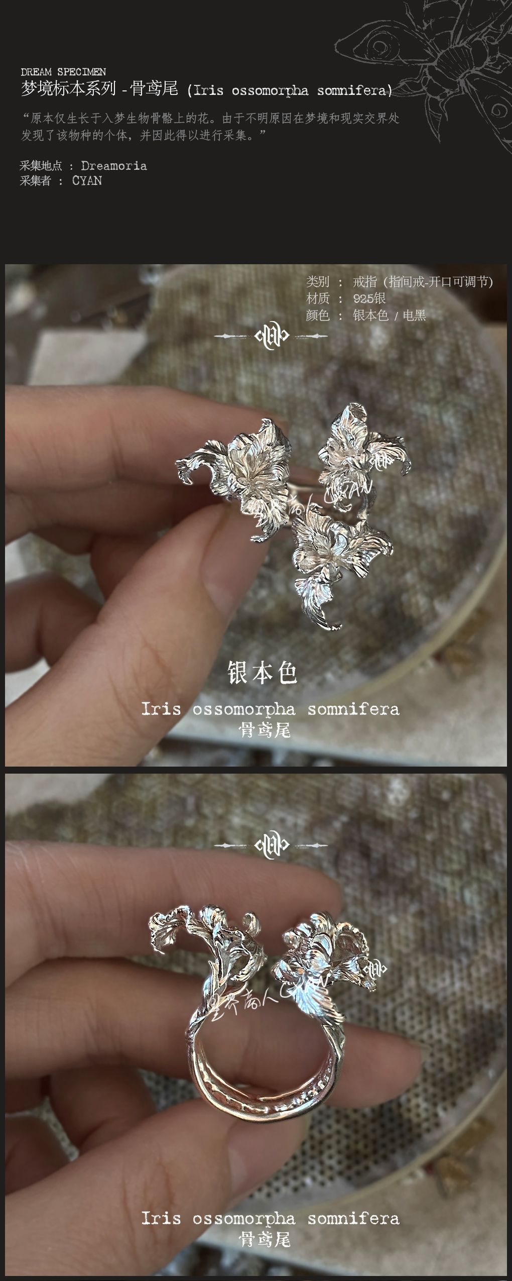 Star World Merchant Cyan-Dream Specimen-Bone Iris 925 Silver Ring Original Jewelry