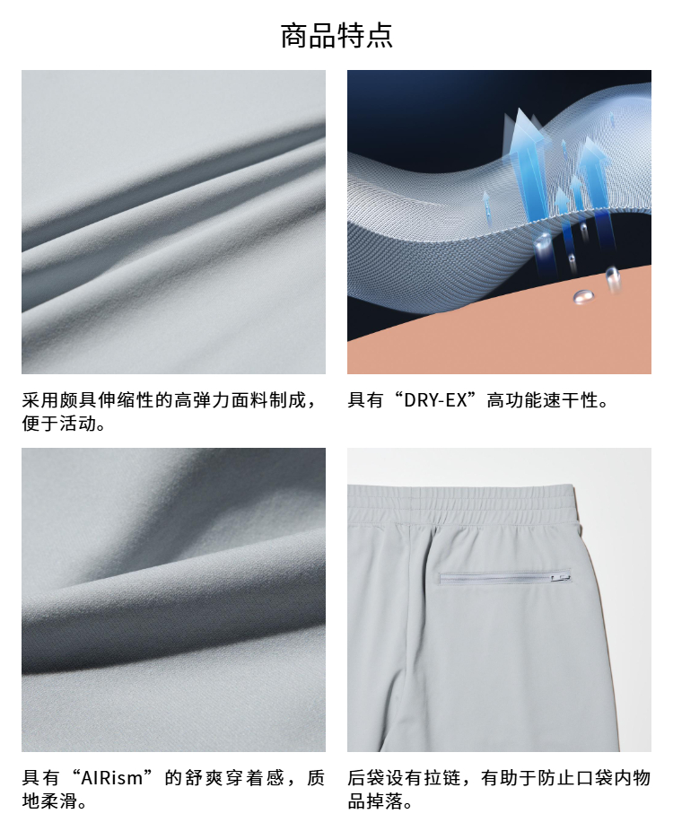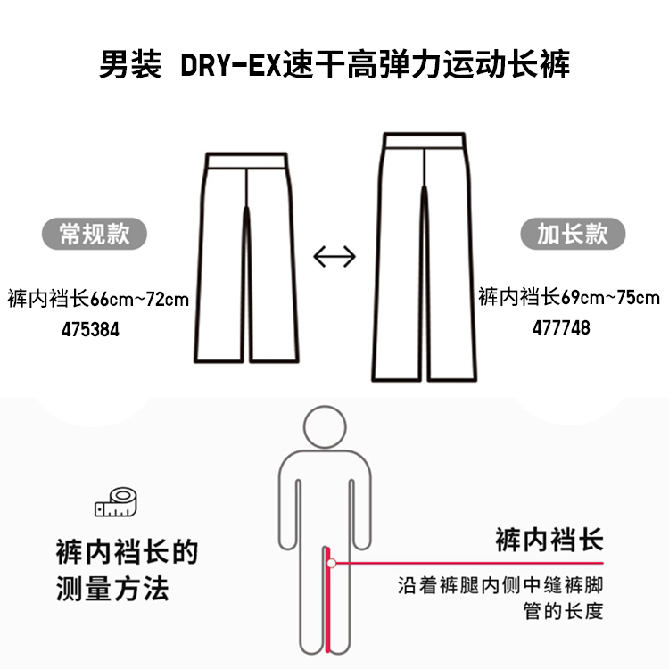Uniqlo Men's Dry-Ex Quick-Drying High-Elasticity Sports Pants with Jogger Cuffs, Extended Length 69~75cm477748