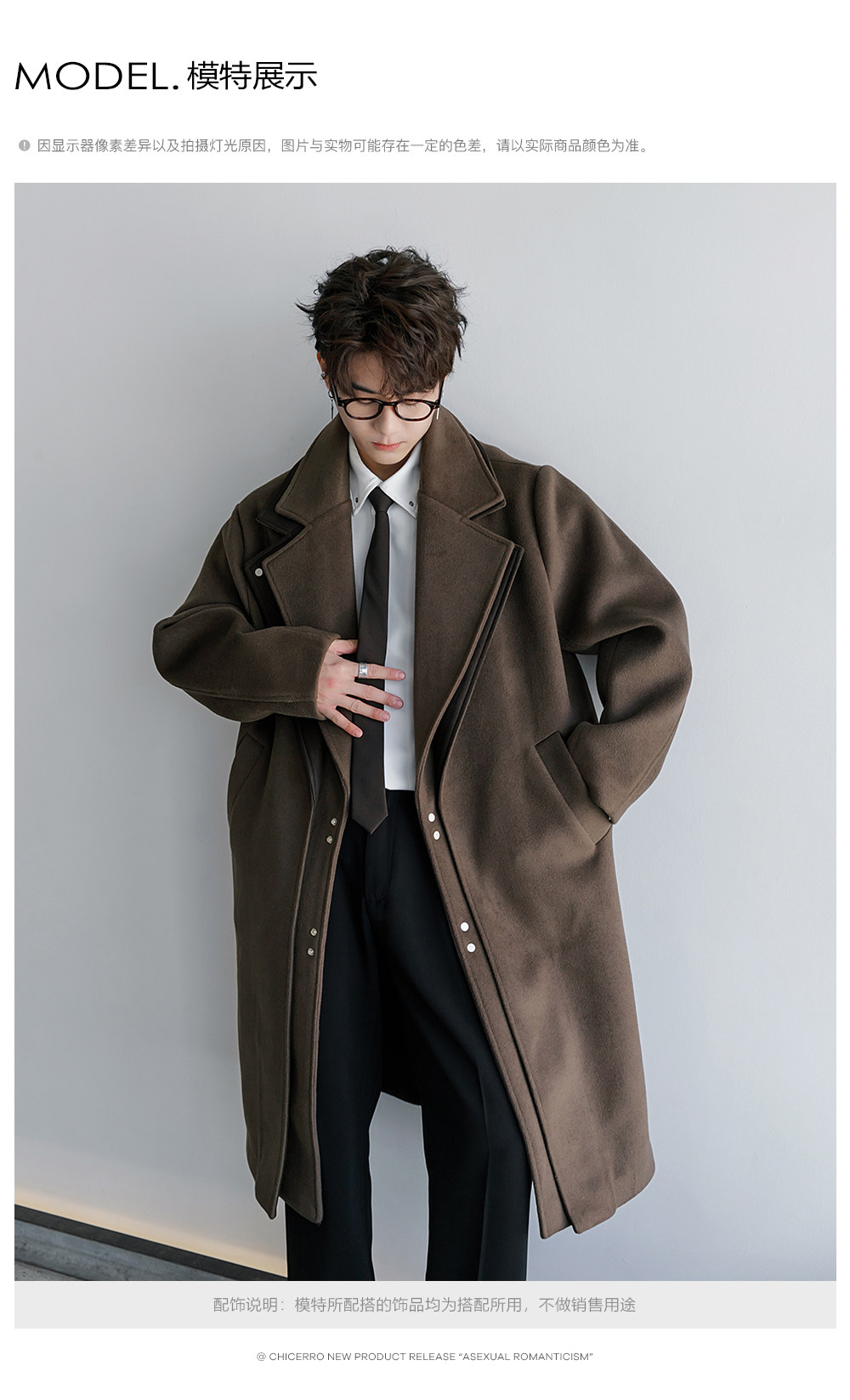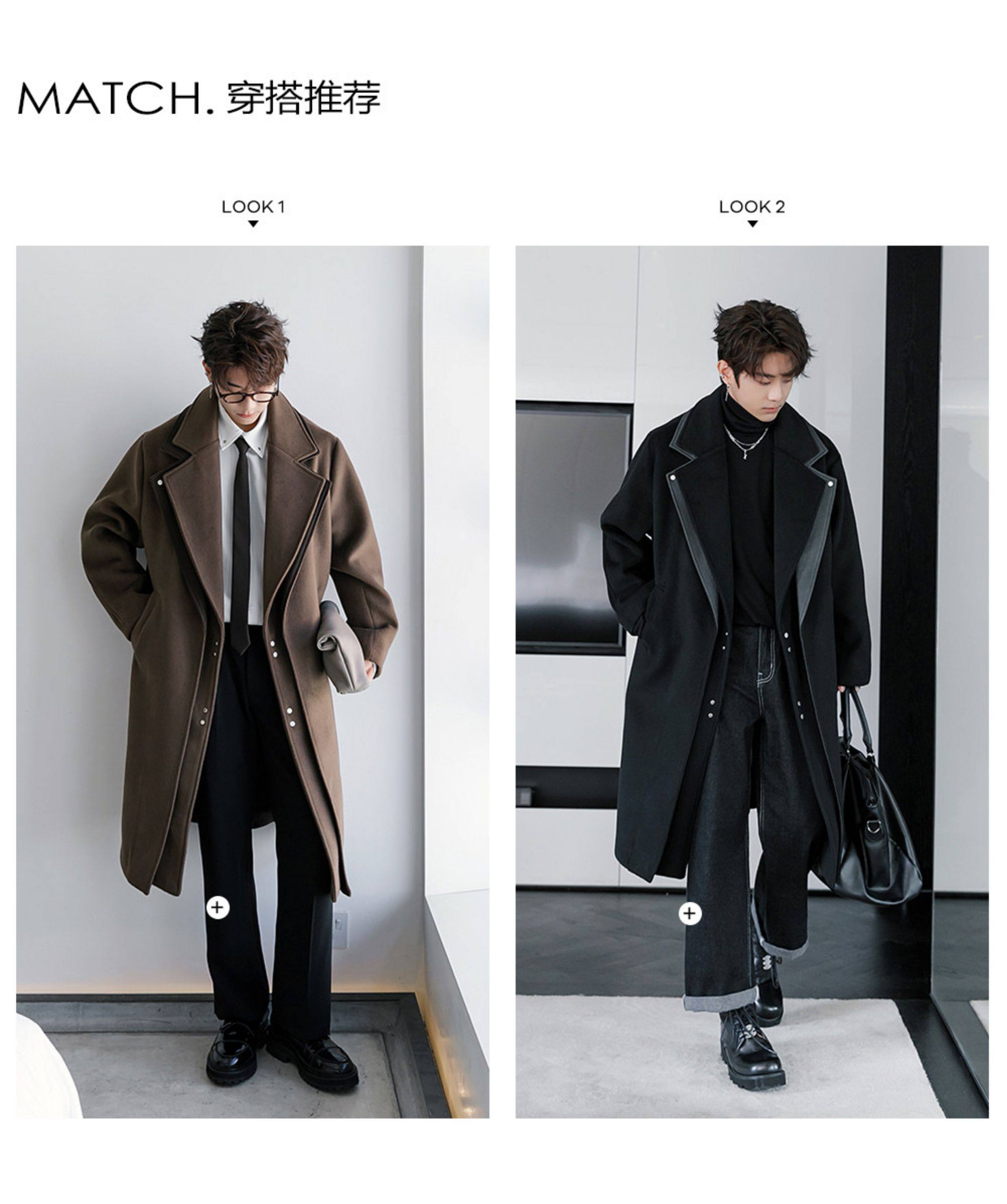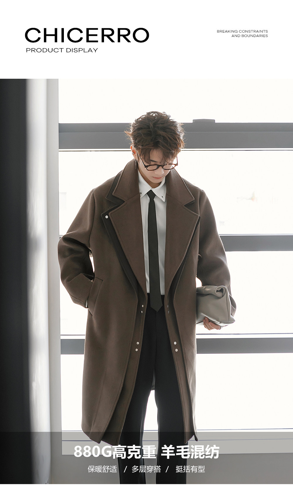 Chicerro Sicilian Men's Fashion Brand High-End Patchwork Faux Two-Piece Mid-Length Woolen Coat Winter