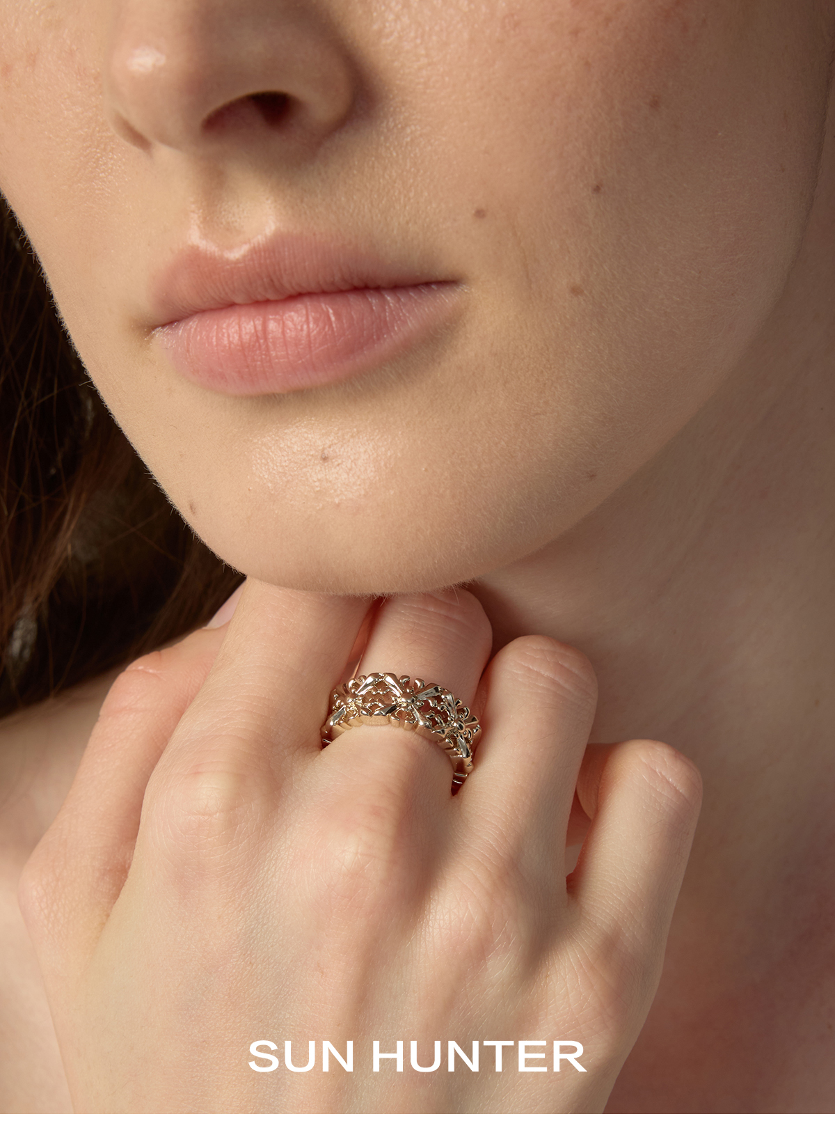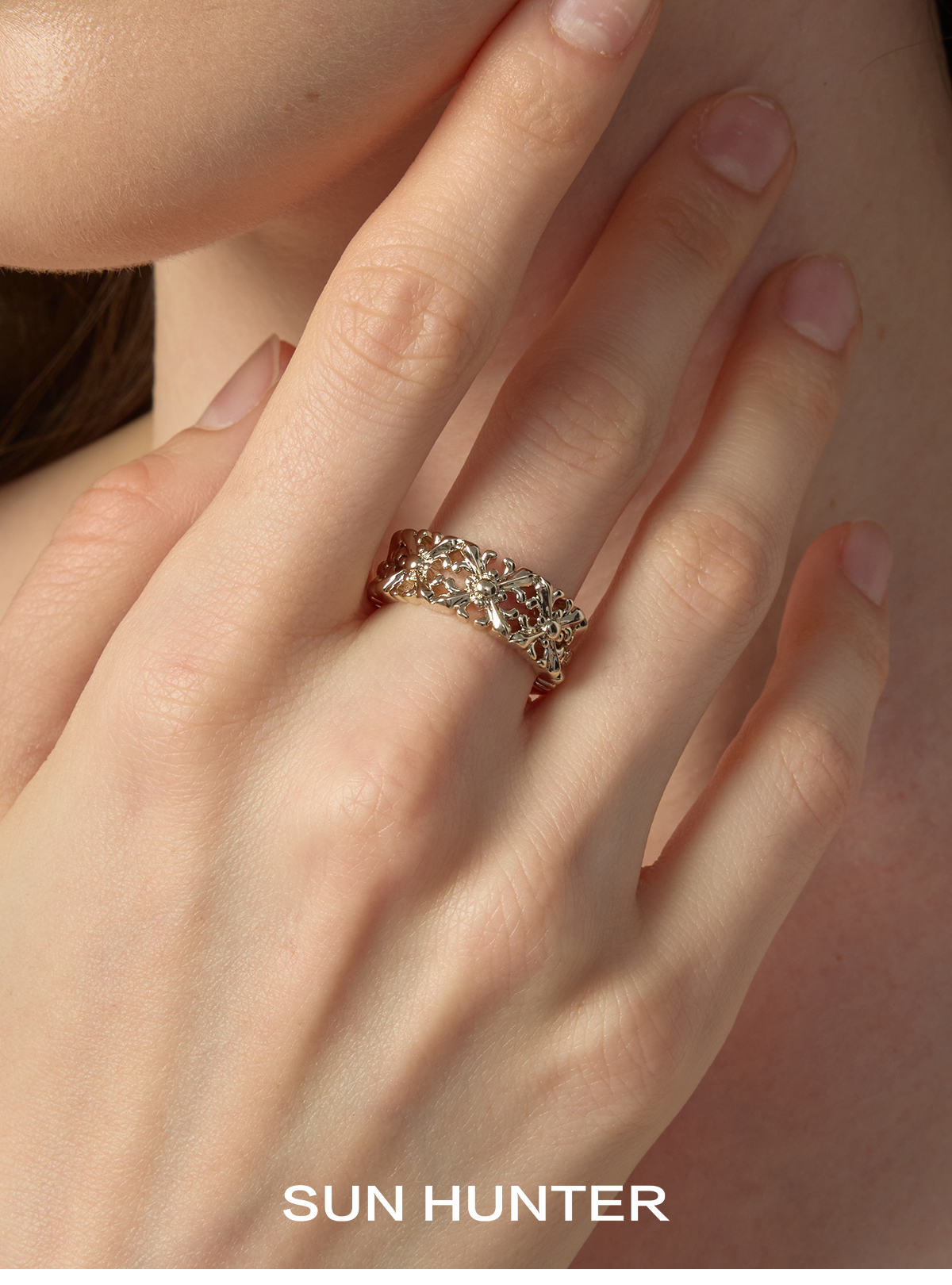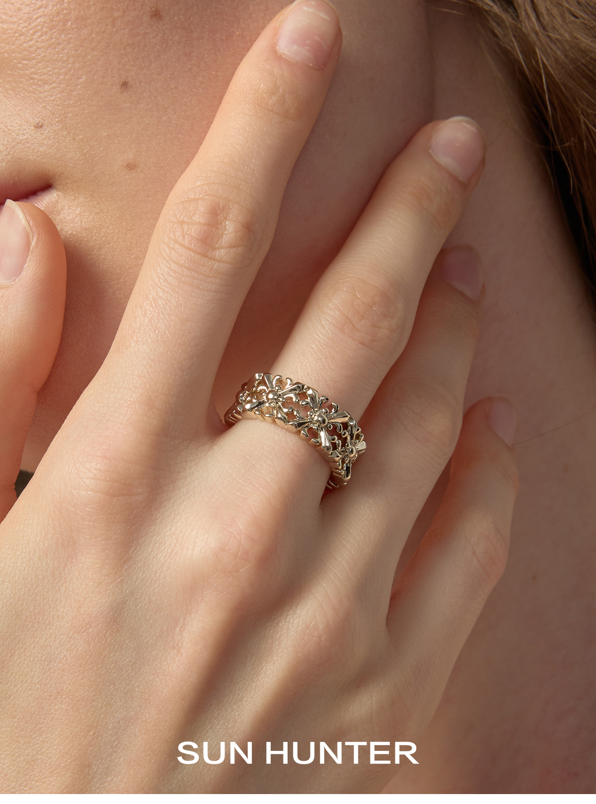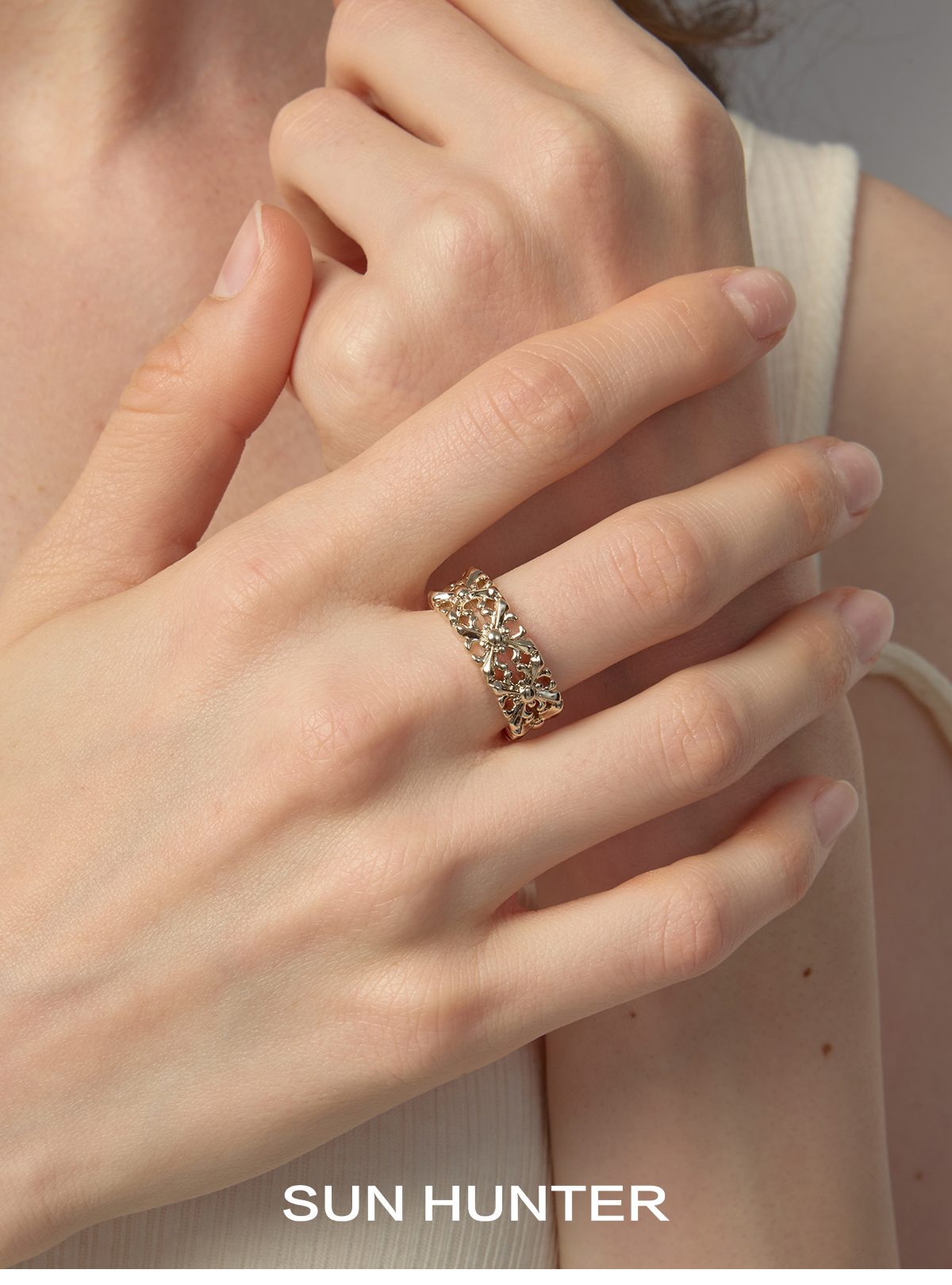 Sun Hunter Original Iris Flower Full-Circle Ring, Open Vintage Light Luxury Melard Jewelry, Niche for Women