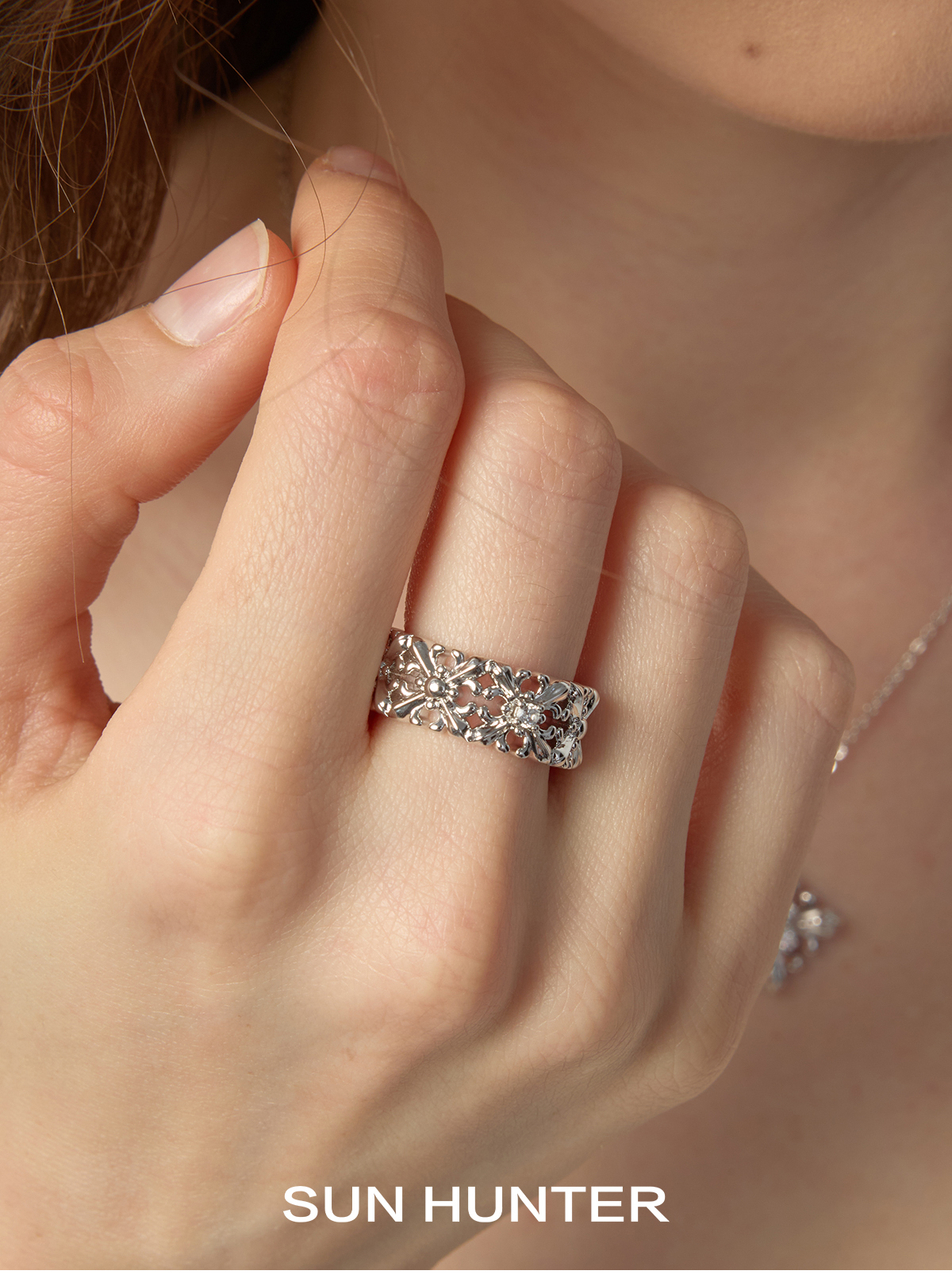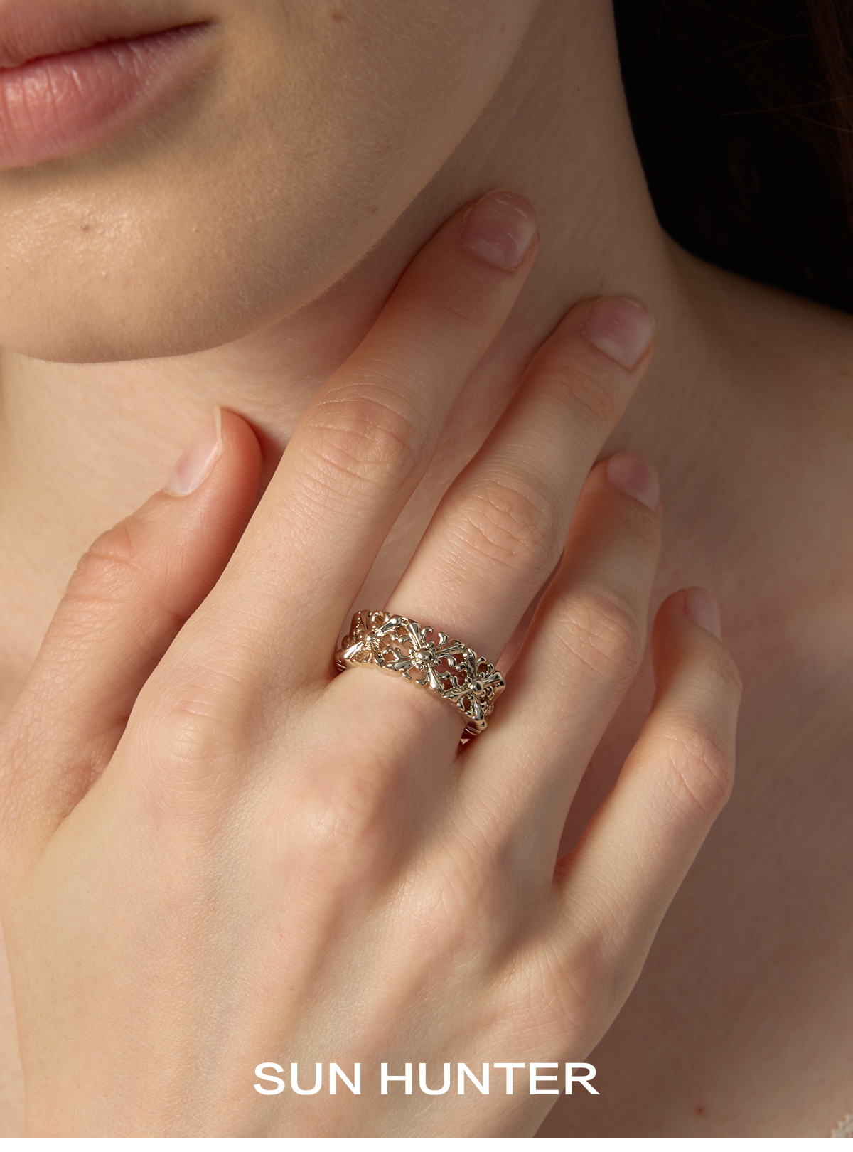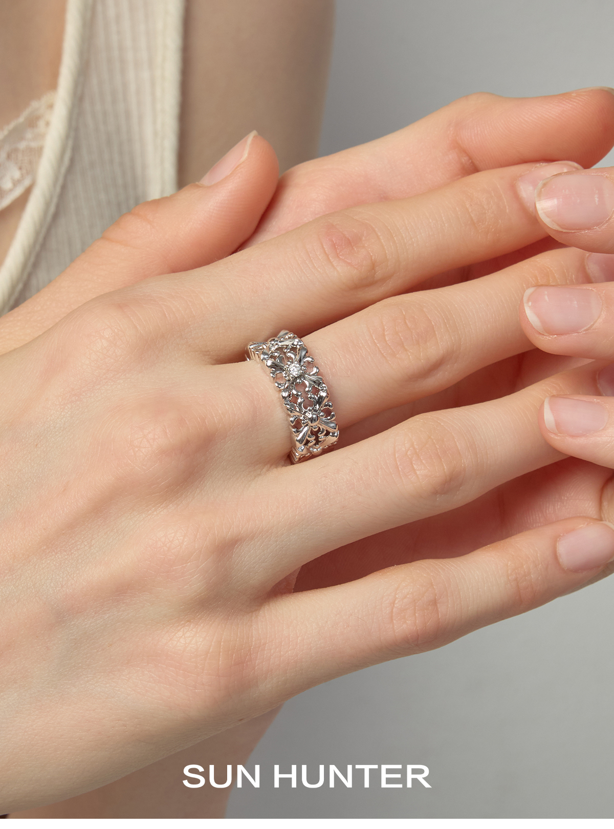 Sun Hunter Original Iris Flower Full-Circle Ring, Open Vintage Light Luxury Melard Jewelry, Niche for Women