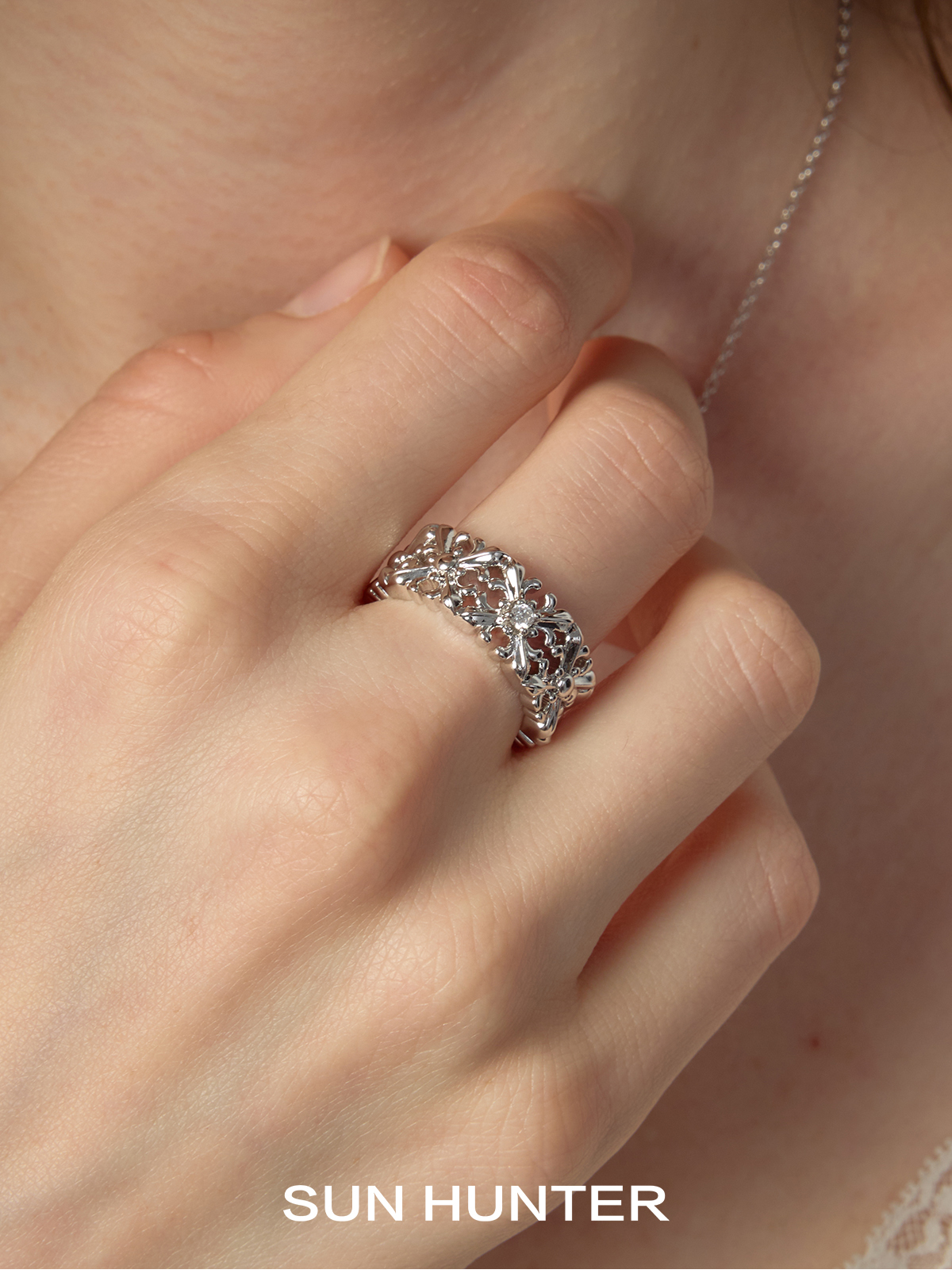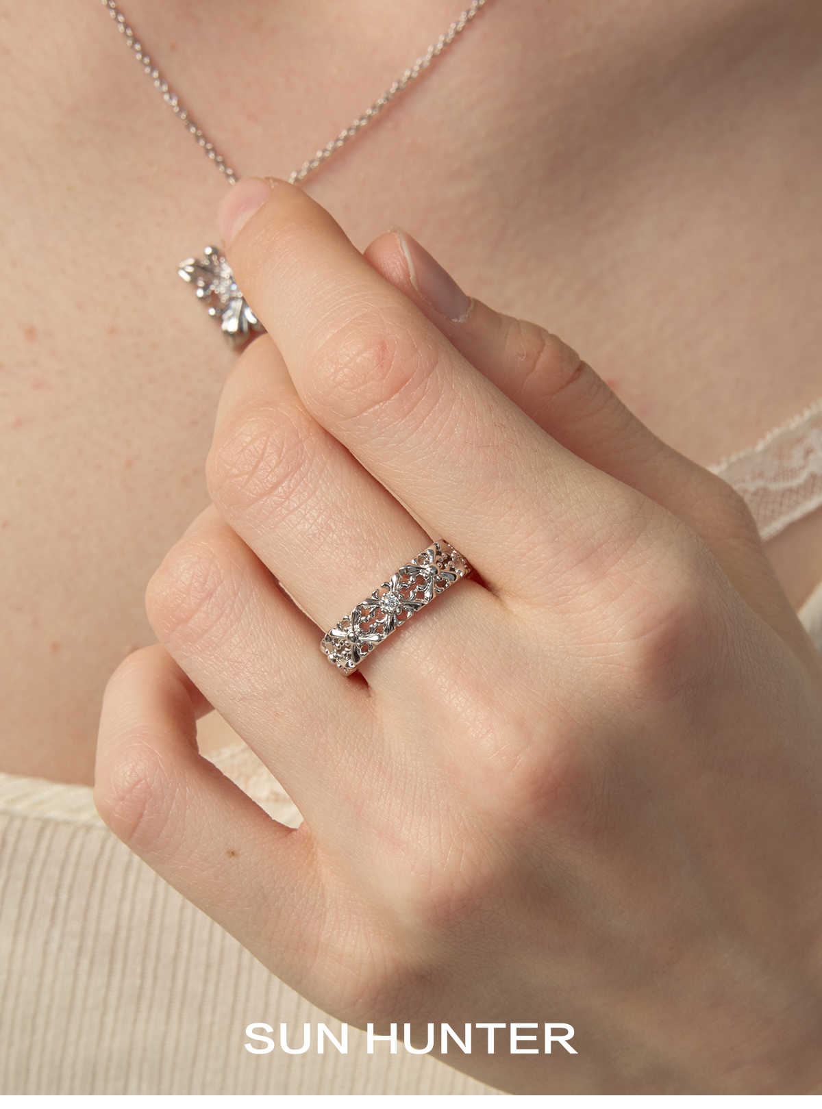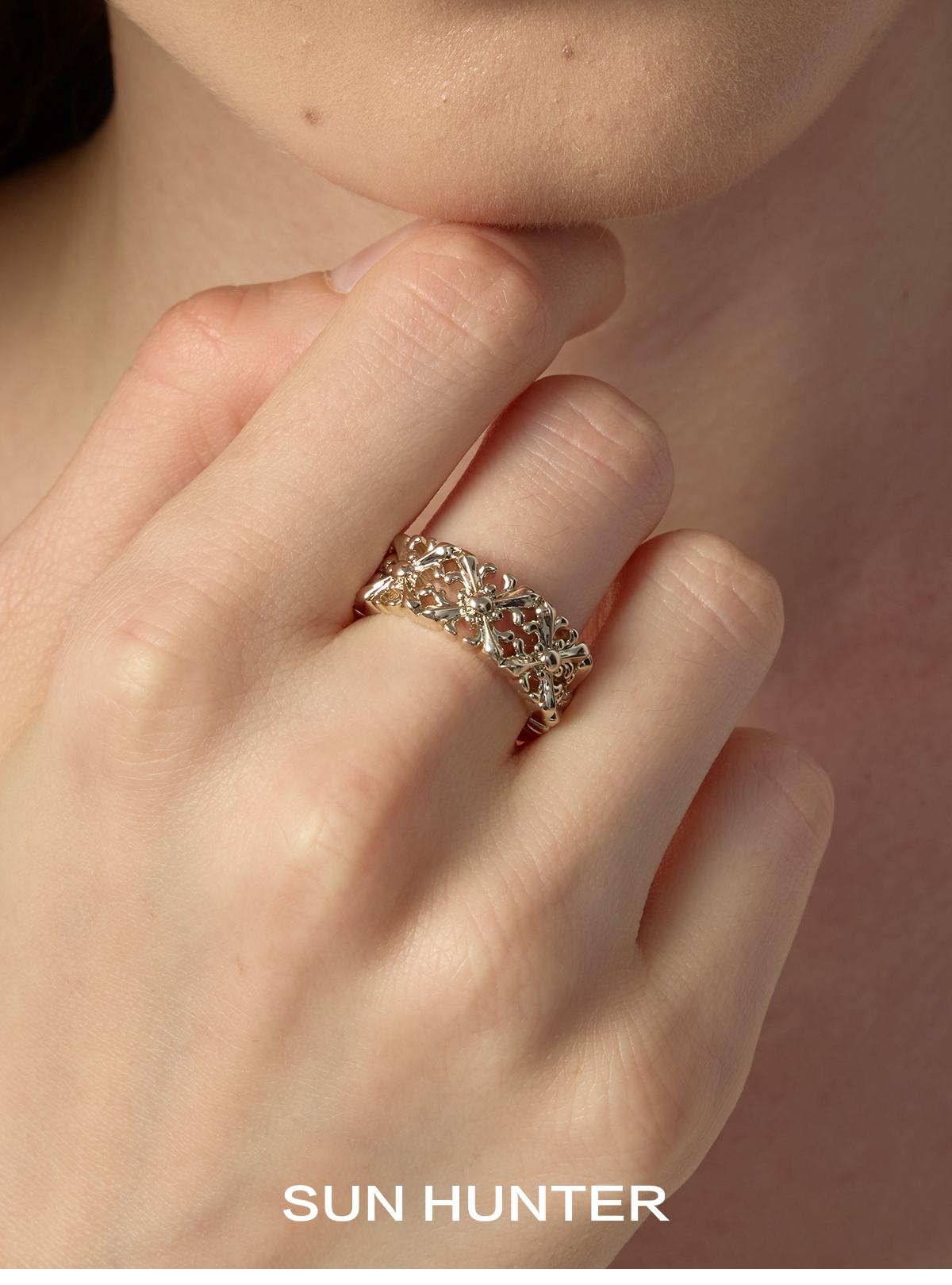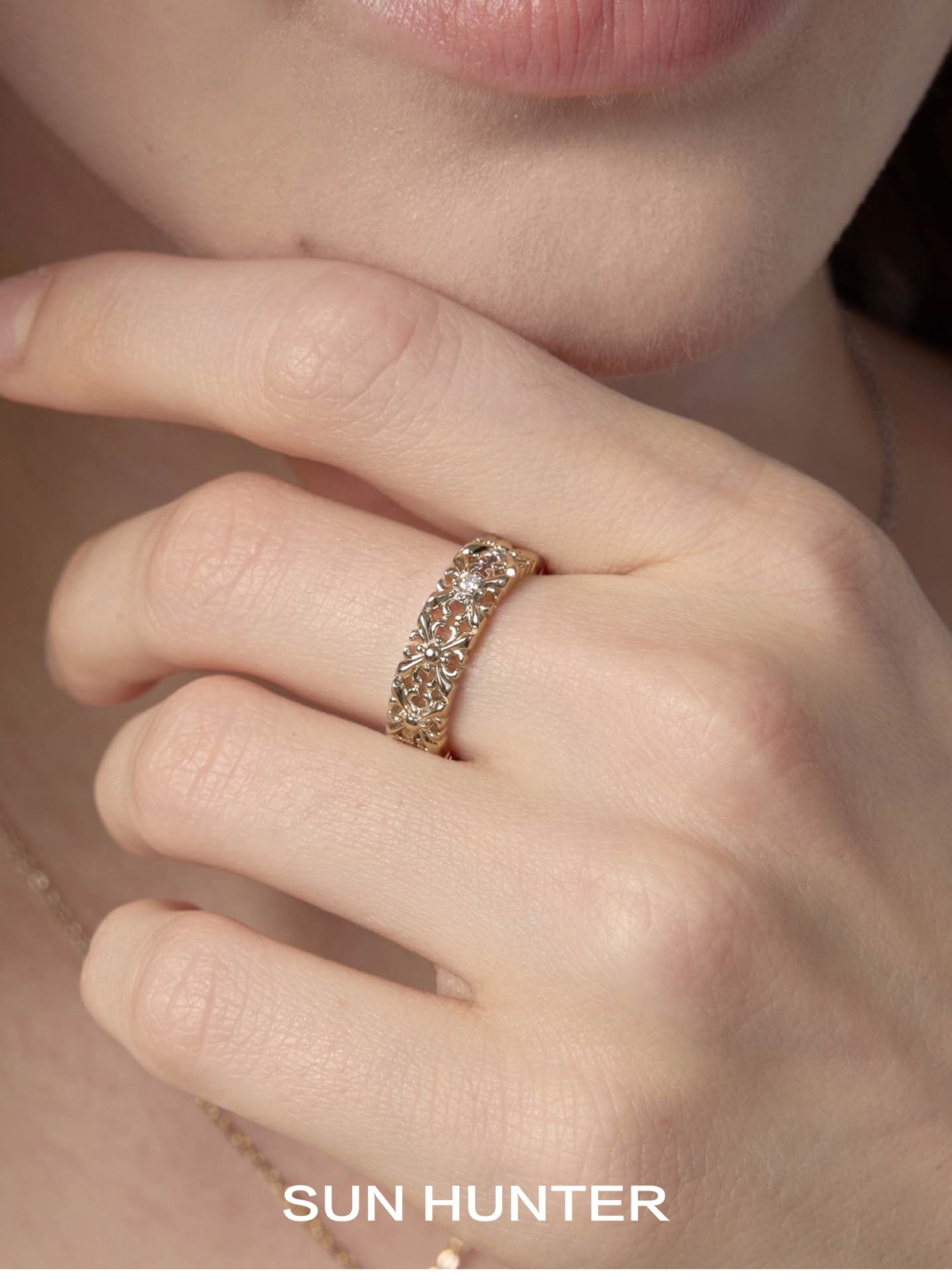 Sun Hunter Original Iris Flower Full-Circle Ring, Open Vintage Light Luxury Melard Jewelry, Niche for Women