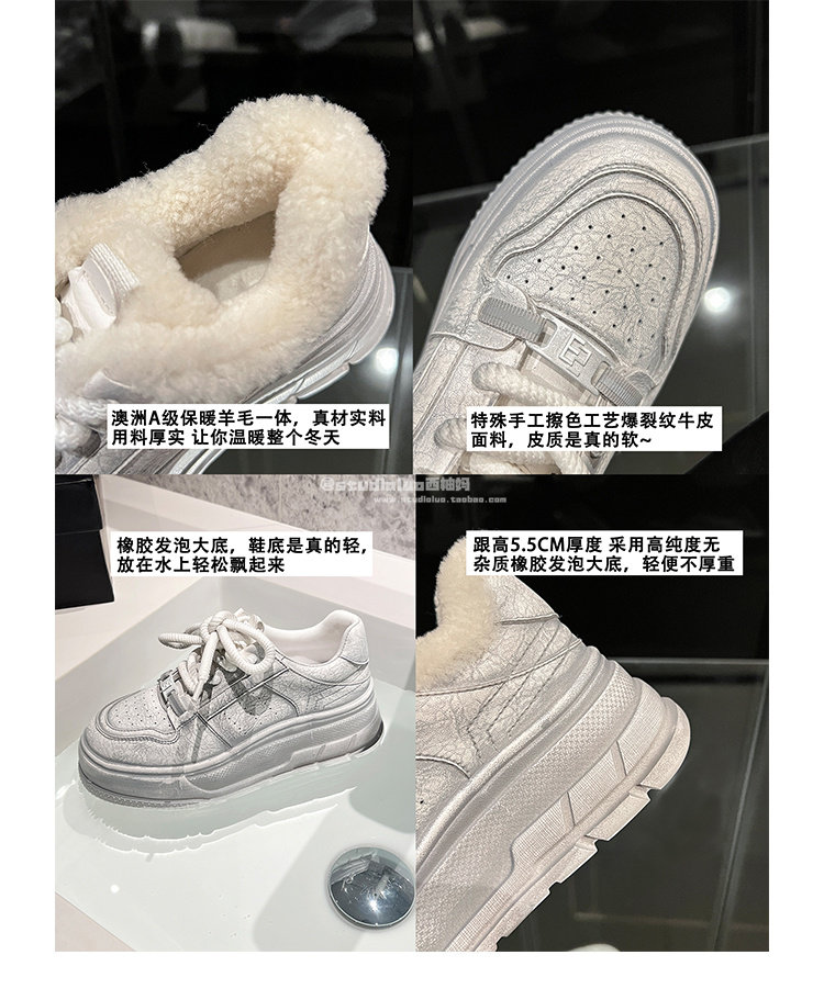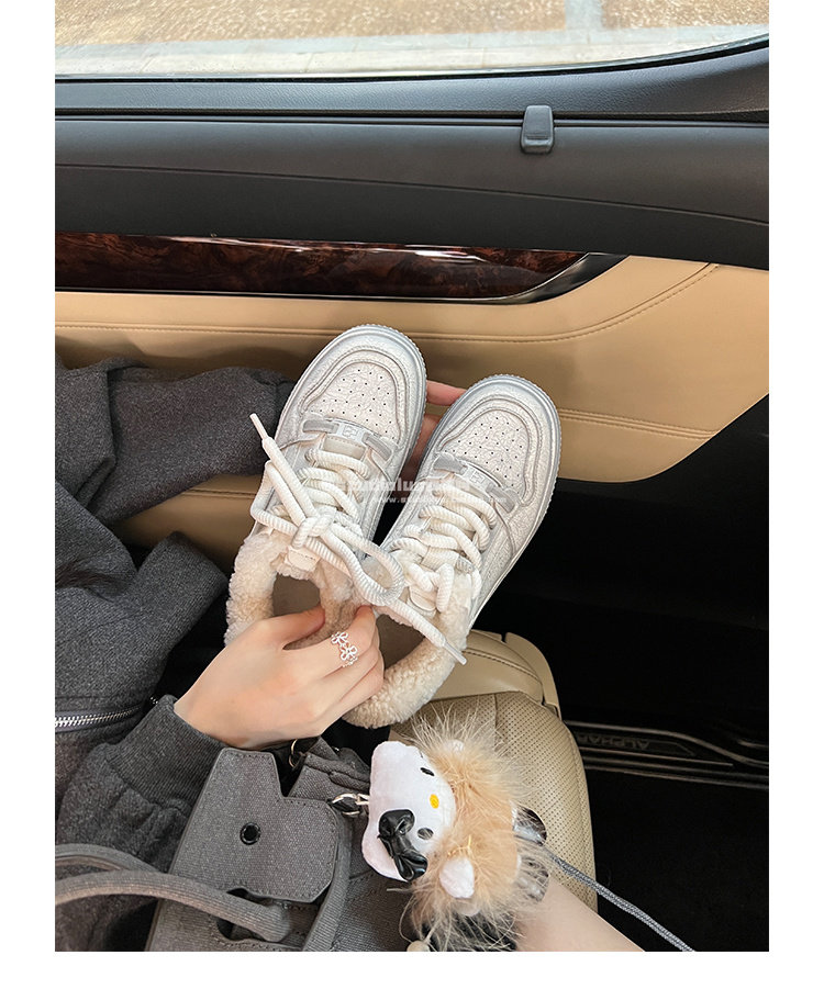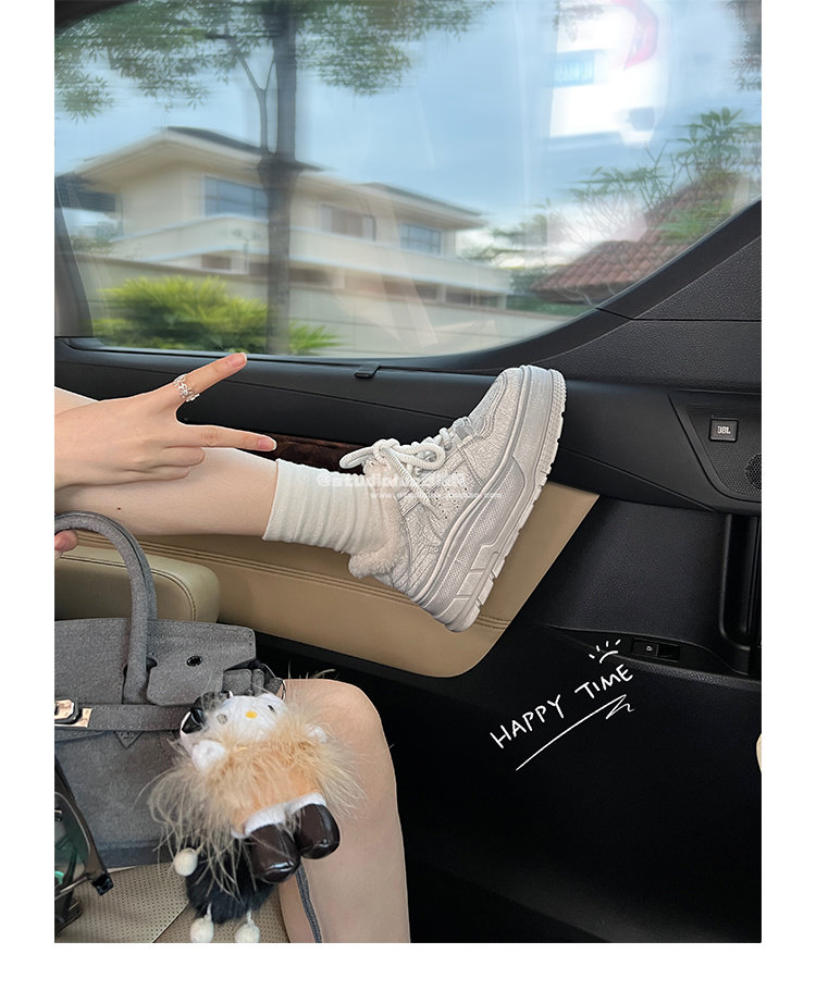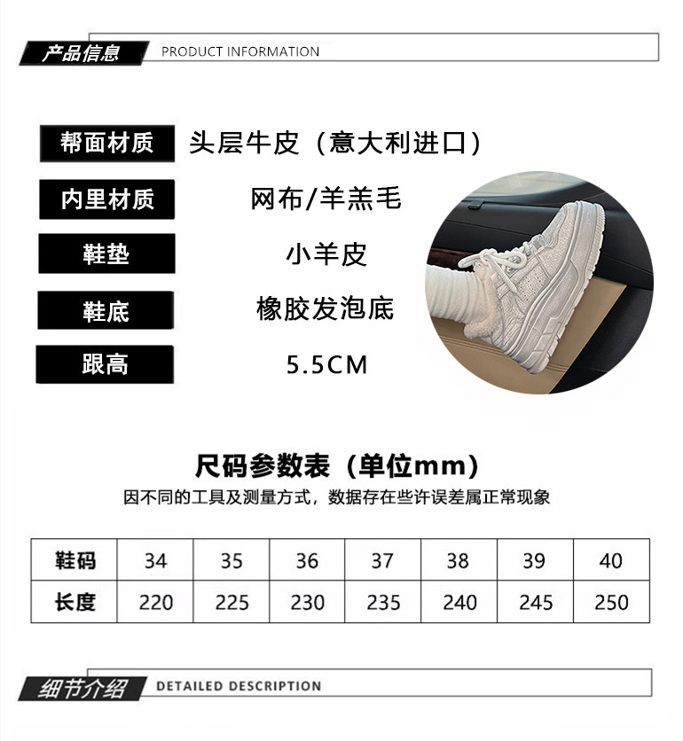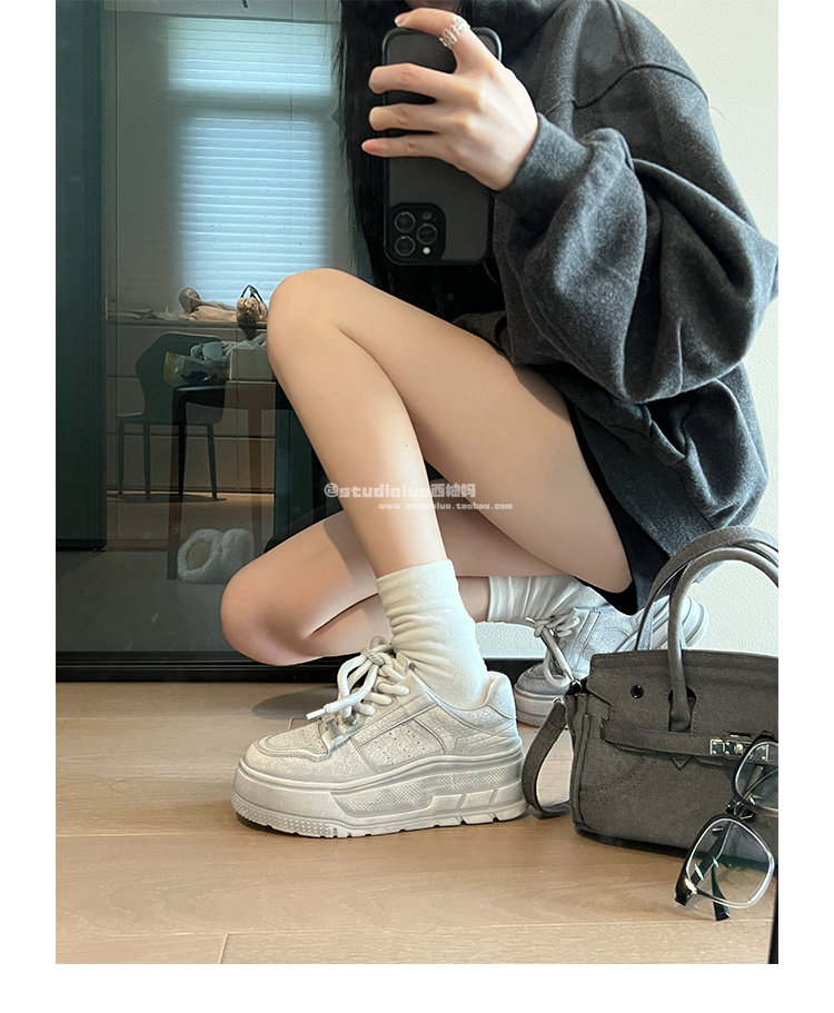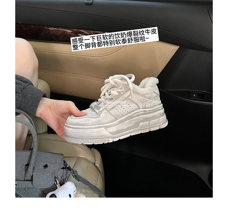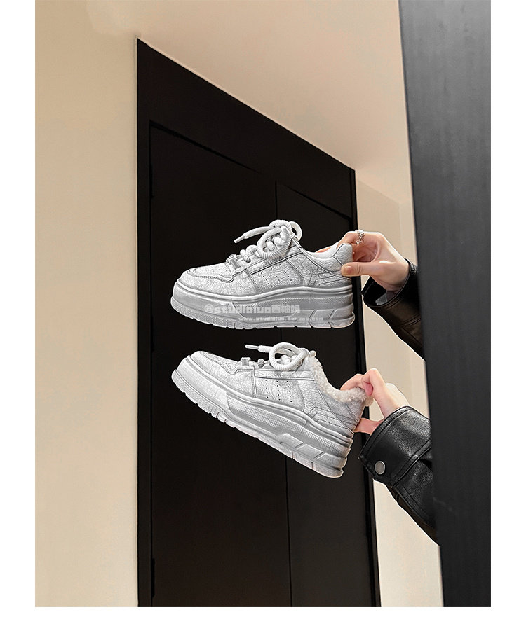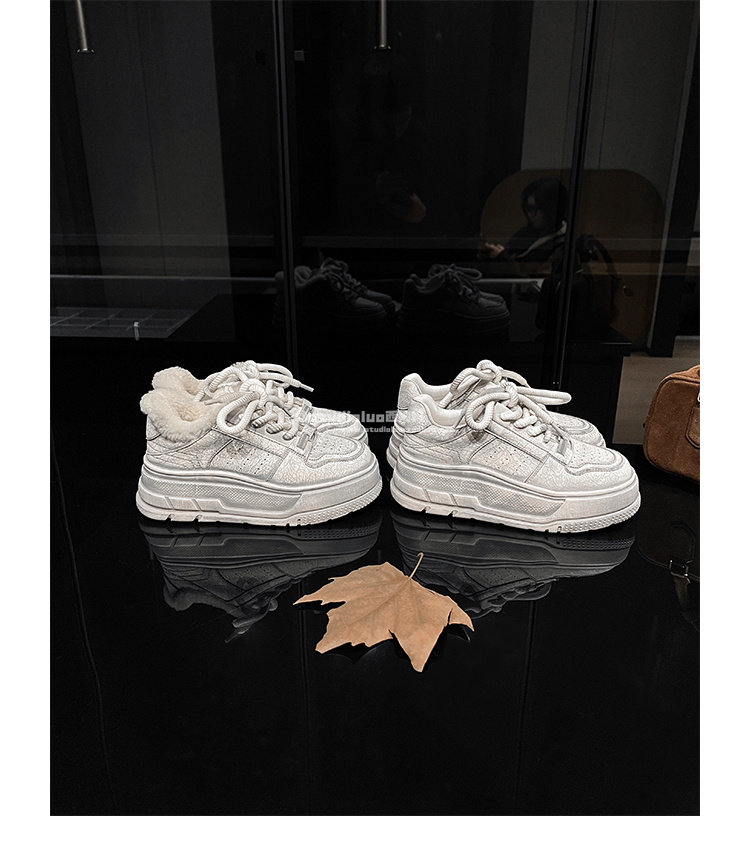 Hong Kong Genuine Leather Wool 2025 Spring and Autumn Fleece-Lined Thick-Soled Versatile Fashion Distressed Retro White Sneakers Casual Skate Shoes