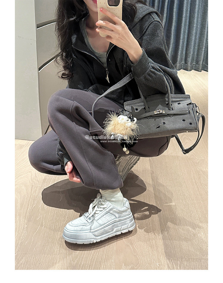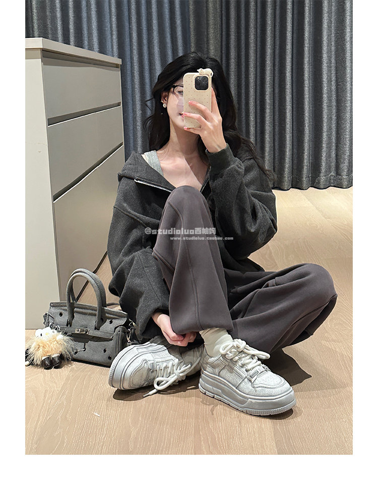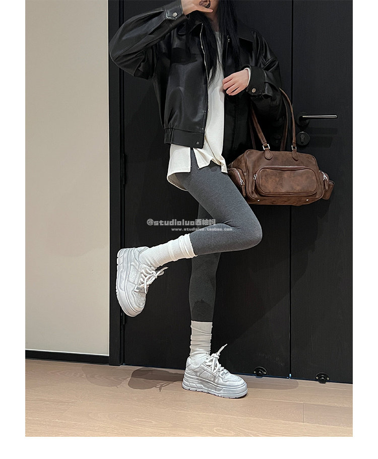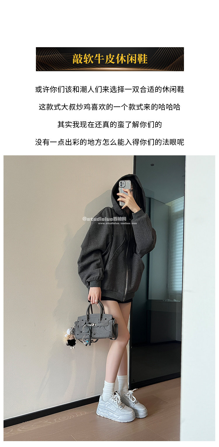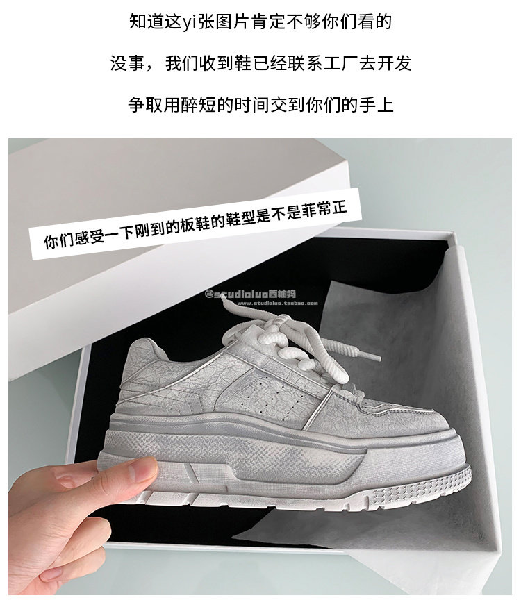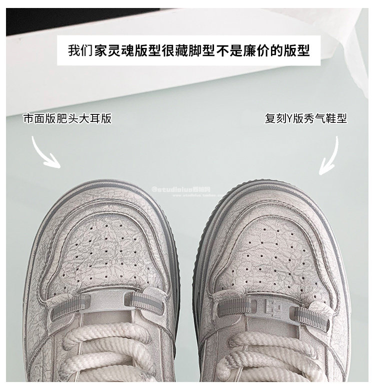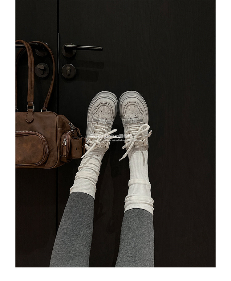 Hong Kong Genuine Leather Wool 2025 Spring and Autumn Fleece-Lined Thick-Soled Versatile Fashion Distressed Retro White Sneakers Casual Skate Shoes