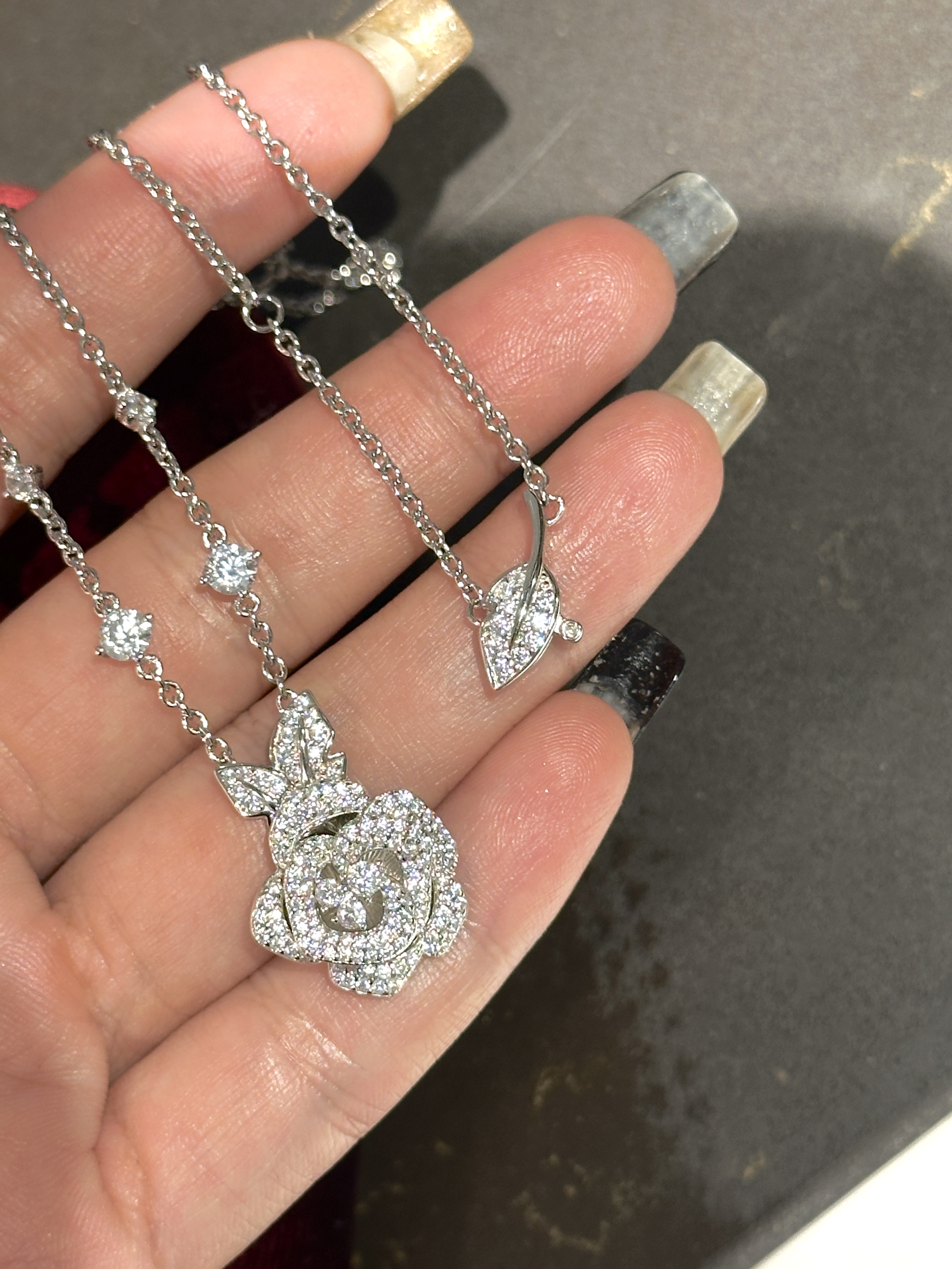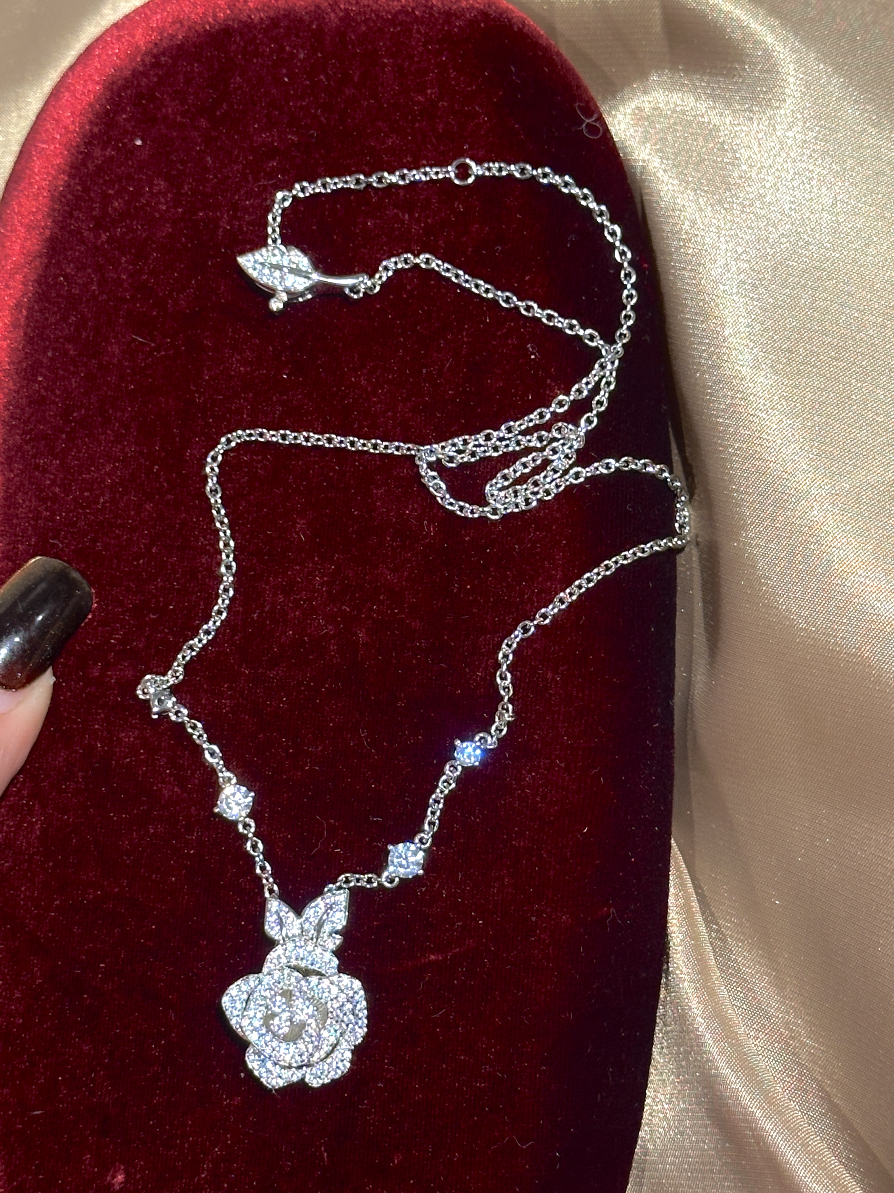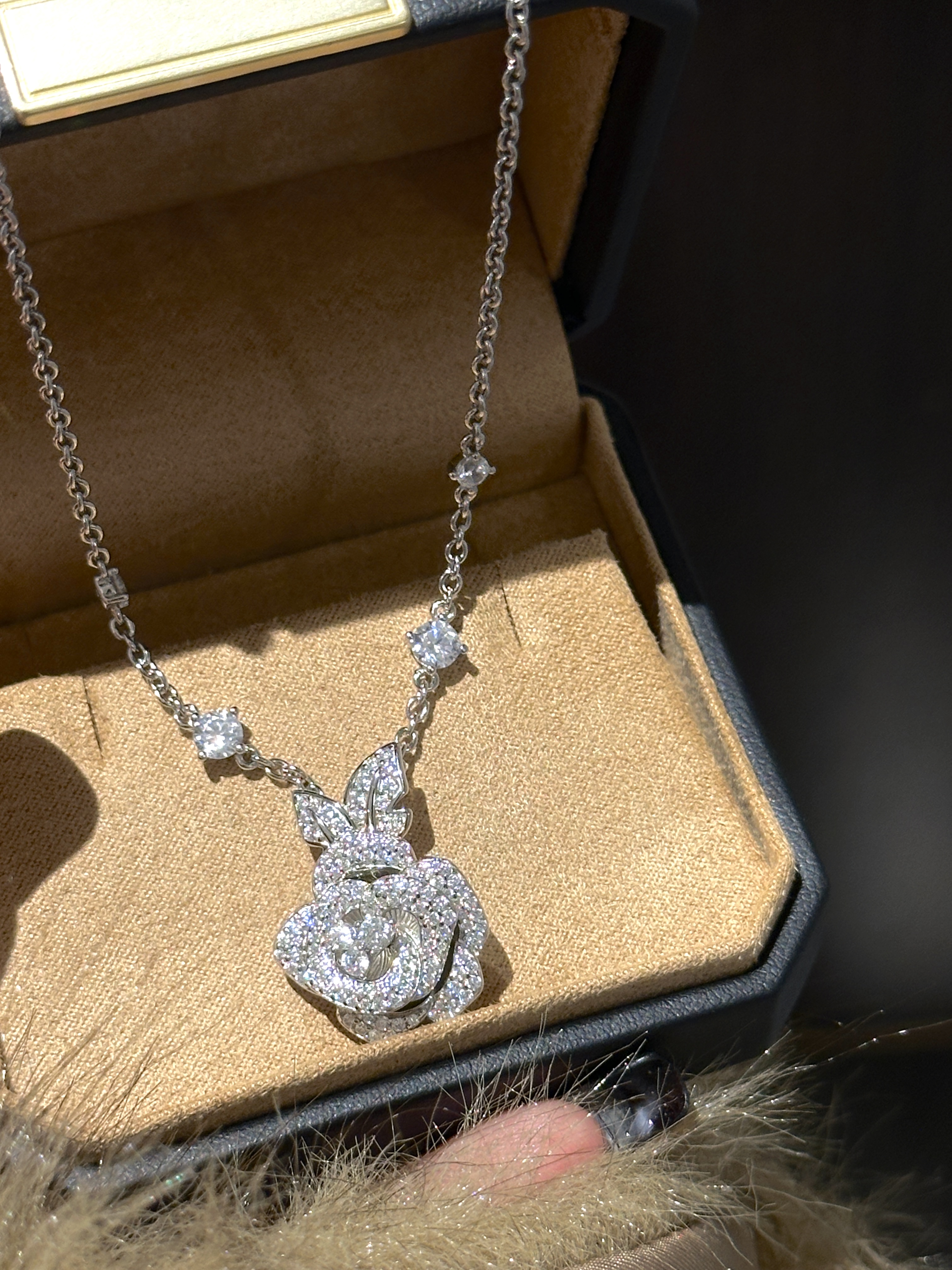 Four-Diamond Super Sparkling Rose Necklace for Women, 925 Sterling Silver Gold-Plated, Elegant Socialite Style, Niche Design, Full Diamond Collarbone Chain