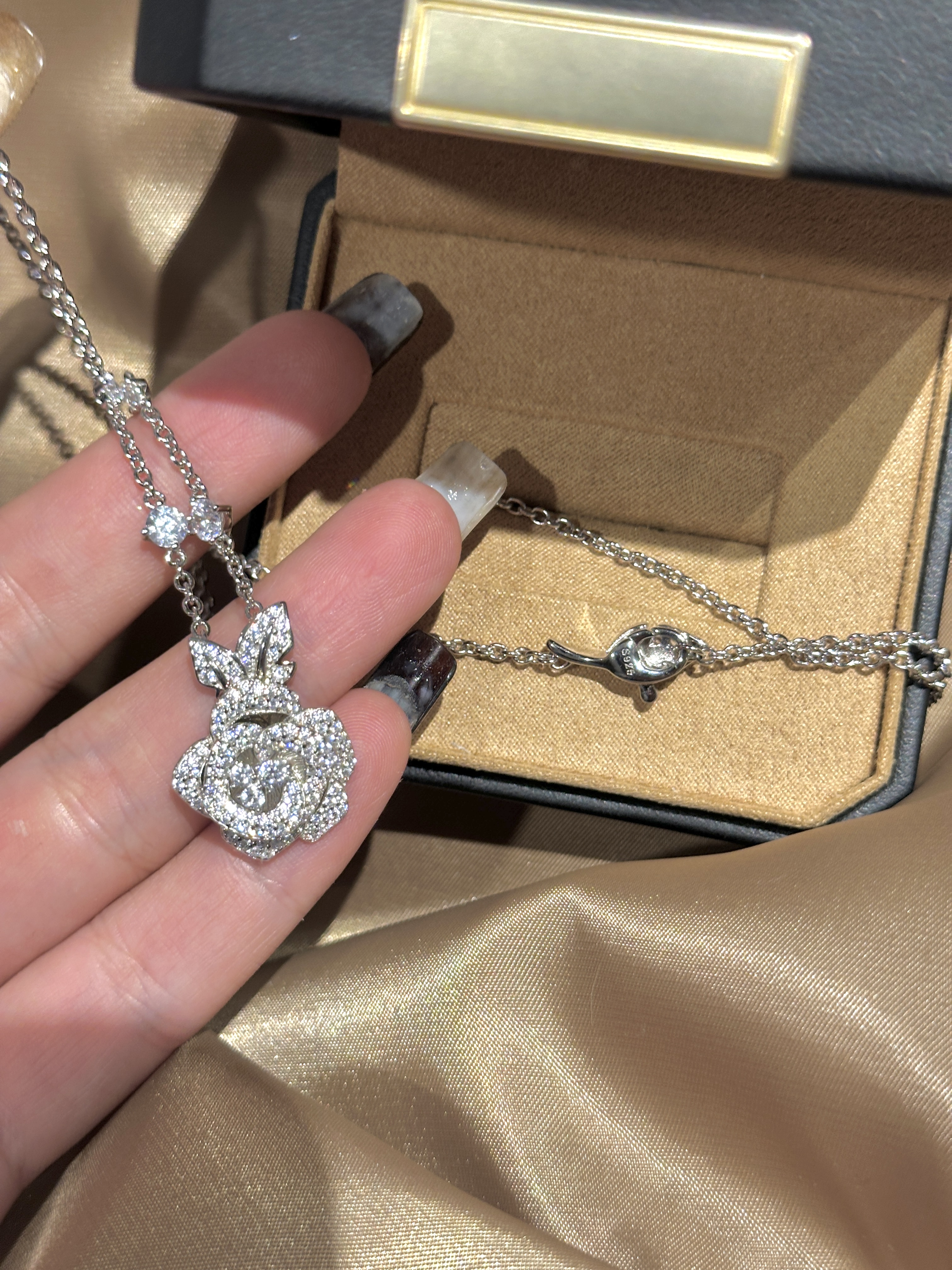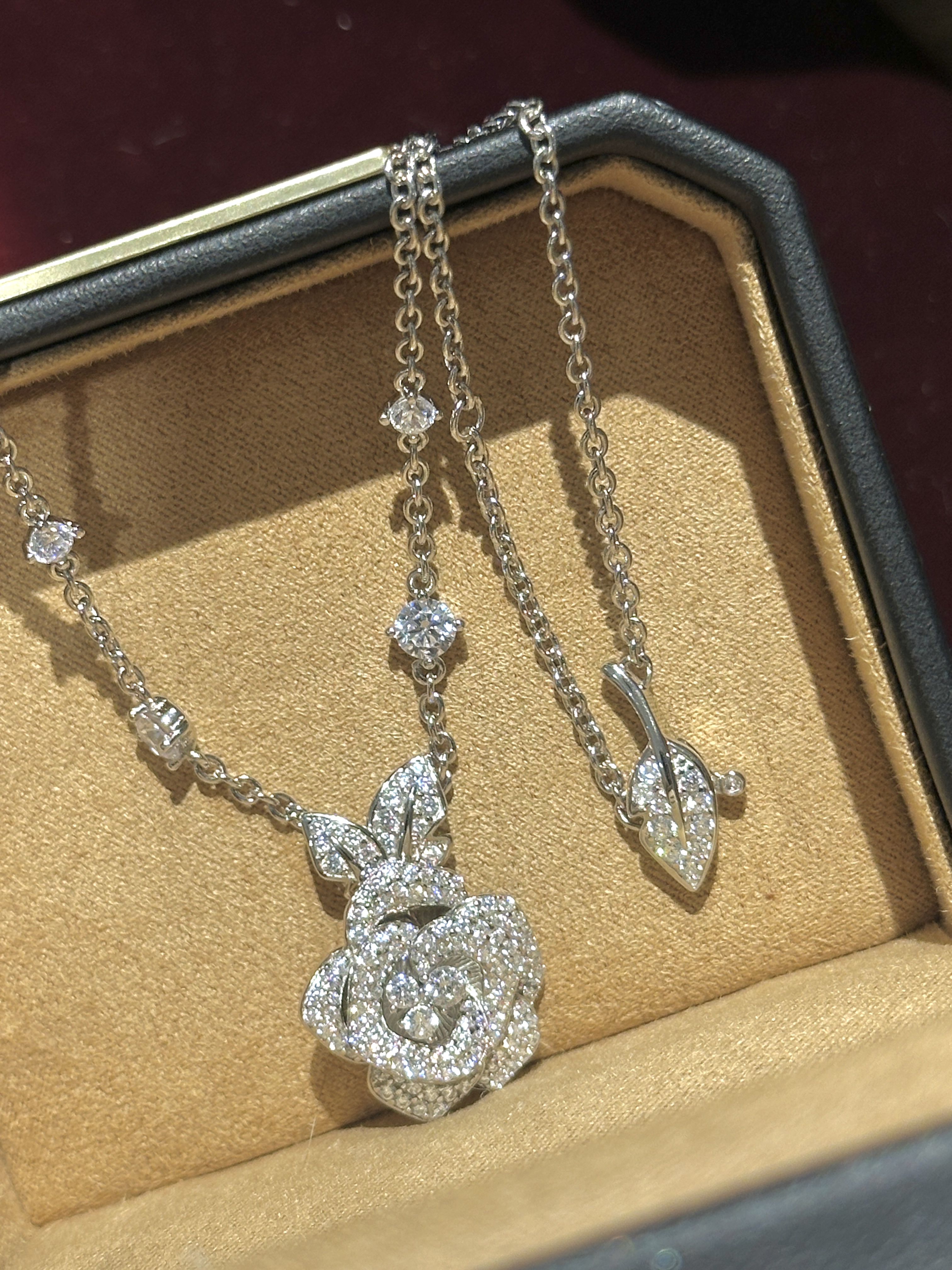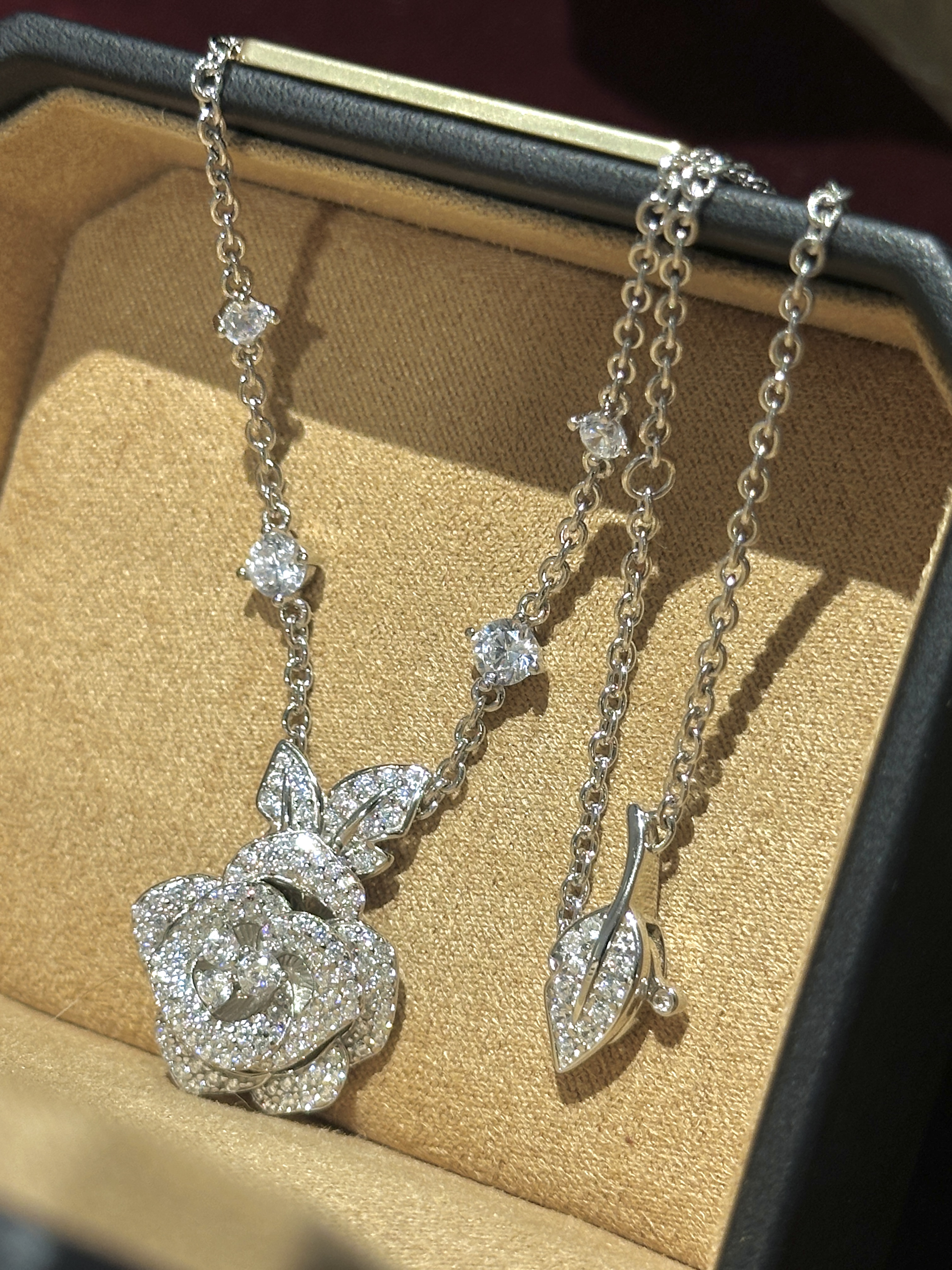 Four-Diamond Super Sparkling Rose Necklace for Women, 925 Sterling Silver Gold-Plated, Elegant Socialite Style, Niche Design, Full Diamond Collarbone Chain