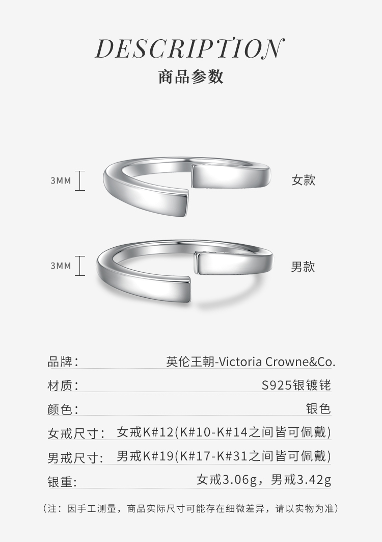 Victoria Crowne British Dynasty New Sterling Silver Möbius Ring Simple Couple Versatile Ring