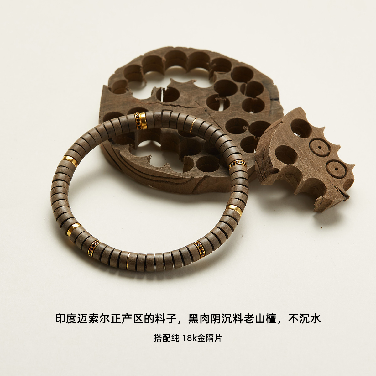 G87 Bai Jingting matuna India Mysore District Black Meat Old Sandalwood Bracelet Straight Cut 18K Gold Bracelet