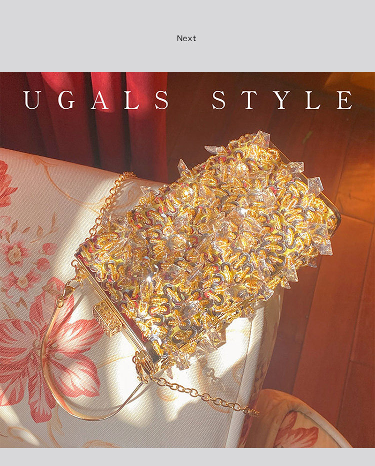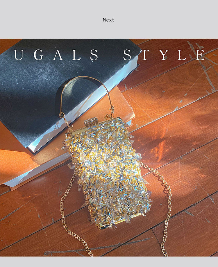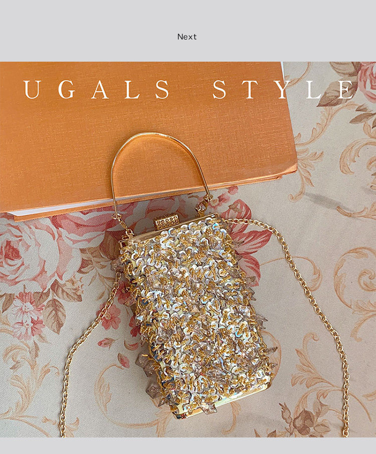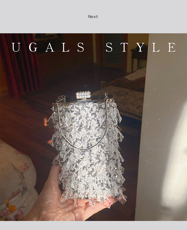 Ugals Metal Retro Crystal Tassel Handmade Pearl Chain Banquet Phone Lipstick Clutch Crossbody Small Bag