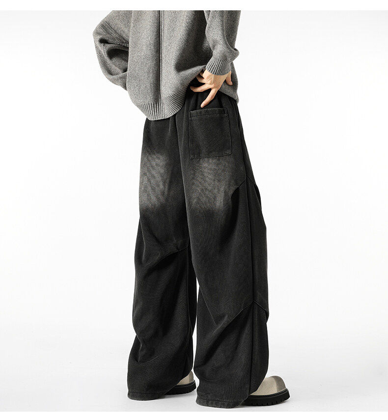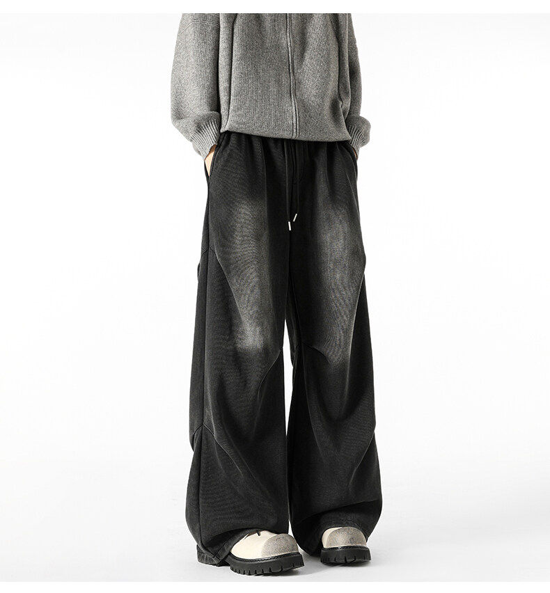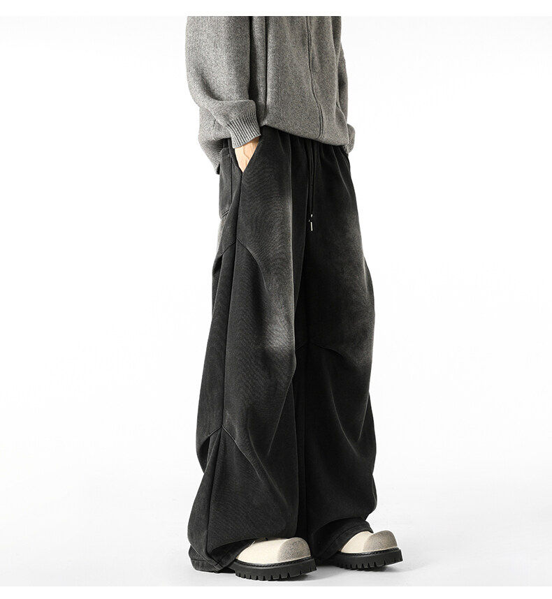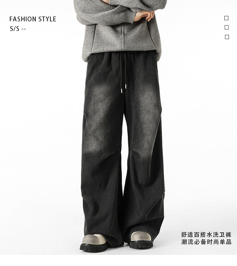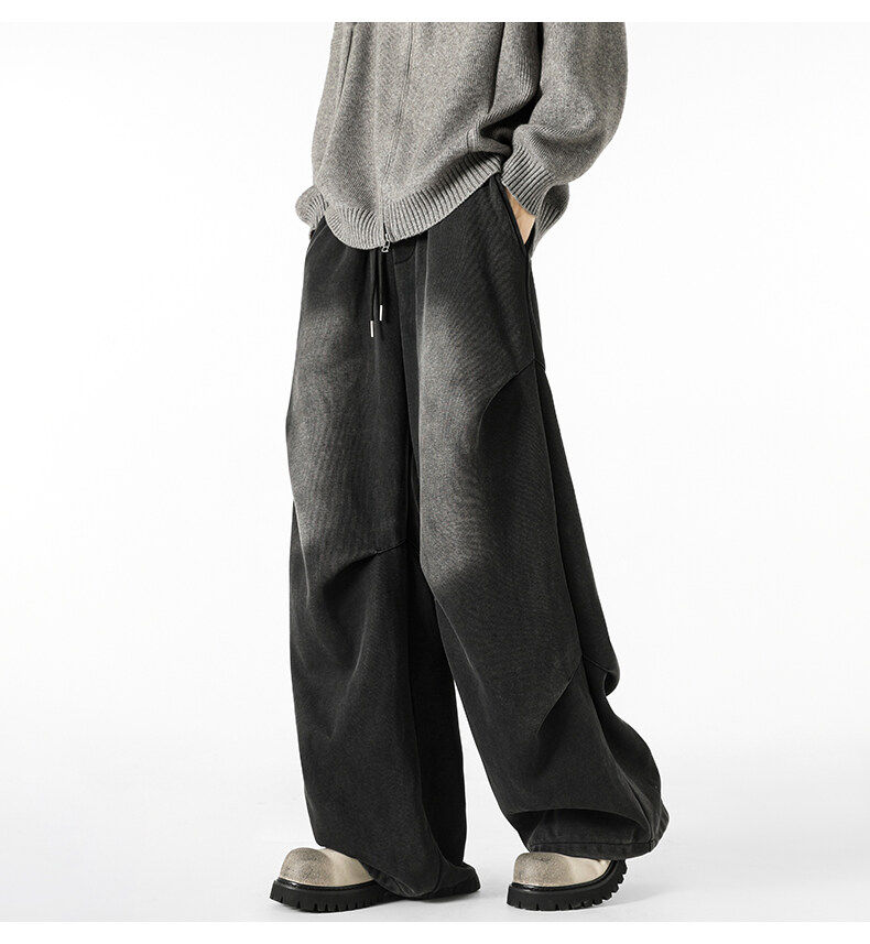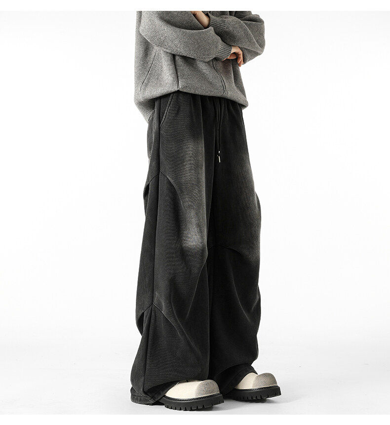 Men's Casual Pants for Autumn and Winter, Fleece-Lined, Loose-Fitting Parachute Cargo Pants, Wide-Leg Pants, American-Style Heavy-Duty Straight-Leg Sports Sweatpants
