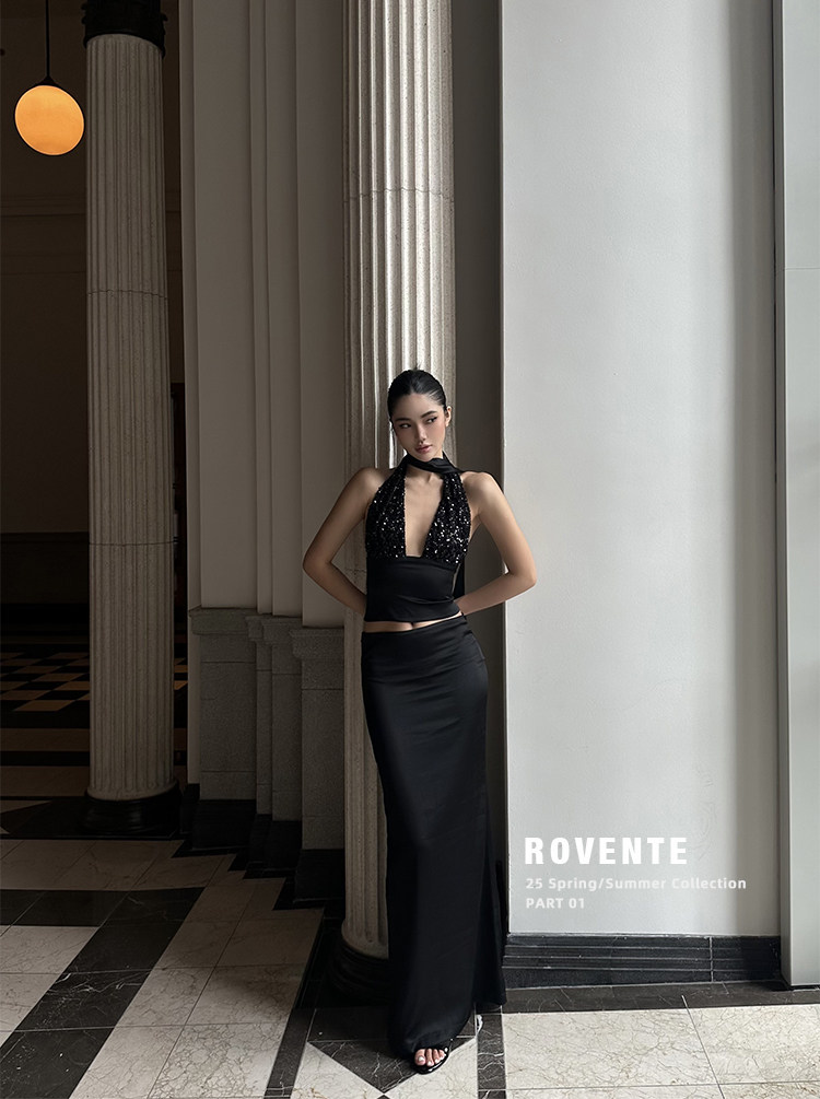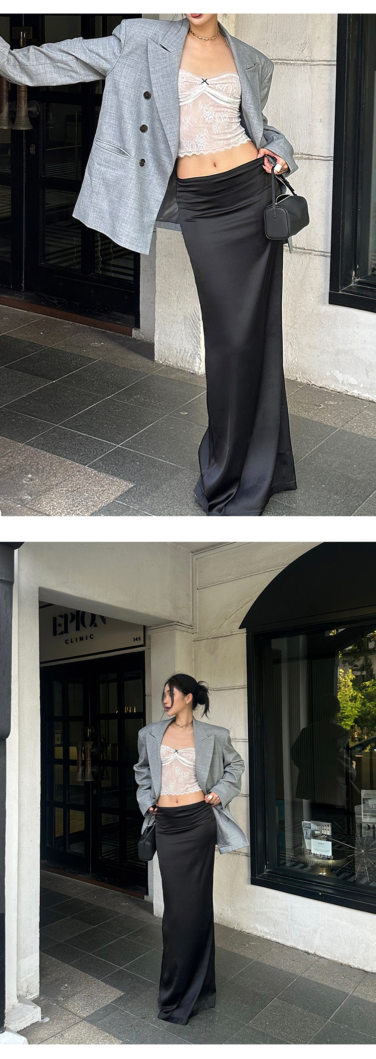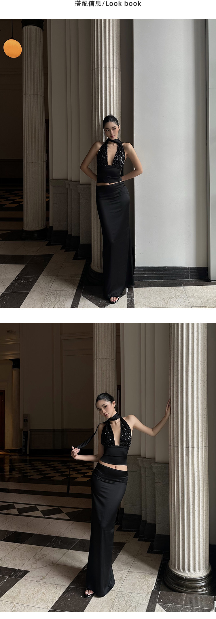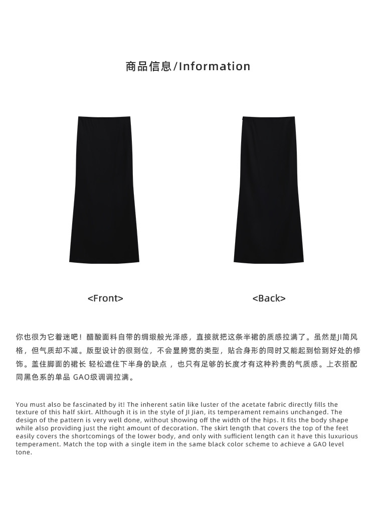 Rovente under the Night Sky High-End Black Satin Skirt Elegant Slim Low-Waist Long Bodycon Skirt
