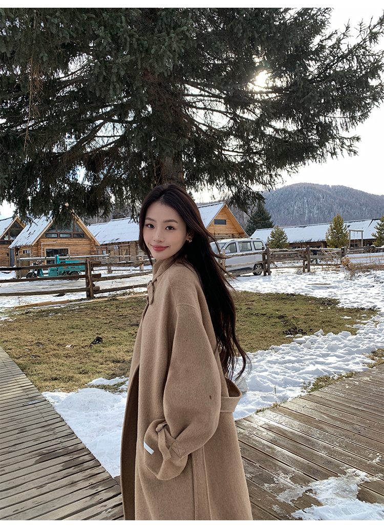 Pusumede Wind Travel Song 100% Wool Double-Sided Woolen Coat Women's Loose-Fitting Mid-Length Woolen Jacket