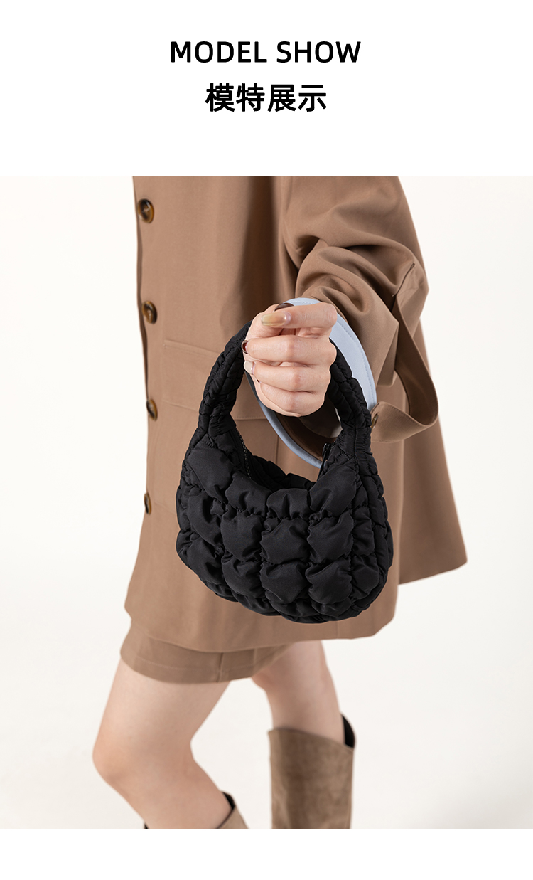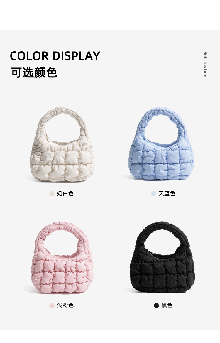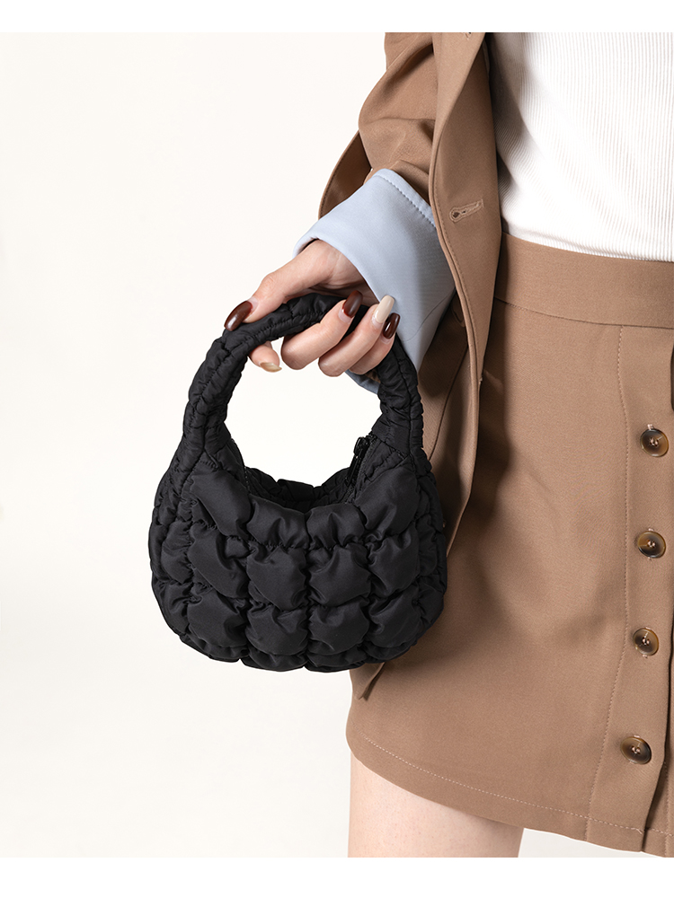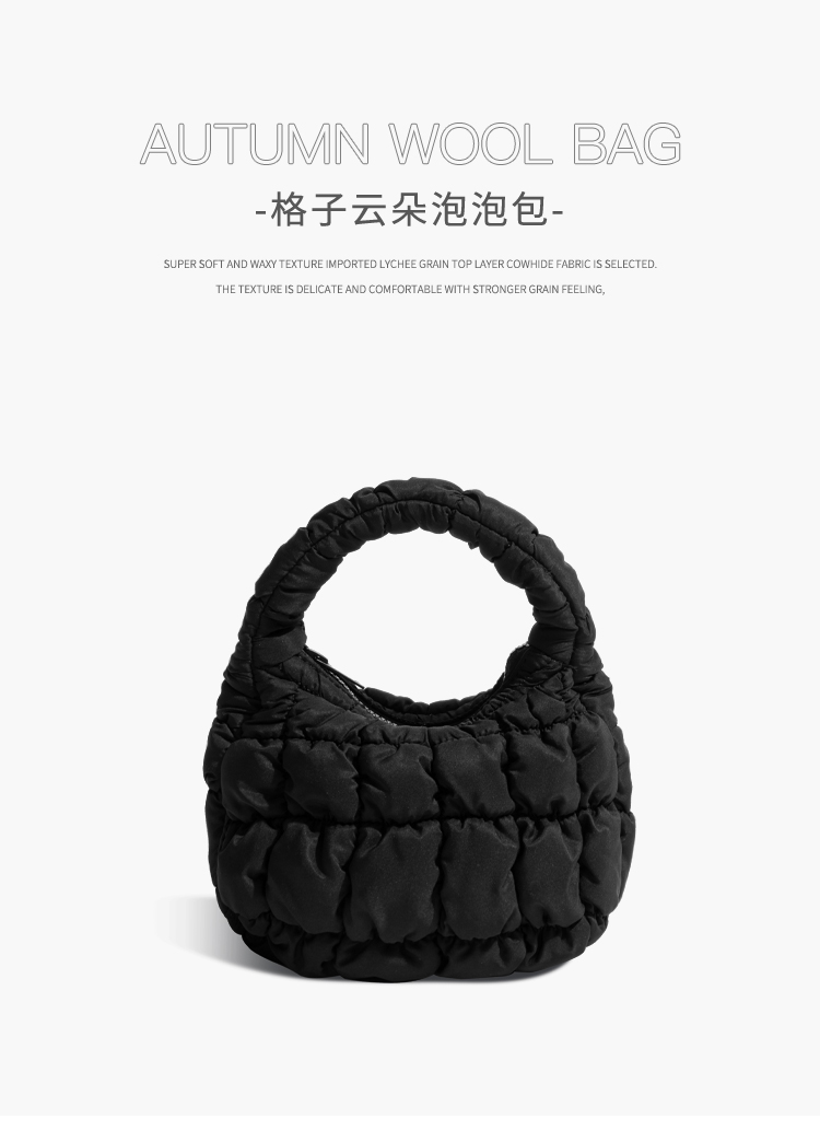 Mabula Korean-Style Simple Quilted Texture Zipper Cloud Bubble Bag Large Capacity Fingertip Handbag Underarm Bag