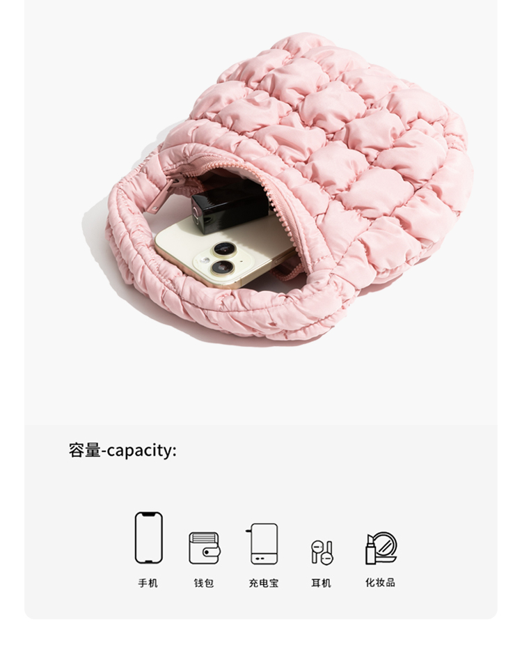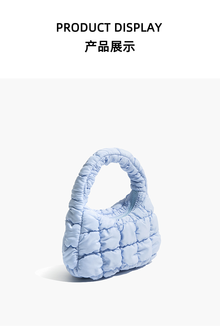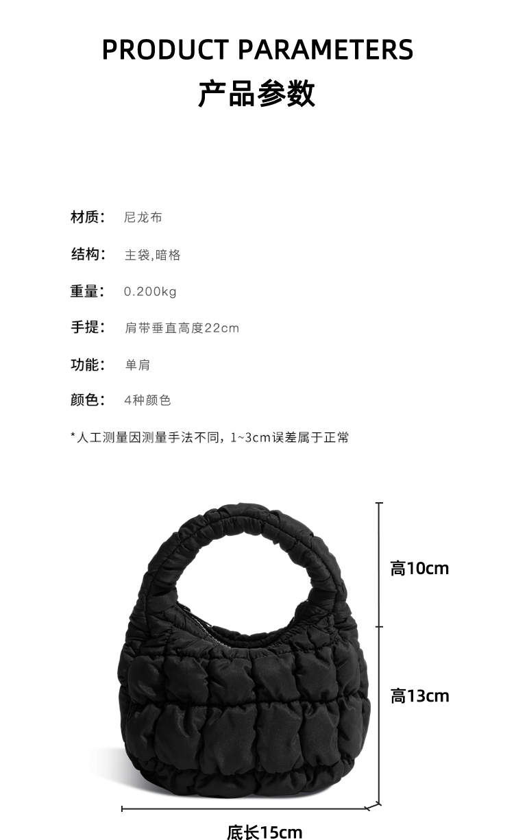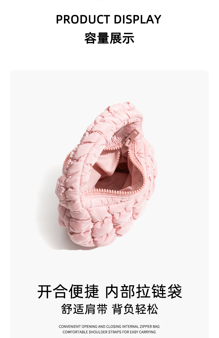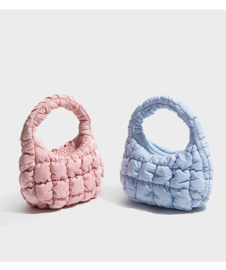 Mabula Korean-Style Simple Quilted Texture Zipper Cloud Bubble Bag Large Capacity Fingertip Handbag Underarm Bag