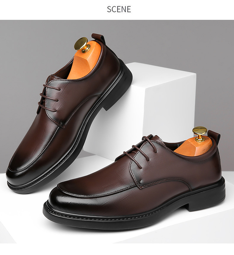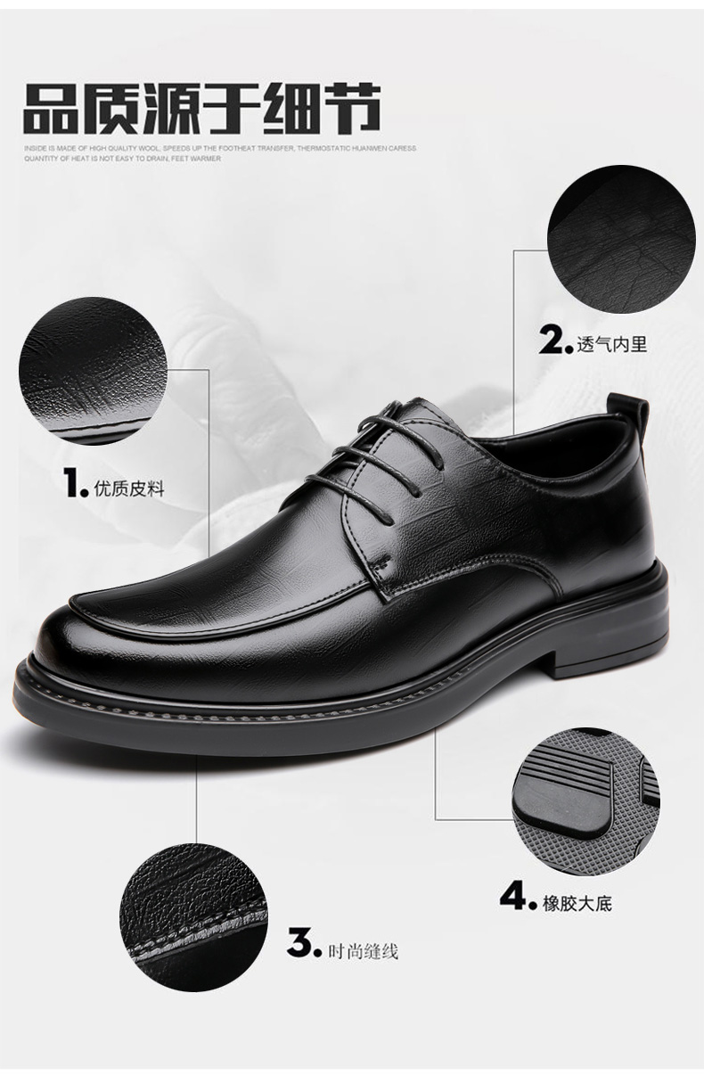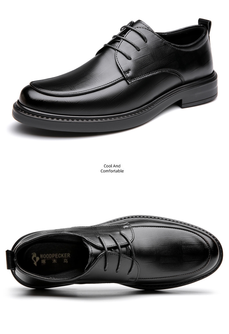 Woodpecker Leather Shoes for Men, Genuine Leather Business Formal Wear, British Style Casual Soft-Soled Leather Shoes, Winter Fleece-Lined Wedding Groom Shoes