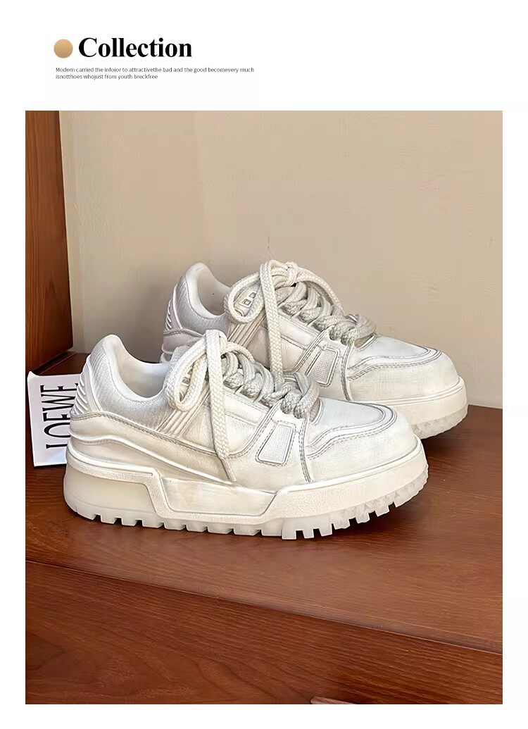 Hong Kong Style Small Platform Height-Increasing White Sneakers for Women, Versatile for Spring and Autumn, Cute and Quirky Platform Shoes, Casual Sneakers